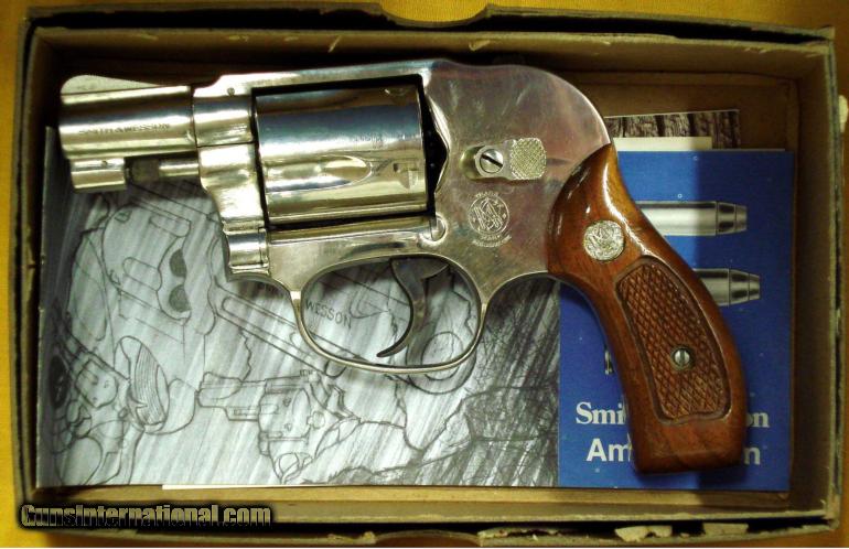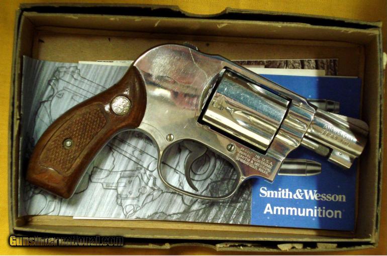 Description: S&W model 38 AIRWEIGHT (BODY GUARD) in .38 SPECIAL CAL., with 2" barrel. Color NICKEL. THIS ALL NICKEL 38 IS IN EXC. OVERALL CONDITION RETAINING 98% FACTORY ORIGINAL FINISH HOUSED IN ITS FACTORY ORIGINAL BOX WITH SOME PAPERS, Condition 98%. SOLD |