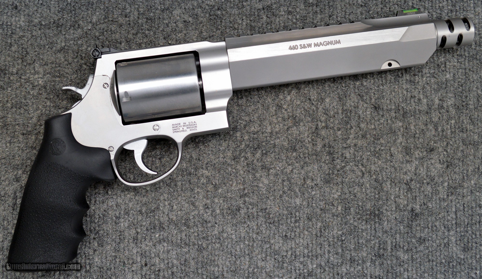 Description: For your consideration, a Smith & Wesson model 460 chambered in .460 S&W Magnum. Accordingly, .454 Casull and .45 Colt can both be chambered and safely fired as well. Features include a ported muzzle brake, full stainless construction, and an integral picatinny rail for optic mounting if so desired. .460 S&W Magnum SOLD Chambers: 5 Metal Condition: Excellent Wood Condition: Excellent Bore Condition: Excellent Barrels: 7.5 Triggers: Smooth Face Weight: 5 lbs Sights: Iron Sights Item Location: Hamburg, PA |