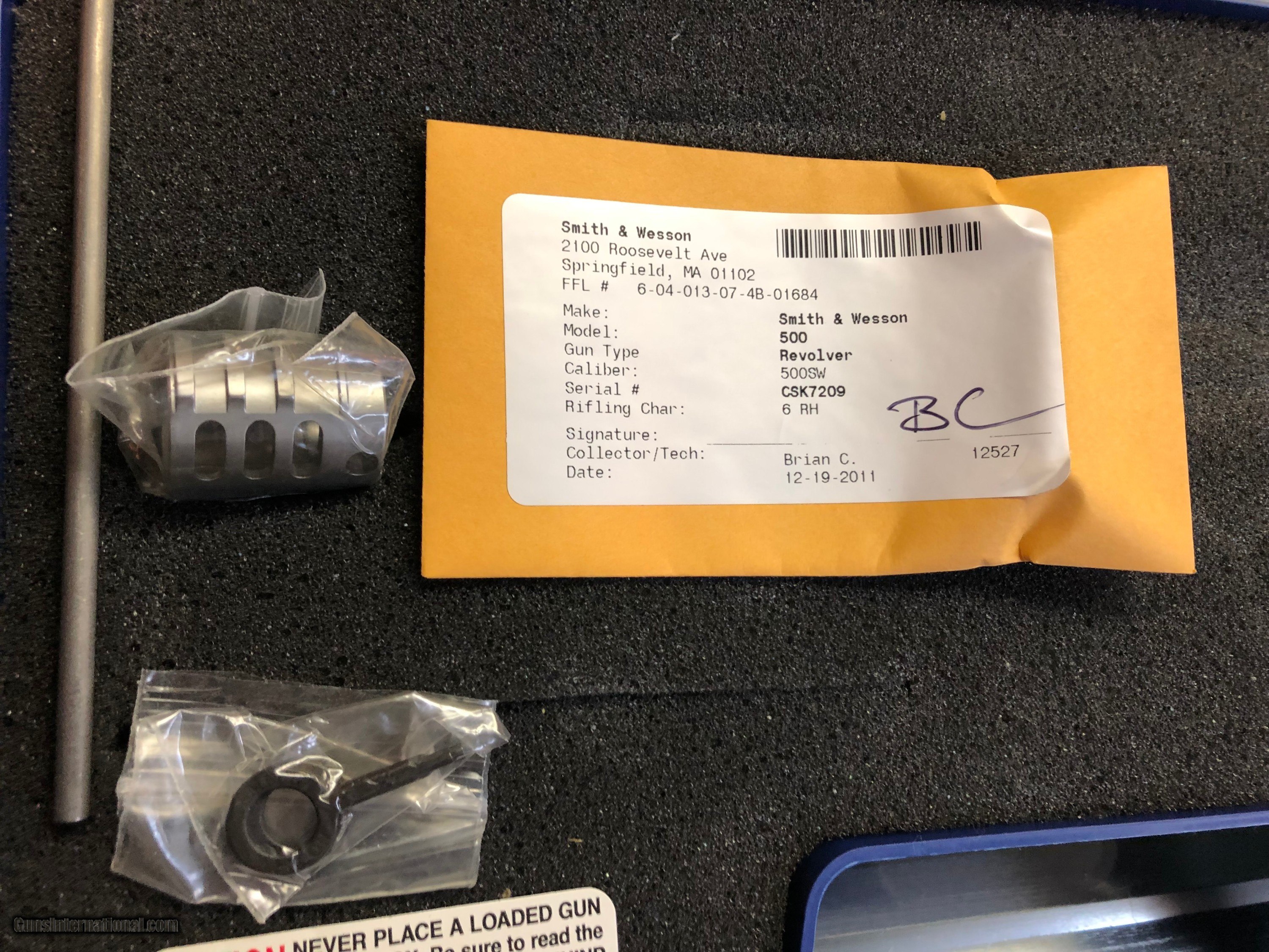 Description: S&W 500 in the factory case with the factory paperwork and accessories. 4inch barrel, S/N - CSK7209. This revolver was fired once and put down. A little too much for the owner. I have 59rds of 500SW that I will sell to the buyer at a discounted price plus shipping. S&H for the 500 will be $45 to the CON US. C/C Fee 4%. SOLD Handgun Caliber: .500 S&W Magnum Manufacturer: S&W Model: 500 Serial Number: CSK7209 Barrel Length: 4 Condition: Excellent |