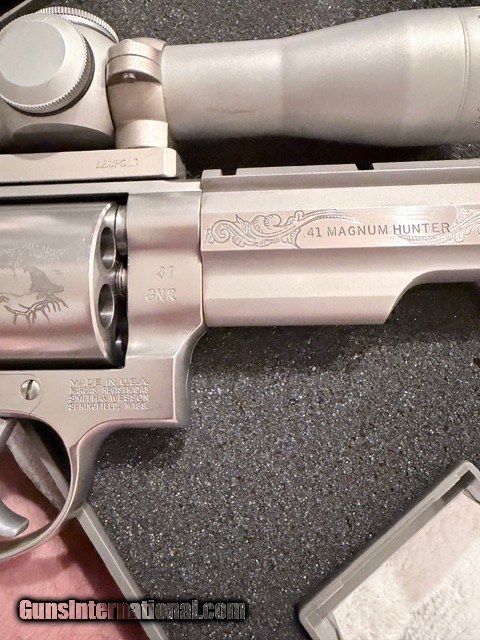 Description: Beautiful S&W 657-3 41 Magnum Hunter Performance Center Revolver worked on By Gary Reeder with a Leupold M8 scope. Pre lock PC revolver in PC box that's not original to the gun, gun is beautifully engraved with a bear, moose, wolf and some scroll, action is smooth, mechanics perfect. Gun has a Leupold M8 4x scope with a Leupold mount, factory ported. This is 1 of 500. $30 shipping FFL to FFL Zelle, Cashiers, USPS MO, Credit/Debit add 3% Handgun Caliber: .41 Remington Magnum Price: $2,495.00 Shipping: $30.00 Buy Now Contact Seller |