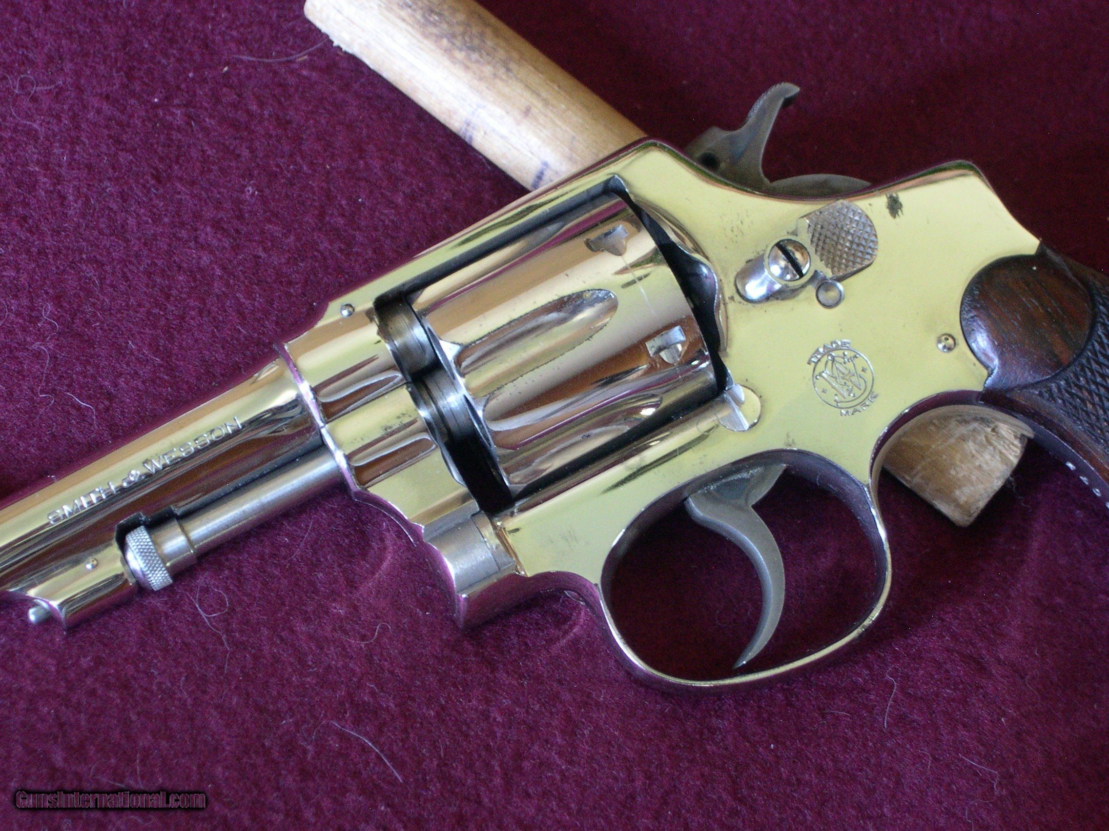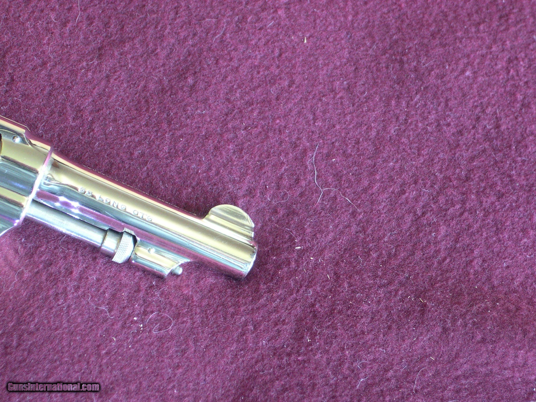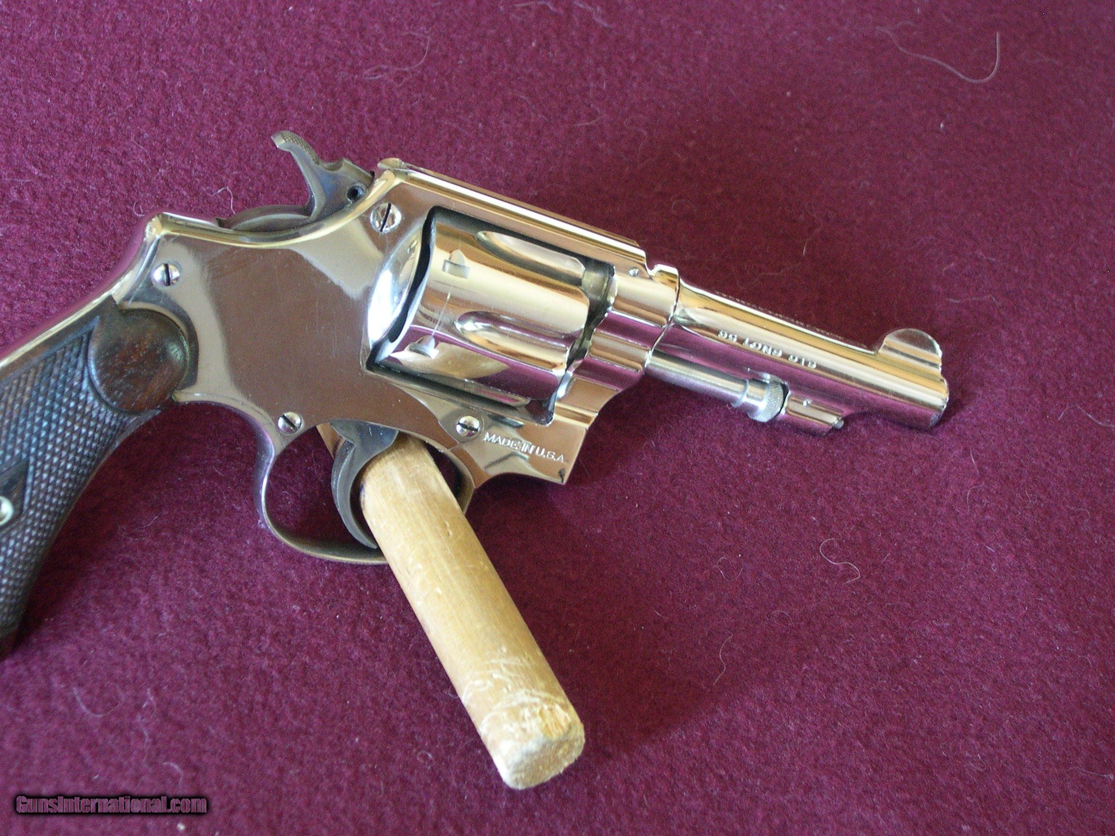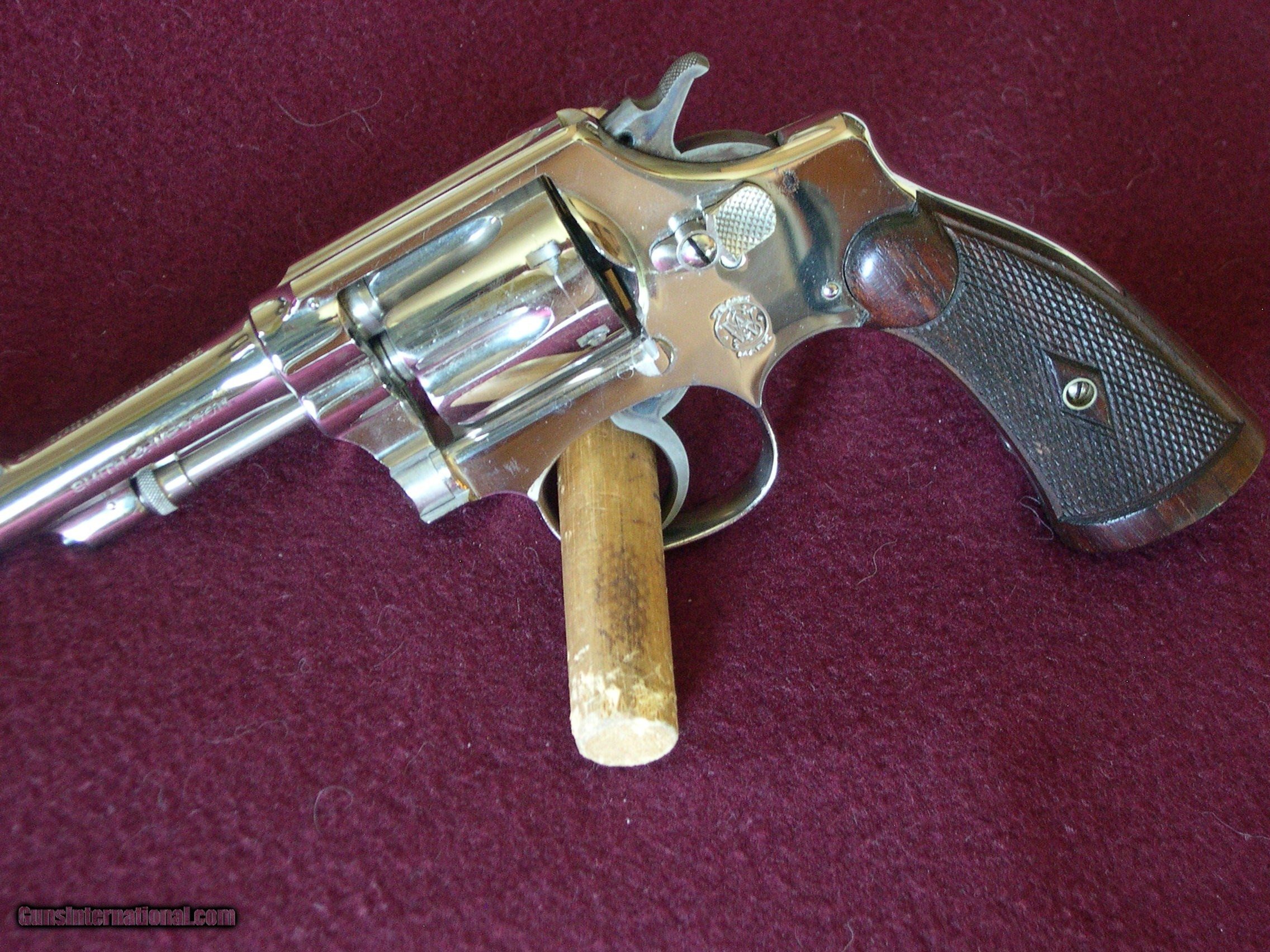 Description: This 2nd model was made in 1905, not an antique, and it is like new, and looks unfired, mint nickel finish, one pin prick mark on left side of frame ,rear of cylinder latch !! Grips are unnumbered and mint, this gun shows no sign of ever being fired !! If there is a better 32 2nd model out there I have never seen it! Case color on hammer & trigger is 100%, wish I had the orig box!! This gun is 100% original, not renickled, Guaranteed !! SOLD |