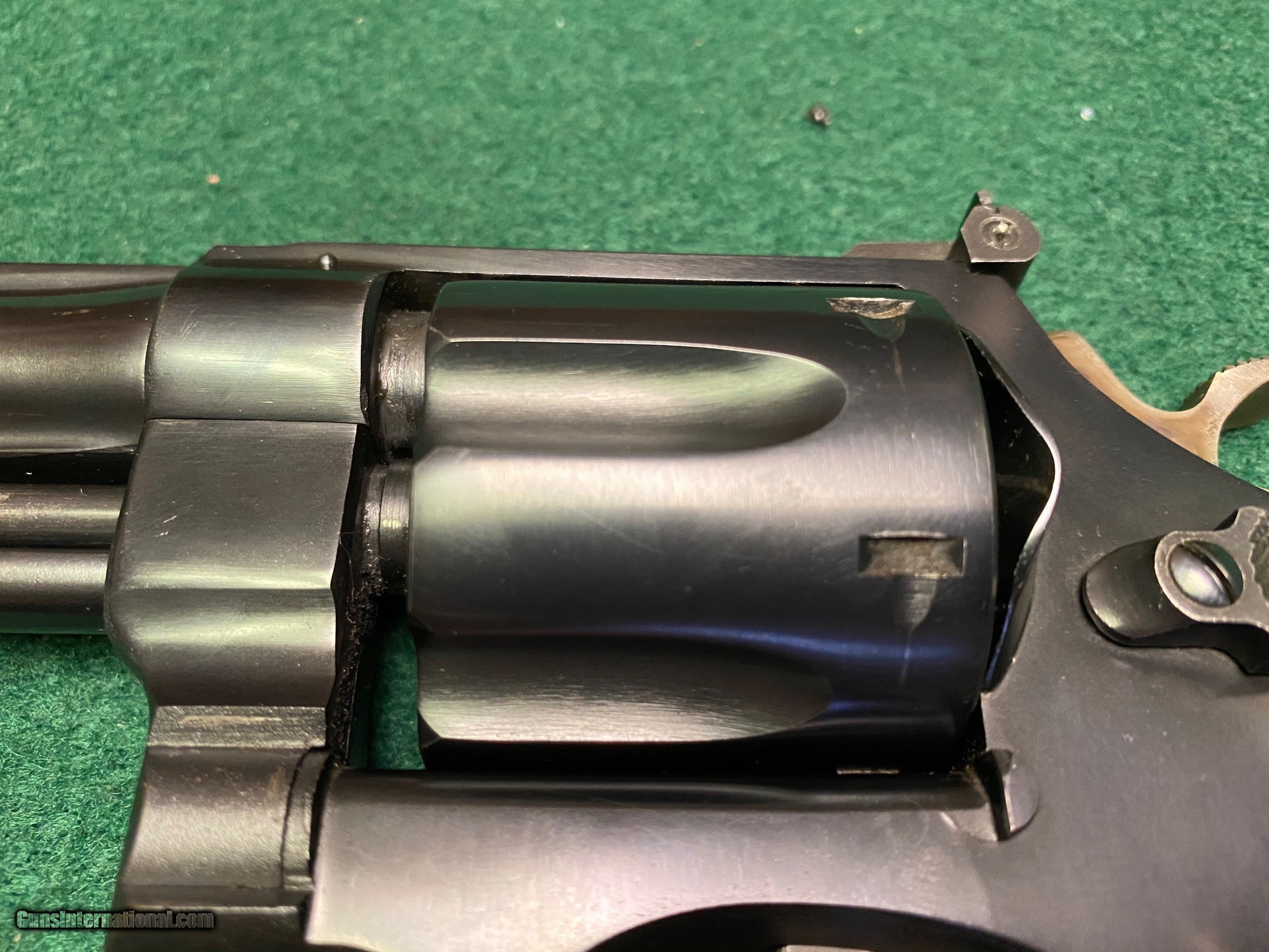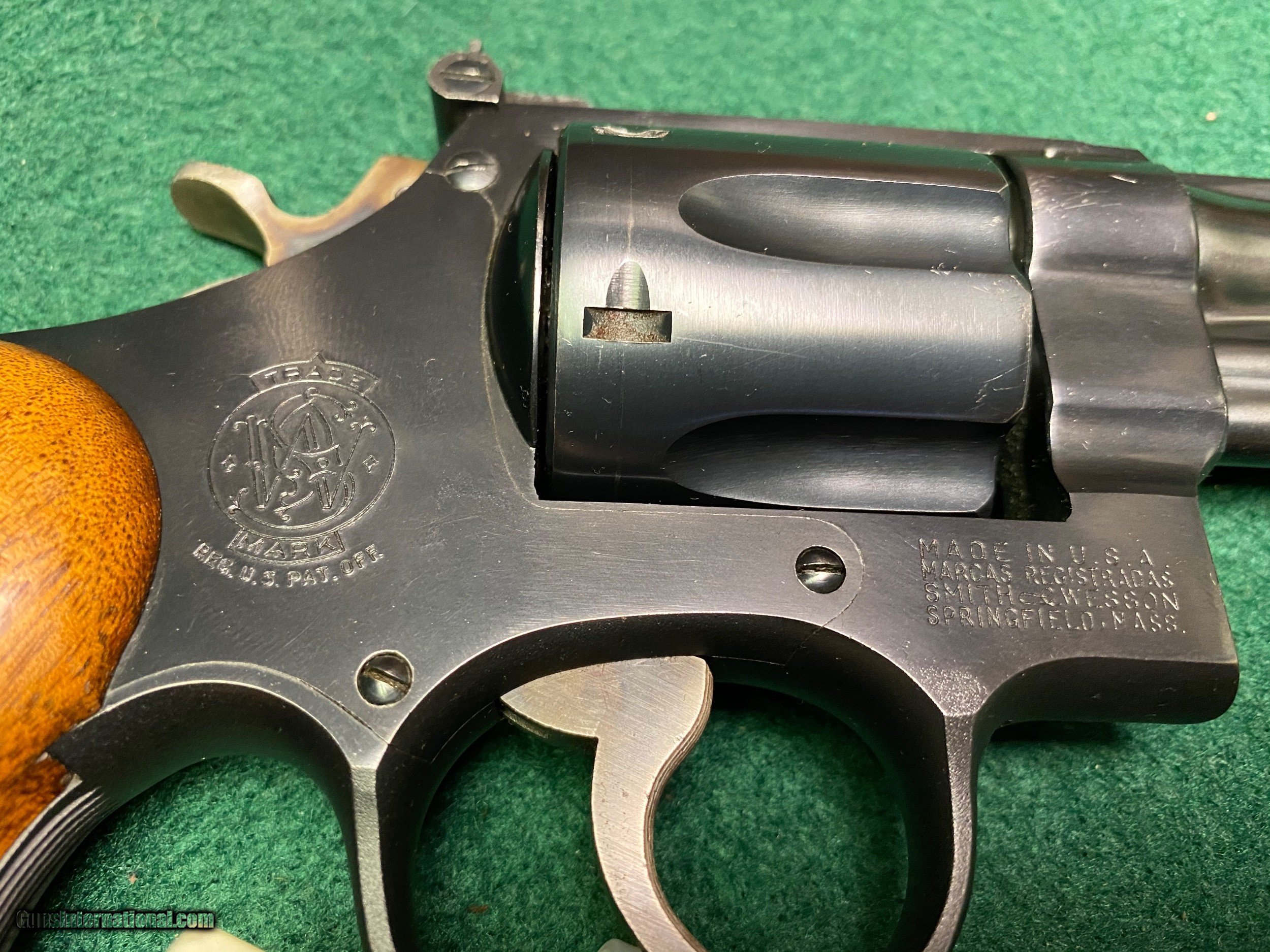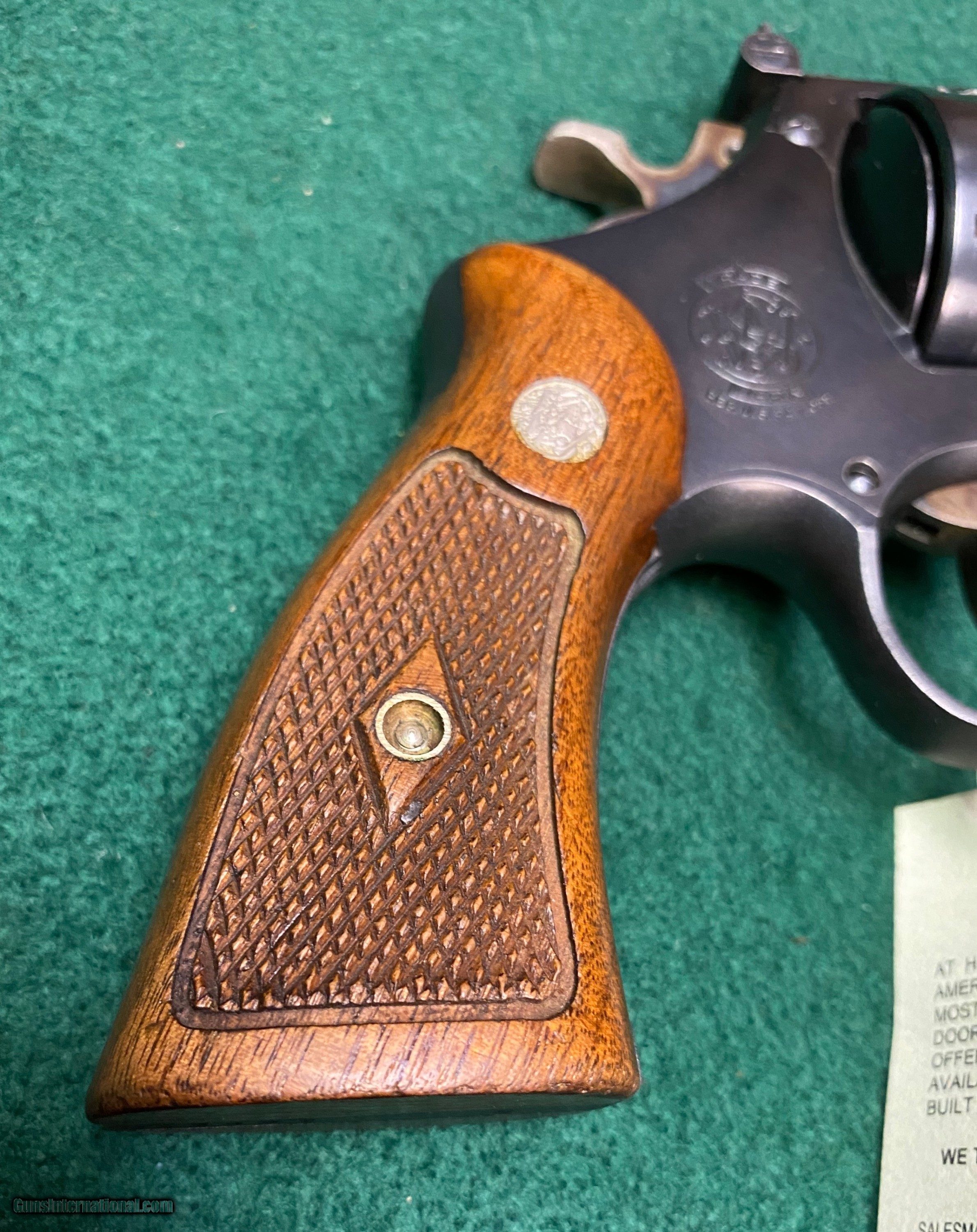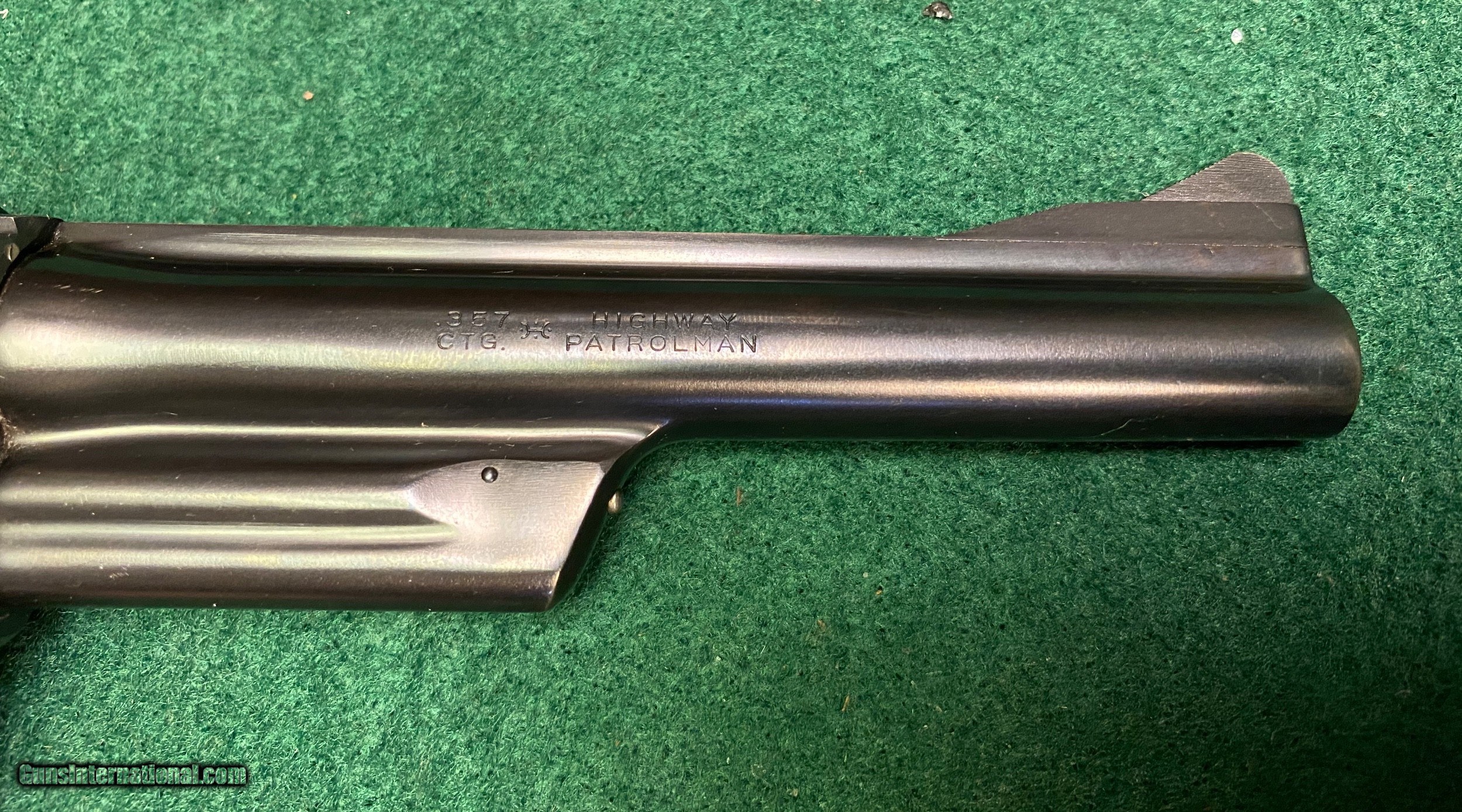 Description: Here is a very nice Smith and Wesson .357 Highway Patrolman pre-model 28 that we have on consignment. Very good to excellent condition with a 6 inch barrel. Barrel is pinned, cylinder has recessed chambers, diamond wood grips. This is the "old school" quality Smith and Wesson used to be known for. We reserve the right to sell this item at our retail location until an offer is placed on Guns International. We accept major credit cards with a 4% surcharge. We will also accept personal checks, however we will not ship the item until your check clears our bank. This may cause a slight delay in shipment. Please allow us up to three business days to return emails, lately we've been exceedingly busy in the shop. Walk in customers are urged to arrive prior to 11 AM if you wish to pick the gun up the same day. The wait time for a background check increases every hour after 12 noon. We have had wait times as long as one hour for a background check to clear in the afternoon. We are open Tuesday through Saturday, 9 AM to 5 PM. Closed Sunday and Monday. We thank you for your continuing support and patronage during these troubled and trying times! SOLD Curio/Relic: Yes Handgun Caliber: .357 Magnum Manufacturer: Smith & Wesson Model: Pre Model 28 Serial Number: 1302xx Barrel Length: 6” Condition: VG/EXC |