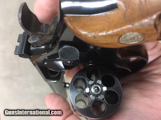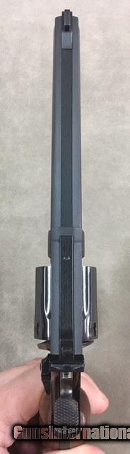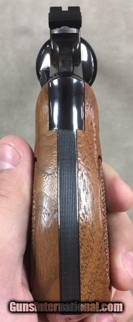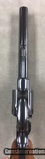 Description: REDUCED - This revolver came from a customer who originally purchased two revolvers, just alike. He fired one extensively and the other he put up in this gun safe, unfired. This is the unfired revolver. It has a target hammer and a target trigger, and is factory special ordered as a SINGLE ACTION ONLY model 14. These are not common and this one is as new in the original box with all the manuals, warranty card, factory tools, etc. Note the label on the box says SA for single action. Impossible to improve upon. SOLD |