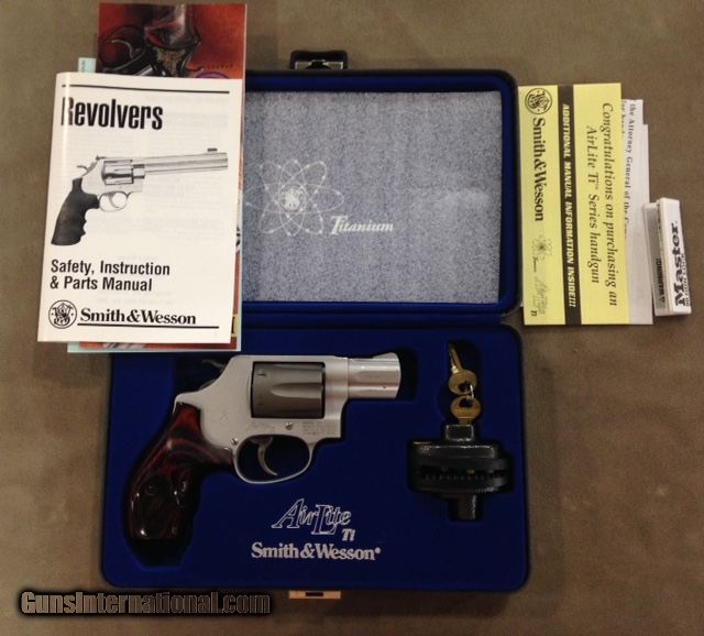 Description: My own personal S&W Model 331 TI no longer manufactured. I bought this gun in 1999 and it has sat in a holster in my nightstand ever since. Revolver is unfired. Does have some minor marks on the Aluminum Titanium frame and barrel jacket - otherwise just like new. Includes original box, presentation case, and all paperwork including warranty card, etc. as shown. Even have the outer box. A very hard to find little revolver. Made without the internal key safety, etc. I have no idea how many were made but it could not have been many. SOLD |