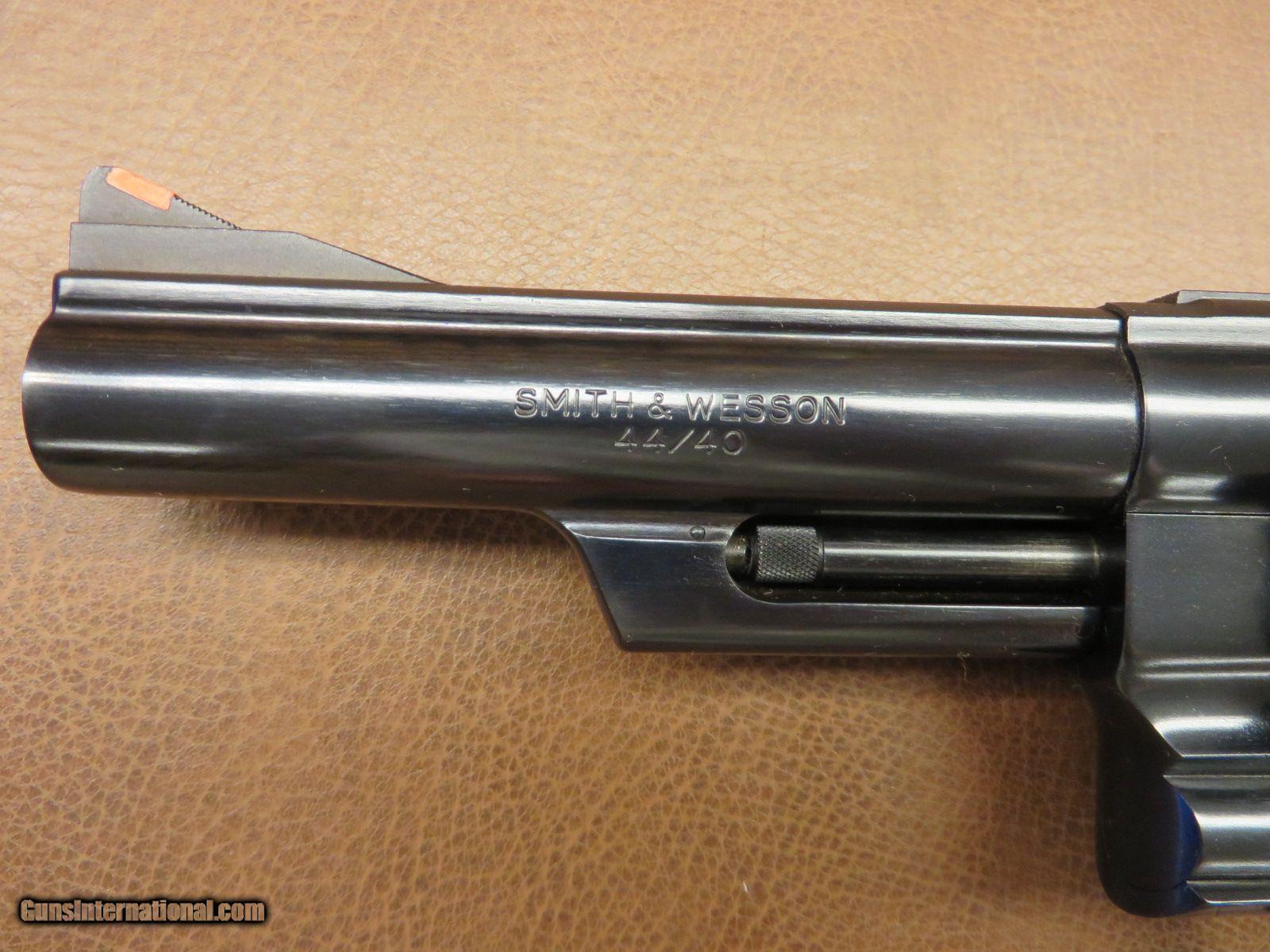 Description: 44-40 caliber has 5 inch barrel with red ramp front sight and white outline adjustable rear sight. Target hammer and target trigger. Hogue checkered walnut target grips. Serial number TWT0xxx. 99% condition in box with papers and cleaning kit. No presentation case and no end label on the box. SOLD |