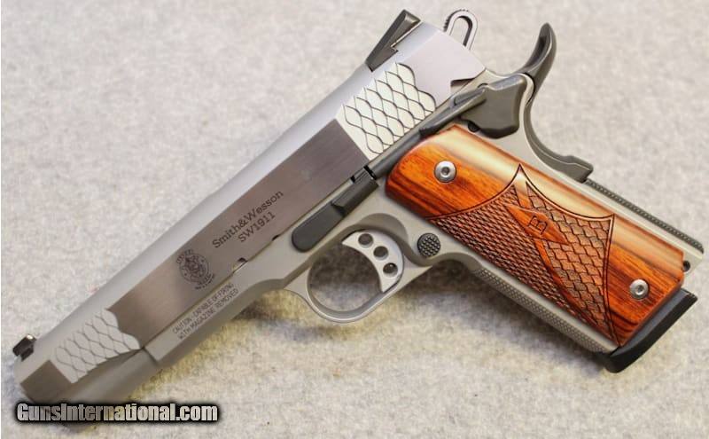 Description: This Smith & Wesson SW1911 chambered in .45 Auto is in great shape. The finish has little to no wear with a bright bore, and the wood grips have no cracks. .45 Auto Metal Condition: Great Wood Condition: Great Bore Condition: Bright Barrels: 5 Weight: 2.2 lbs. Item Location: Hoffman Estates, IL Price: $999.99 Contact Seller |