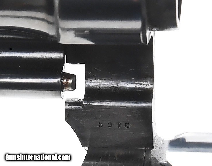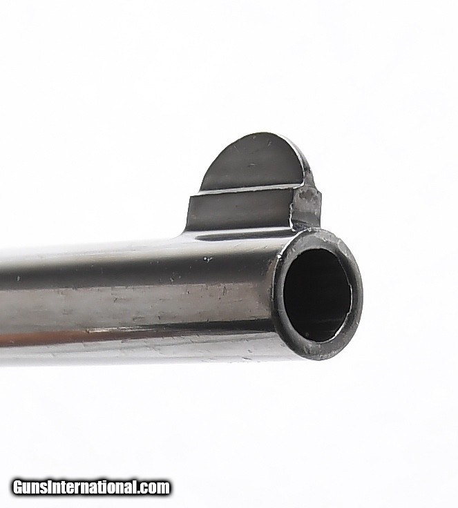 Description: Really spectacular S&W Triple Lock a/k/a .44 Hand Ejector First Model. This Triple Lock was shipped to the Hercules Powder Company on November 3rd, 1915, Wilmington, Delaware, and it remains almost as nice as the day it was delivered! Although it has just a touch of muzzle and cylinder edge wear, it certainly did not spend much time holstered or if it did, it wasn’t drawn from the holster very often. Being 105 years old I will call this revolver Very Fine to Excellent and grade the bluing at 97-98% and the grips at 97% because of a few light “dings” on the bottom. Case colors on the hammer and trigger are 99%. Bore is perfect, cylinder perfect, and mechanically perfect. This is a historically important revolver with its connection to Hercules Powders and in great condition. With factory letter. SN: 10586 SOLD |