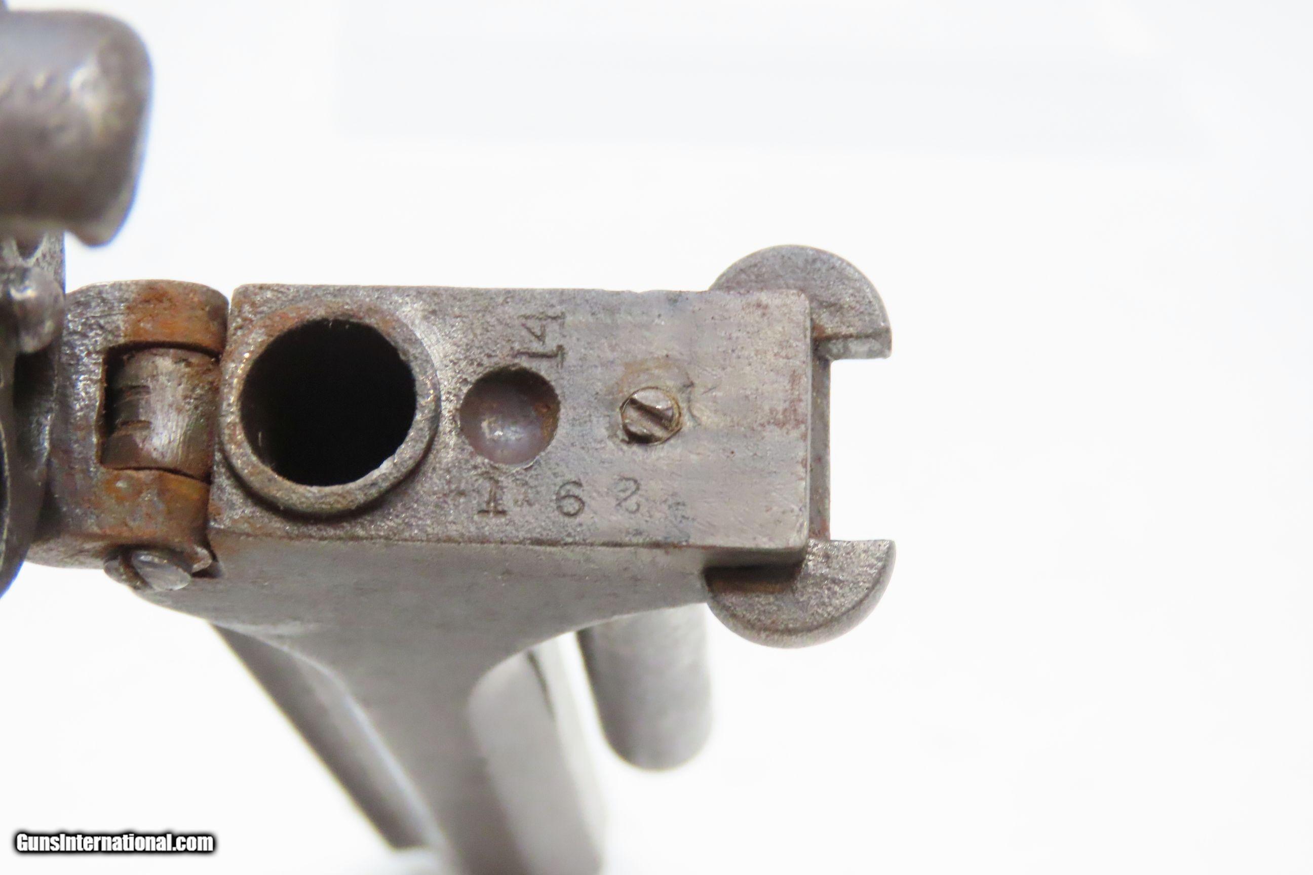 Description: Scarce “WILD WEST” Antique SMITH & WESSON No. 1 ½ .32 RF Revolver FRONTIER One of only 26,300 1st Issue Spur Trigger Revolvers Here we present an antique Smith & Wesson Model Number 1-1/2 .32 Caliber Rimfire Revolver, made circa 1865-68 in Springfield, Massachusetts. The S&W Model No. 1-1/2 Revolver is simply a scaled-up version of the No. 1, down to the aesthetics. The .32 caliber continued to evolve just as the .22 caliber version, both in features and aesthetics. It was also a commercial success and was well-received by the buying public, seeing 26,300 of the First Issue produced and over 100,000 of the updated Second Issue. The overall condition is good. The action functions, although the trigger return spring is weak. Good bore. Both grips are very good and contain average handling wear. Leible markings. Some wiggle is present around the hinge. This example has maintained a dark brown patina. Here is a Smith & Wesson revolver from the glory days of the Old West! Own the original! This is a legitimate antique and not a reproduction. Barrel is 3-1/2 inches. Caliber: .32 Rimfire Overall condition as seen in photos. Very Fast. Very Safe. FREE SHIPPING WORLDWIDE. Delivered directly to your door by express mail! Guaranteed AUTHENTIC & Includes CERTIFICATE OF AUTHENTICITY. ancestryguns $1200 #231004 SOLD Antique: Yes |