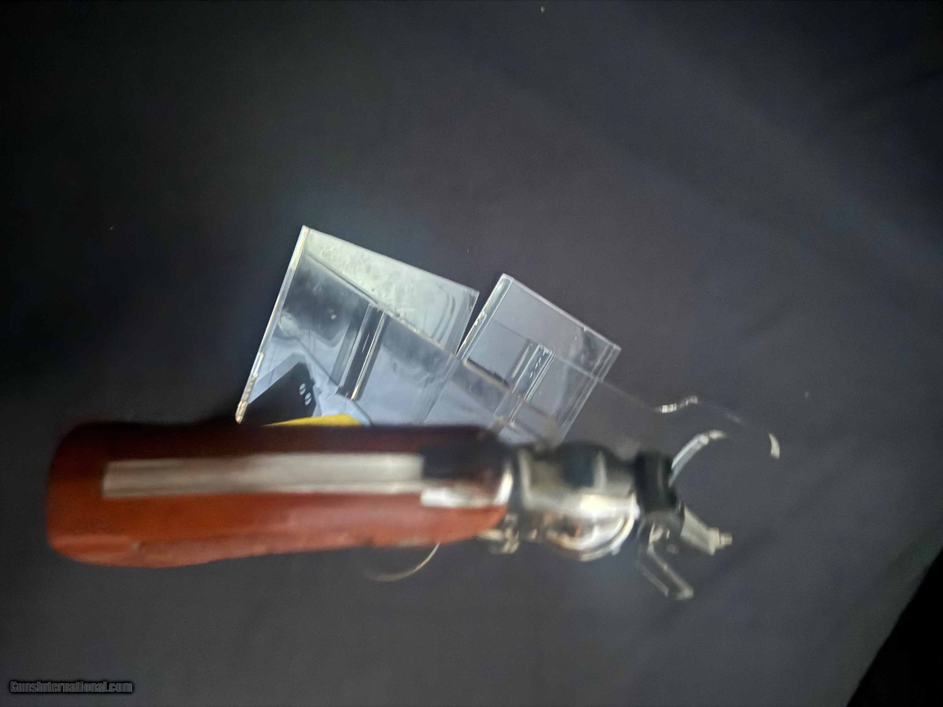 Description: Smith & Wesson 19–4, 357 Magnum, polished stainless steel, like new, 7.5 inch barrel. SOLD Handgun Caliber: .357 Magnum Manufacturer: Smith And Wesson Model: 19–4 Barrel Length: 7.5 Condition: Excellent Metal Condition: Excellent excellent Wood Condition: Excellent Bore Condition: Shiny with good rifling |