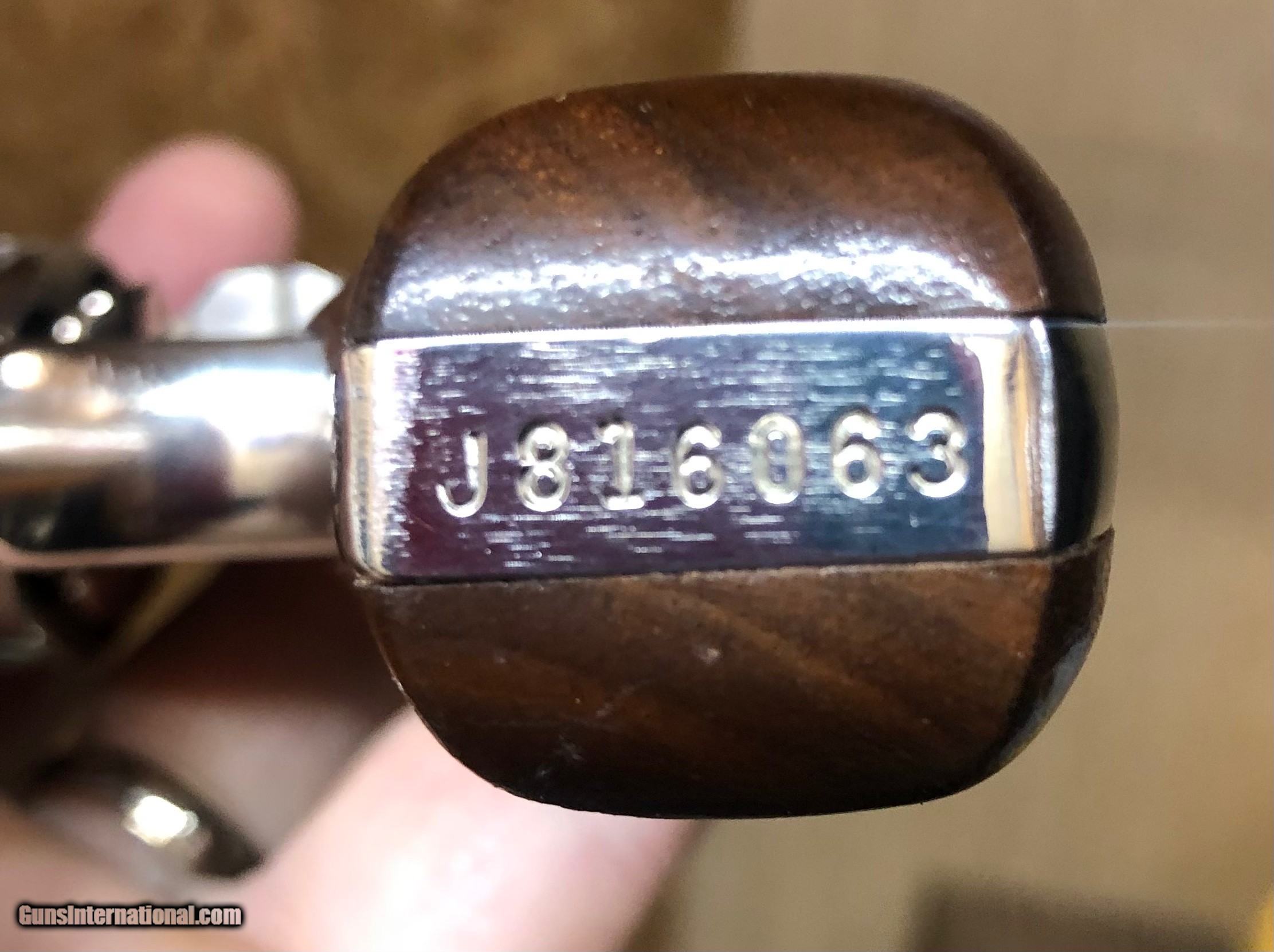 Description: An absolutely gorgeous "bodyguard" 49! Nickel finish, fixed sights, wood grips, and 1 7/8ths pinned barrel. All steel frame, very rare in nickel. Non matching box with some paper. Doesn't look to have been fired. Please email with questions. Shipping included (west coast add $75). Cards add 3%. SOLD Manufacturer: Smith and Wesson Model: 49 Barrel Length: 1 7/8ths Condition: Mint Metal Condition: Excellent Wood Condition: Excellent Bore Condition: Excellent Action: Da only Finish: Nickel Sights: Fixed Item Location: 37075 |