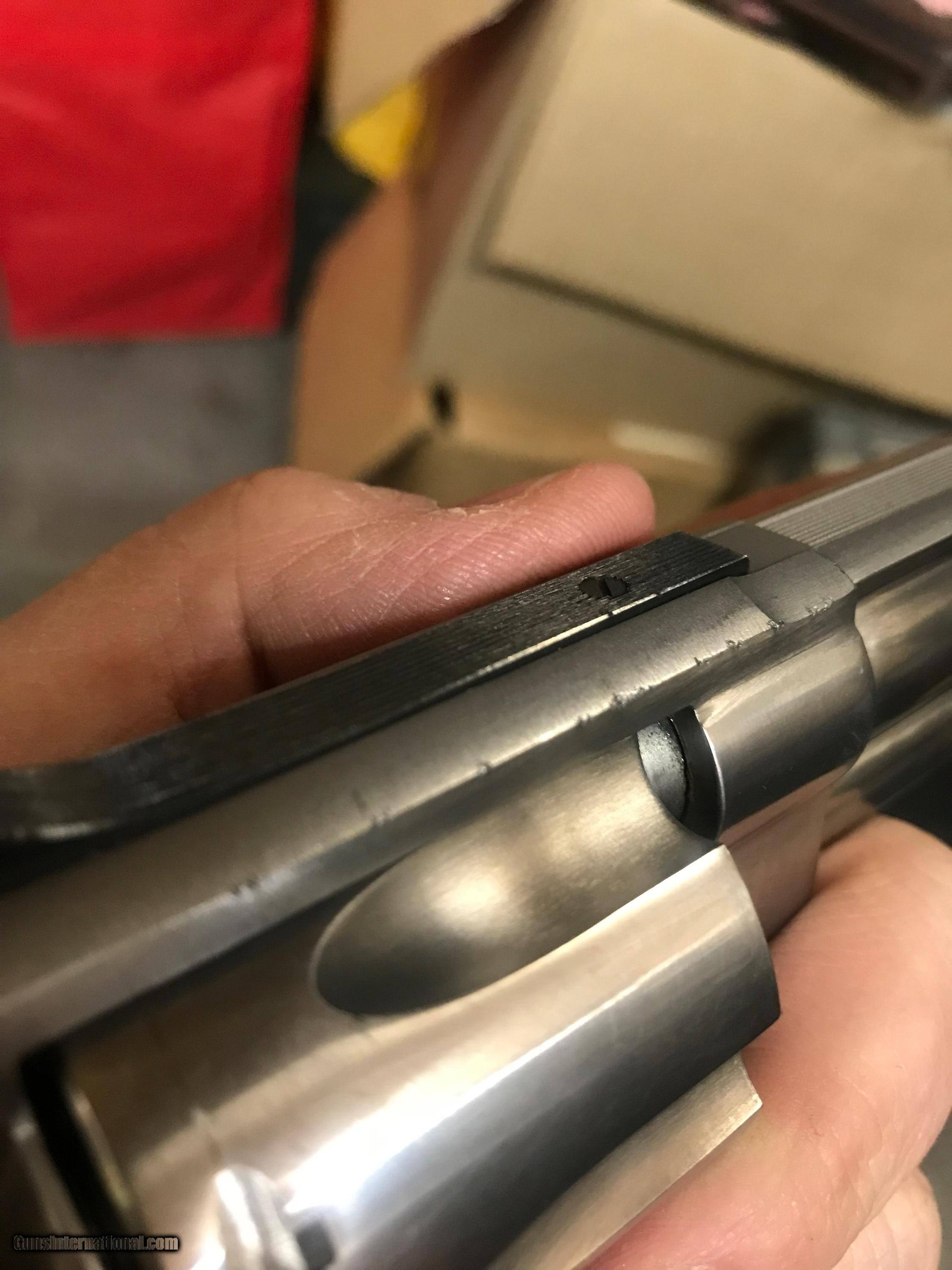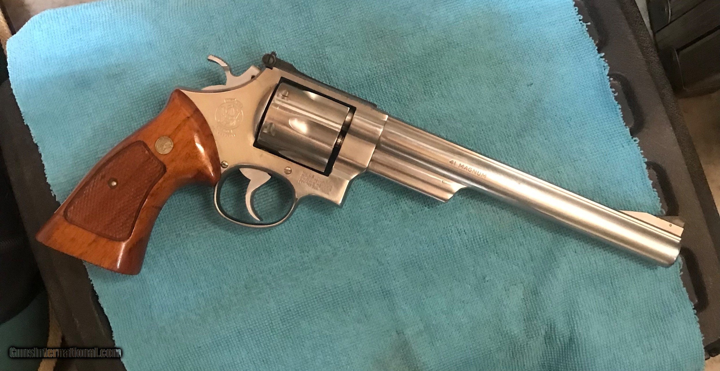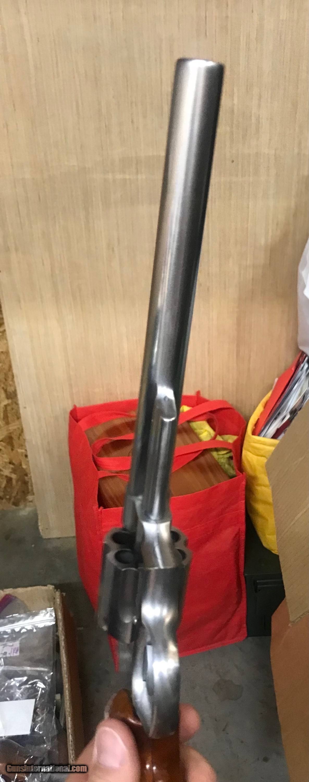 Description: A pretty rare bird, the 657. Stainless, 41 magnum, target sights, trigger, hammer, and grips. Some light pitting on the left side of the frame. Some nicks on the top strap right side. Still a very nice gun. Please email with questions. Shipping included. Cards add 3 % SOLD Manufacturer: Smith and Wesson Model: 657 Barrel Length: 6 inch Condition: Used Metal Condition: Very good Wood Condition: Excellent Bore Condition: Excellent Action: Double Finish: Stainless Sights: Target Item Location: 37075 |