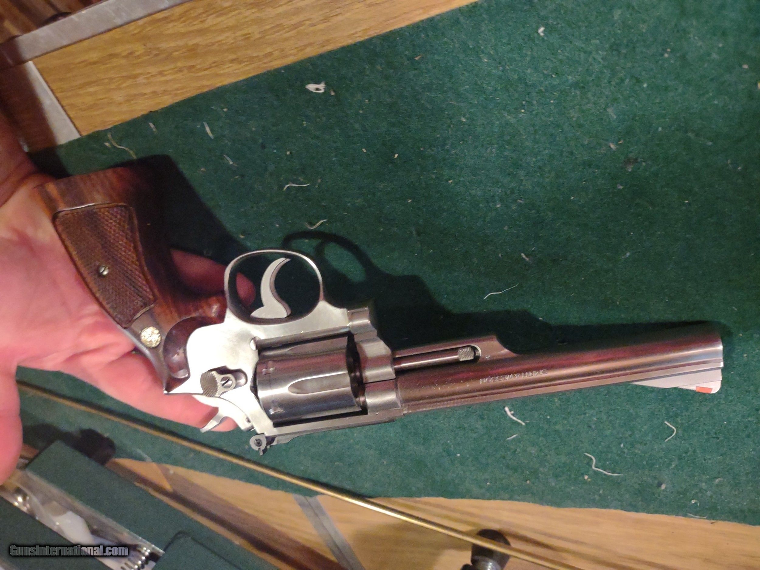Description: With this .357 "combat magnum" The pictures speak for themselves, beautiful figure grips , this gun was bought by a friend of mine new he never fired it, nor have I, it comes with all the original box, paper work, cleaning kit as it did the day it was new, it is a 66-1 with a pinned barrel and recessed cylinder, The condition is superb and has no marks or blemishes as new in box. thank you for looking and God bless America. Please money order only. Shipping is included to your FFL. SOLD Handgun Caliber: .38 Special, .357 Magnum Manufacturer: Smith and Wesson Model: 66-1 Barrel Length: 6 inch Bore: Excellent Chambers: Excellent Ejectors: Excellent Condition: Excellent Metal Condition: Excellent Wood Condition: Excellent Bore Condition: Excellent Barrels: Excellent Barrel Type: Stainless 6 Action: Double Triggers: Great Rib: Stainless Finish: Stainless Engraving: No Extras: Cleaning kit and paper work, original box Case: Yes Item Location: Ohio |