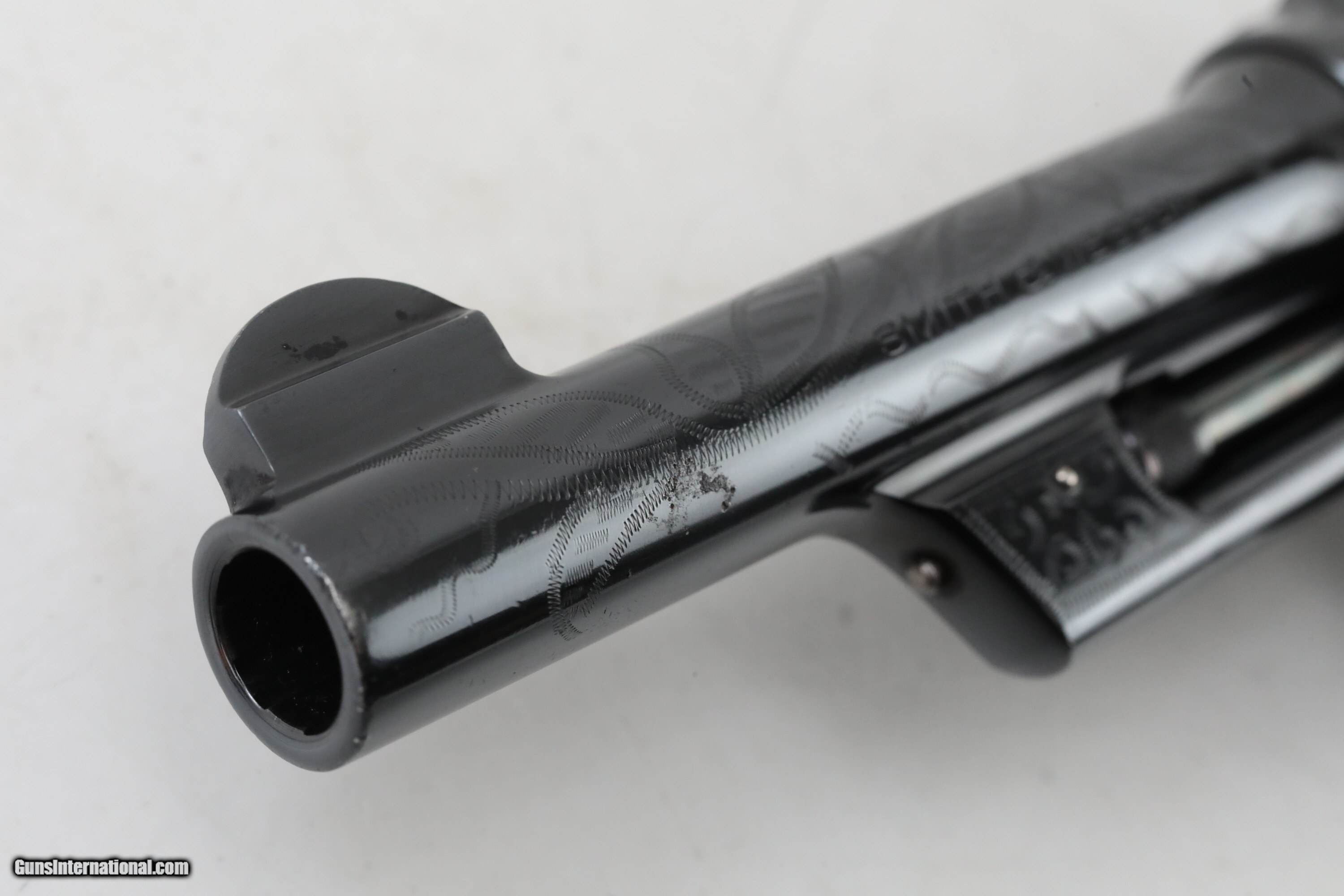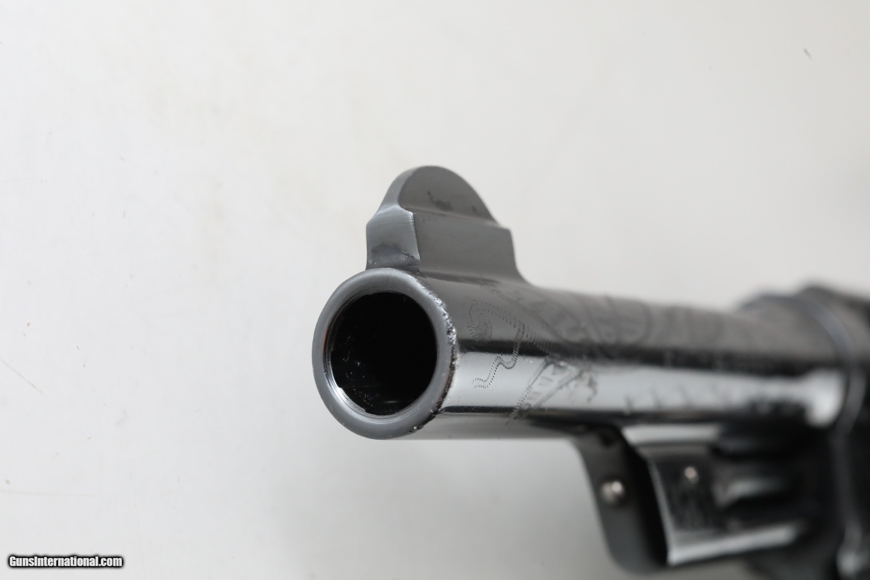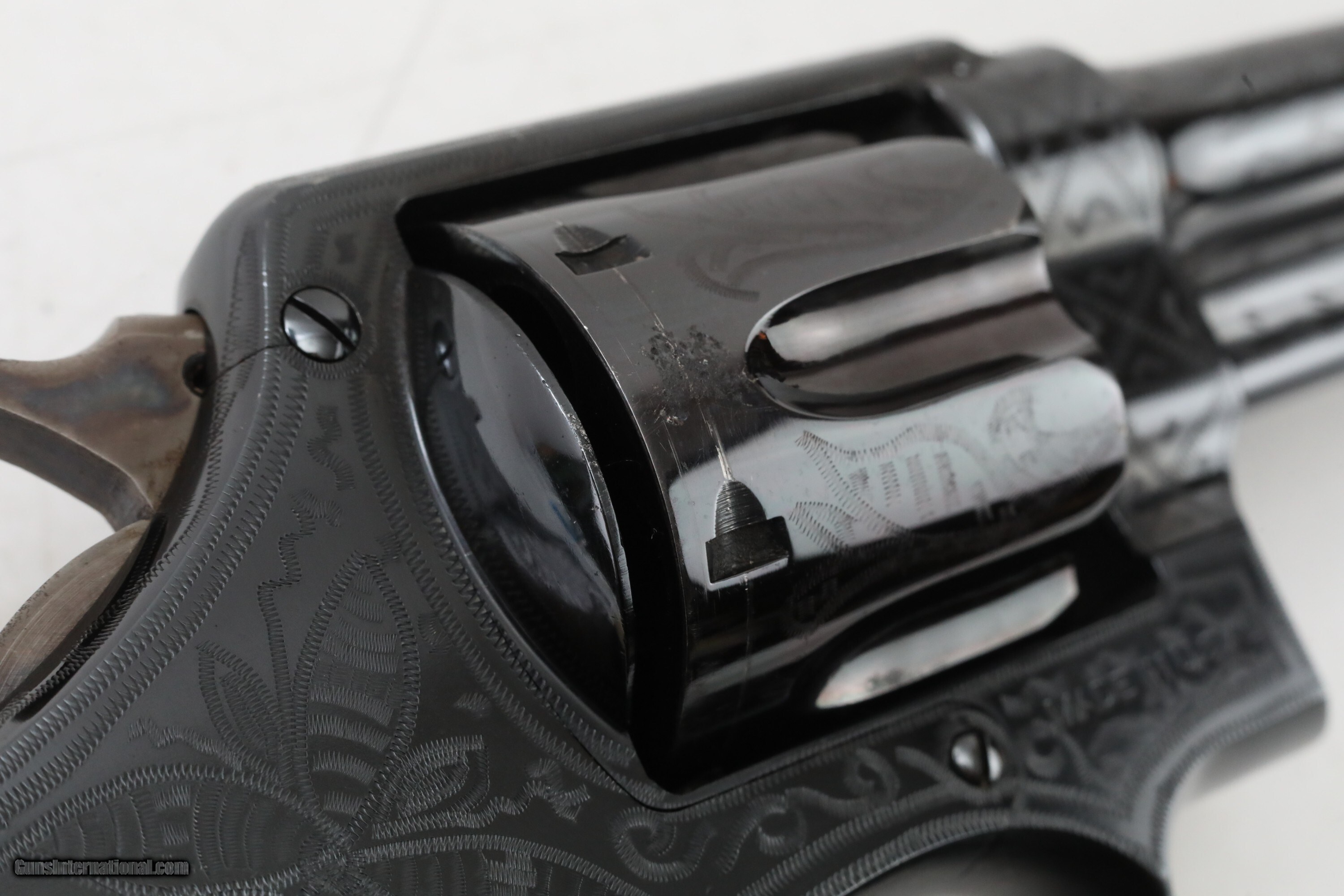 Description: Description: Smith and Wesson S&W .44 Hand Ejector Third Model of 1926 Wolf & Klar Engraved .44 S&W Special 5 Inch Revolver 1928 C&R RARE 1 of 1000 with Factory Letter Description: ***This Private Collection of Note is from a Prominent Member of the Smith and Wesson Community. Follow our listings to see more items from this amazing collection!*** Manufacturer: Smith and Wesson Model: .44 Hand Ejector Third Model of 1926 Wolf & Klar Engraved Action: DA/SA Revolver Caliber: .44 S&W Special Capacity: 6 Serial: 31672 Barrel: 5 inches Finish: Blue (Engraved) Stock/Grips: Pearl This is a RARE Smith and Wesson .44 Hand Ejector Third Model of 1926 Wolf & Klar Engraved that is chambered in .44 S&W Special. This revolver was first introduced at the request of Wolf and Klar of Fort Worth, Texas with an initial order of this model for 1500 units. According to the factory letter from Smith & Wesson 1000 of these had 5 inch barrels. This revolver is one of those 1000 revolvers that was shipped to them from Smith & Wesson on June 23rd, 1928. It has a special engraving which Wolf and Klar requested. According to the Standard Catalog of Smith & Wesson 3rd Edition, the Third Model was made from 1926-1941 with only 4,976 being made in total. This model became very popular with cattlemen and lawmen in Texas, cementing its "Wolf & Klar" nickname. The pinned barrel is 5 inches long with a bore that is in excellent condition. It is a square butt, N frame, and five screw 6-shot double and single action revolver. It has a six shot fluted cylinder with a checkered cylinder release. The serial number "31672" is on the frame on the extractor rod cut, butt, and the rear of the cylinder. The left side of the barrel is marked "SMITH & WESSON". The left side of the frame has the small S&W logo. The right side of the barrel is marked "44 S.&W. SPECIAL CTG". The right side of the frame is marked "MADE IN THE U.S.A." The yoke and yoke cut are marked "65744". It has a shrouded ejector rod. The timing and lock up are perfect based on visual inspection. The blue finish is in excellent condition and the engravings are in BEAUTIFUL condition. It has a case color checkered hammer and smooth trigger. It has a forged round blade fixed front sight and an integral square-notch fixed rear sight. The top strap is grooved to reduce glare. It has 2-piece pearl grips. The underside of the grips are unmarked. The grips are in great shape. The back strap and front strap are smooth. The S&W factory letter is included with this revolver. This revolver qualifies as a curio and relic and can ship where legally allowed. This revolver would make a great addition to any firearms collection. Check out the pictures and you will see this is a great find! Please ask for the full set of high quality photos. ***OFFERS ACCEPTED*** Ships to your FFL for $3995 Nearly all of our sales are consignment listings. If you like how our items are presented and would like us to handle your sales please contact us.....click on " Ask seller a question" and send me a message. We have very competitive rates...ONLY 10% for consignment sales. We have a long history on Gun , and all items are insured that are in our possession. We travel to pick up collections and we send boxes with return labels to make getting your items to us as easy as possible. Handgun Caliber: .44 S&W Special Manufacturer: Smith and Wesson Model: .44 Hand Ejector Third Model of 1926 Wolf & Klar Engraved Price: $3,995 Curio/Relic: Yes Handgun Caliber: .44 S&W Special Price: $3,995.00 Curio/Relic: Yes Handgun Caliber: .44 Special Price: $3,995.00 Contact Seller |