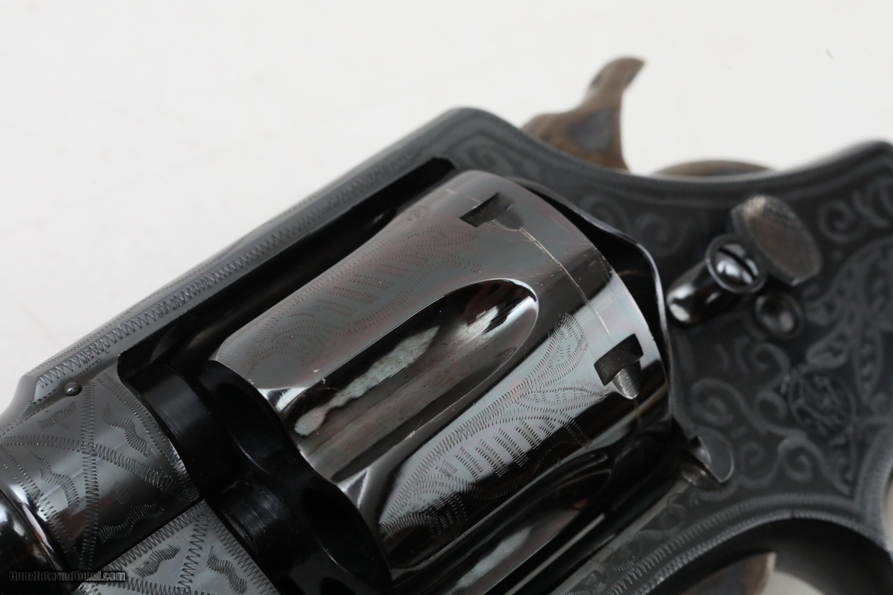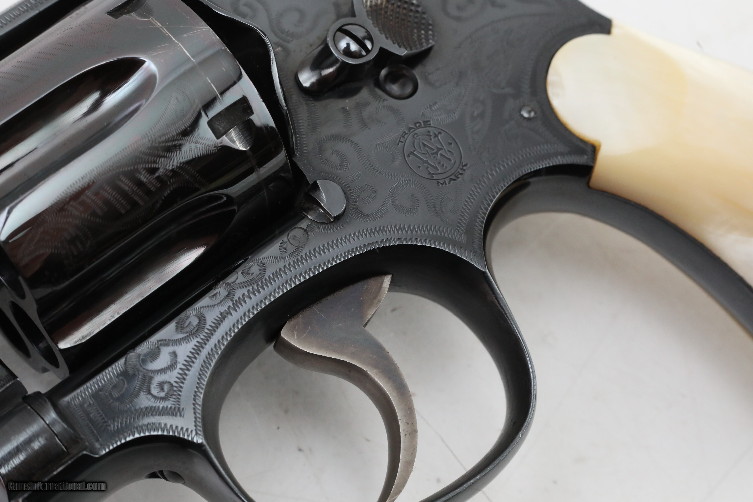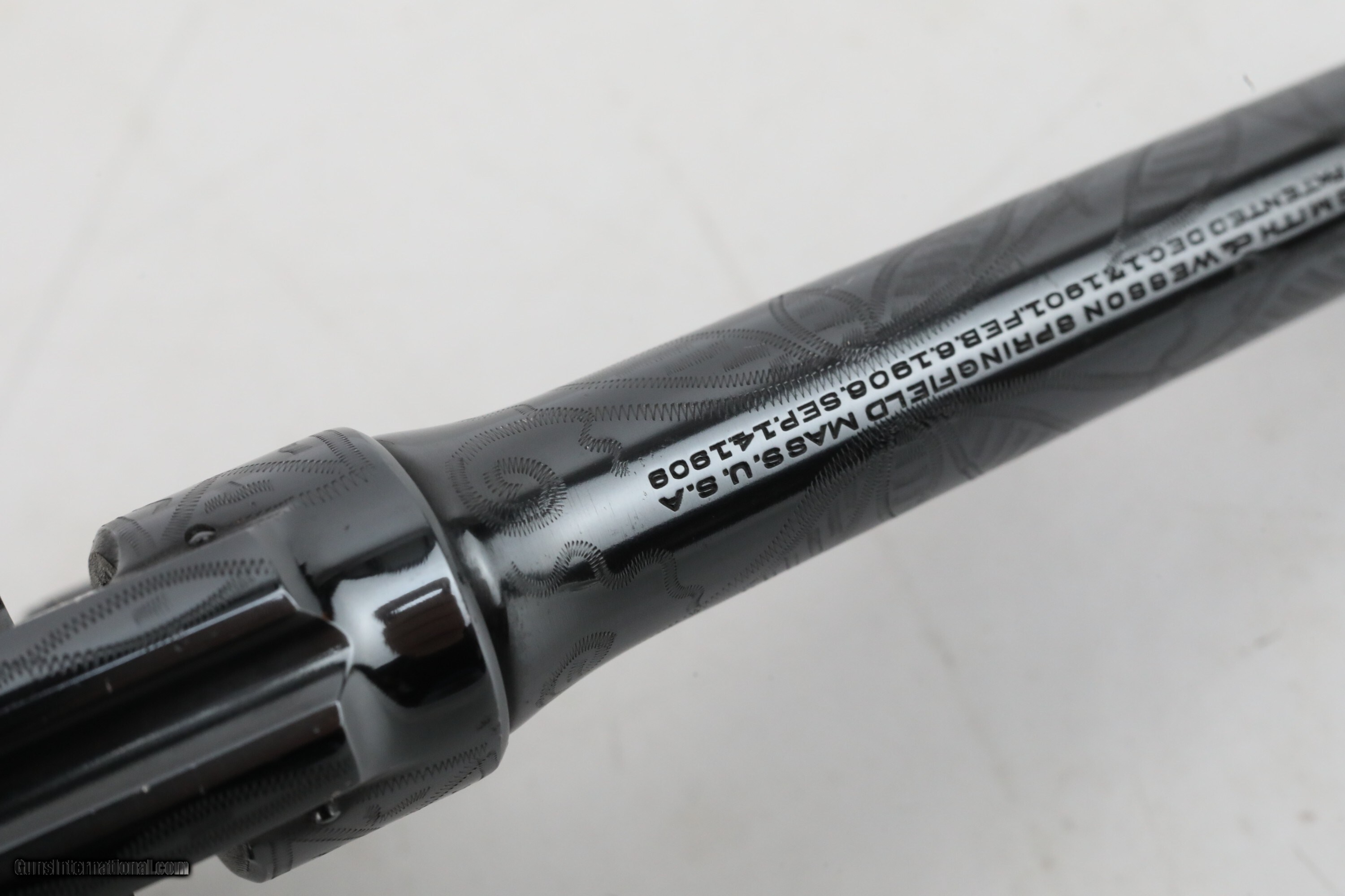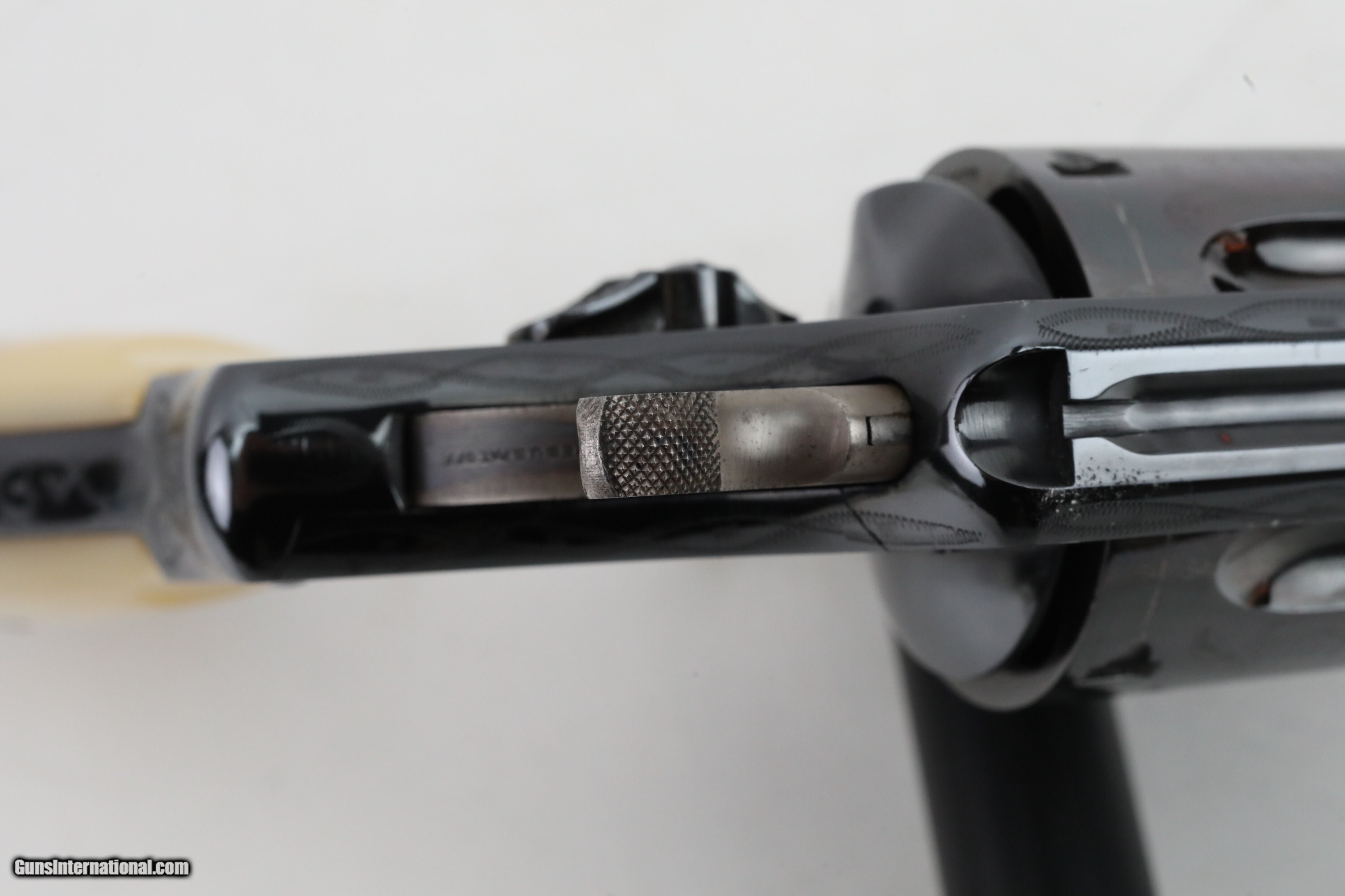 Description: Description: Smith and Wesson S&W .44 Hand Ejector Third Model of 1926 Wolf & Klar Engraved .44 S&W Special 5 Inch Revolver 1928 C&R RARE 1 of 1000 with Factory Letter Description: ***This Private Collection of Note is from a Prominent Member of the Smith and Wesson Community. Follow our listings to see more items from this amazing collection!*** Manufacturer: Smith and Wesson Model: .44 Hand Ejector Third Model of 1926 Wolf & Klar Engraved Action: DA/SA Revolver Caliber: .44 S&W Special Capacity: 6 Serial: 31672 Barrel: 5 inches Finish: Blue (Engraved) Stock/Grips: Pearl This is a RARE Smith and Wesson .44 Hand Ejector Third Model of 1926 Wolf & Klar Engraved that is chambered in .44 S&W Special. This revolver was first introduced at the request of Wolf and Klar of Fort Worth, Texas with an initial order of this model for 1500 units. According to the factory letter from Smith & Wesson 1000 of these had 5 inch barrels. This revolver is one of those 1000 revolvers that was shipped to them from Smith & Wesson on June 23rd, 1928. It has a special engraving which Wolf and Klar requested. According to the Standard Catalog of Smith & Wesson 3rd Edition, the Third Model was made from 1926-1941 with only 4,976 being made in total. This model became very popular with cattlemen and lawmen in Texas, cementing its "Wolf & Klar" nickname. The pinned barrel is 5 inches long with a bore that is in excellent condition. It is a square butt, N frame, and five screw 6-shot double and single action revolver. It has a six shot fluted cylinder with a checkered cylinder release. The serial number "31672" is on the frame on the extractor rod cut, butt, and the rear of the cylinder. The left side of the barrel is marked "SMITH & WESSON". The left side of the frame has the small S&W logo. The right side of the barrel is marked "44 S.&W. SPECIAL CTG". The right side of the frame is marked "MADE IN THE U.S.A." The yoke and yoke cut are marked "65744". It has a shrouded ejector rod. The timing and lock up are perfect based on visual inspection. The blue finish is in excellent condition and the engravings are in BEAUTIFUL condition. It has a case color checkered hammer and smooth trigger. It has a forged round blade fixed front sight and an integral square-notch fixed rear sight. The top strap is grooved to reduce glare. It has 2-piece pearl grips. The underside of the grips are unmarked. The grips are in great shape. The back strap and front strap are smooth. The S&W factory letter is included with this revolver. This revolver qualifies as a curio and relic and can ship where legally allowed. This revolver would make a great addition to any firearms collection. Check out the pictures and you will see this is a great find! Please ask for the full set of high quality photos. ***OFFERS ACCEPTED*** Ships to your FFL for $3995 Nearly all of our sales are consignment listings. If you like how our items are presented and would like us to handle your sales please contact us.....click on " Ask seller a question" and send me a message. We have very competitive rates...ONLY 10% for consignment sales. We have a long history on Gun , and all items are insured that are in our possession. We travel to pick up collections and we send boxes with return labels to make getting your items to us as easy as possible. Handgun Caliber: .44 S&W Special Manufacturer: Smith and Wesson Model: .44 Hand Ejector Third Model of 1926 Wolf & Klar Engraved Price: $3,995 Curio/Relic: Yes Handgun Caliber: .44 S&W Special Price: $3,995.00 Curio/Relic: Yes Handgun Caliber: .44 Special Price: $3,995.00 Contact Seller |