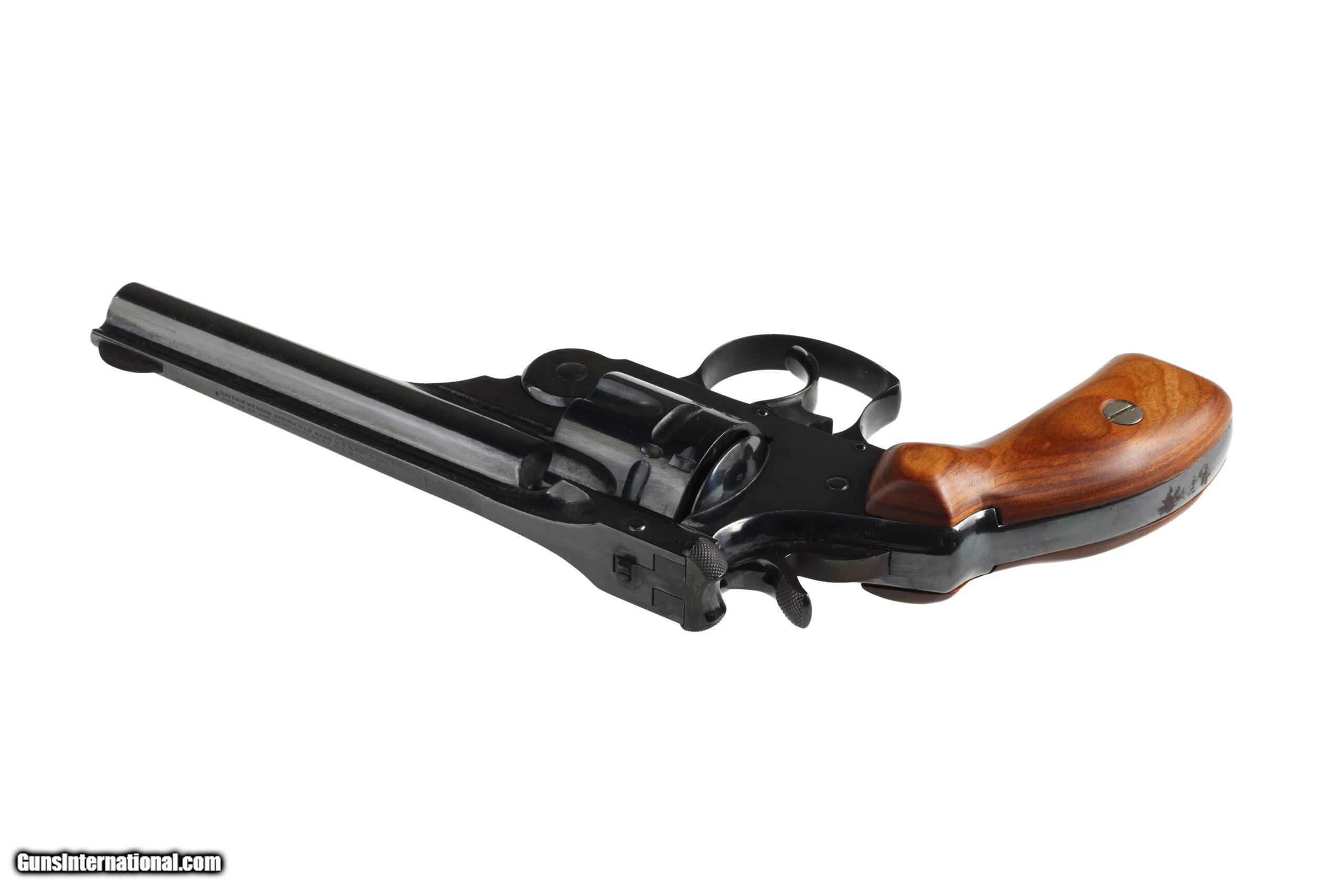 Description: The Smith & Wesson DA 44 is an improved version of the earlier No.3 pistols, utilizing a double action trigger system and improved construction, allowing for toolless field stripping facilitating easy cleaning and maintenance. This example has been entirely refinished and supplied with a custom set of grips. Internally the lockwork is in very good condition and shows good timing and locking. The cylinder does appear to be a replacement , with a different serial number than the frame, but the timing and fitment is very good. The bore has areas of deep pitting, but sharp rifling. Finally the surface finish, it has been re polished and salt blued, making it look quite different from originals. Manufactured in: USA Action Finish: Blue Metal Finish: Refinished Barrel Length: 5 Inches Barrel Condition: Fair Stock Finish: Restocked Stock Condition: Good Grip: Pistol Manufacturer: Smith & Wesson Model: Top Break Caliber Info: .44 Russian Condition: Preowned Metal Condition: Good Action: Revolver Triggers: Single Finish: Refinished Weight: 2.2 lbs Case: NONE Price: $1,200.00 Contact Seller |