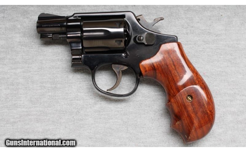 Description: Excellent condition, light finish wear, few small scratches. .38 Caliber "snub nose" 6 shot revolver with 2" barrel, double and single action trigger and custom finger groove wood grips. A good choice for concealed carry. .38 Special SOLD Chambers: Revolver Metal Condition: Excellent Wood Condition: Grips are excellent Bore Condition: Bright Barrels: 2 Triggers: Double and single action Butt Pad: Custom wood grips Item Location: La Vista, NE |