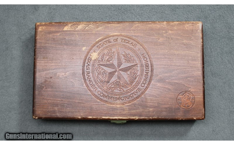 Description: This Smith & Wesson 19--3 revolver is chambered in .357 Magnum. Firearm features smooth walnut grips, a 4" barrel, and a blued finish with ramping front sights and adjustable rear sights. This is a Texas Rangers commemorative piece and has the Ranger's iconic symbol stamped on the frame. Pistol inclued a fine wooden display box with Texas Rangers logo stamped atop the wood and includes a Bowie style commemorative knife. .357 Magnum Metal Condition: Very good with minor wear and handling marks Wood Condition: Very good with minor wear and handling marks Barrels: 4 Inches Item Location: Fort Worth, TX Price: $1,599.99 Contact Seller |