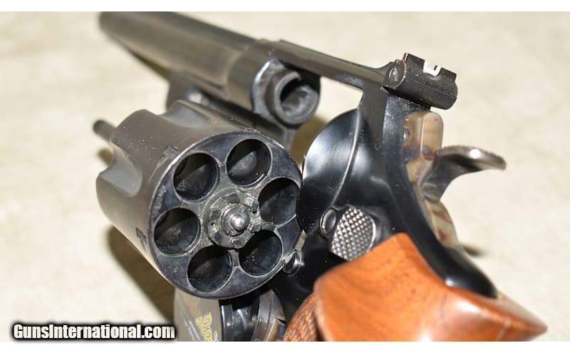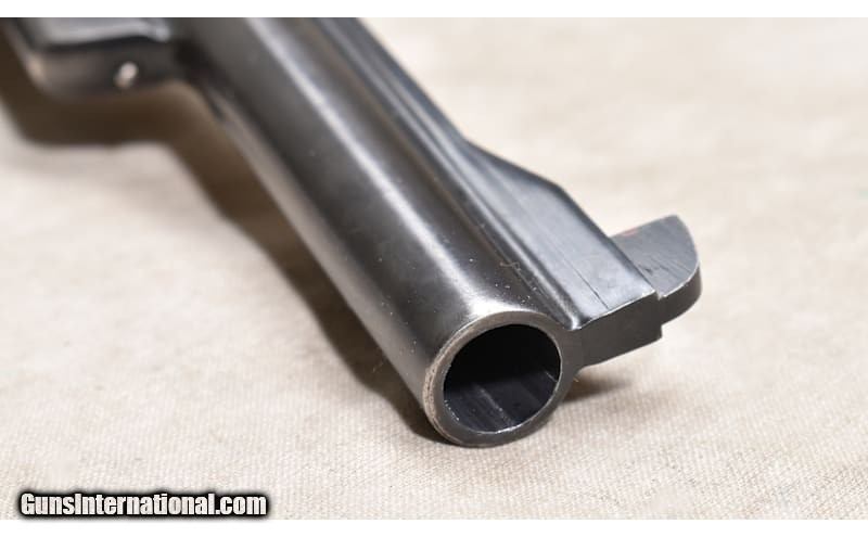 Description: The Model of 1950 is a continuation of the Model 1917, a full-size revolver chambered in .45 ACP, using moon clips. This one is in very good shape, with good rifling, clean metal, and target sights, trigger, and custom target grips. .45 Curio/Relic: Yes Chambers: 6 rounds Metal Condition: Very good. There is a bit of wear at the muzzle and a light turn line. Wood Condition: Very good. Bore Condition: "Shiny and bright, good rifling. Barrels: 5-1/2 inches Triggers: Factory single and double action trigger with target shoe. Butt Pad: Checkered walnut with Thumb rest and palm "rest. Weight: 41 OZ Sights: Post and adjustable notch open sights. Item Location: Rogers Price: $849.99 Contact Seller |