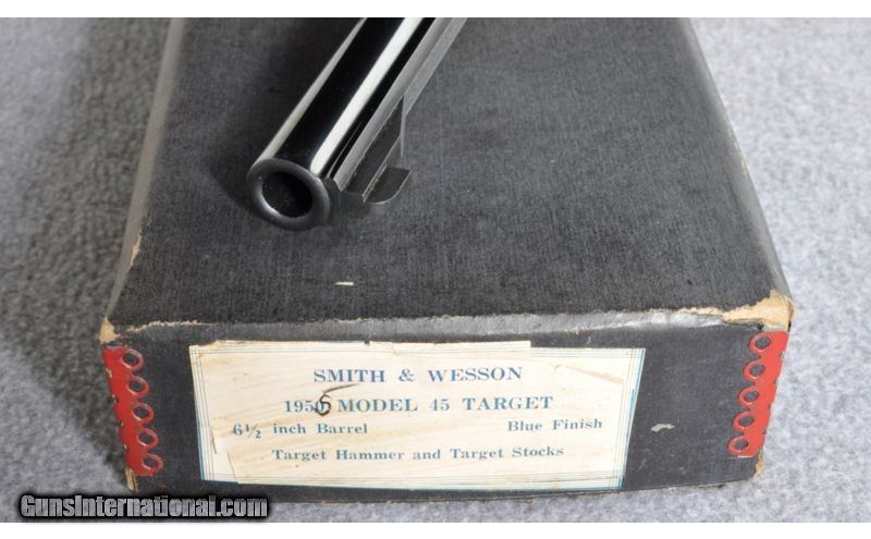 Description: SOLD Manufacturer: 1955-1982 Caliber Info: .45 Automatic Colt Pistol Metal Condition: Excellent showing light drag mark on the cylinder, small mark on the trigger guard Wood Condition: Grips are near new in appearance Bore Condition: Bright with sharp rifling Barrels: 6 1/2" Pinned Triggers: Target Double/Single Action with Target Hammer Stock: Target Stocks Weight: 44 oz Sights: Patridge front blade, Micro Adjustable leaf rear Extras: Factory box Item Location: Grand Junction, CO |