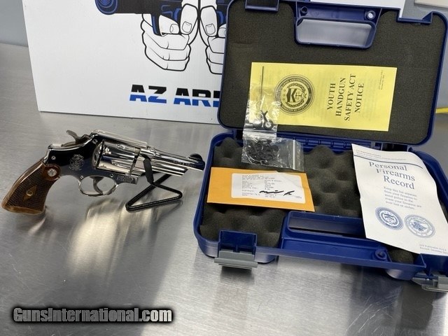 Description: Guns Listing ID: 468645 Smith and Wesson Model 1950 Military Hand Ejector Revolver, 45 ACP/AR, 5 1/2\" barrel with an excellent bore. This early production (1952-53) pre-model 22 revolver remains in lovely condition. They are very desirable and scarce guns with less than 4,000 made in a fifteen-year production period. The metal surfaces retain about 99% original blue finish with limited edge wear, turn ring on the cylinder and few handling marks. The standard trigger and hammer retain bold case-hardened colors. The diamond checkered walnut factory Magna grips with silver S&W medallions rate excellent with a few minor handling marks. The grips and all appropriate parts are correctly numbered to the gun, it still times and locks up correctly and the barrel is marked \"45 CAL. MODEL 1950\". This beautiful revolver has seen only light use and remains in grand condition. A solid investment for the Smith & Wesson collector. SOLD Manufacturer: SMITH & WESSON Model: 22-4 MODEL 1950 Caliber Info: .45 ACP Condition: Used - Non-Certified Barrels: 4 BARREL Finish: NICKEL |