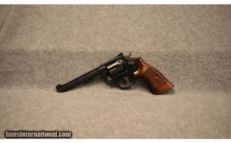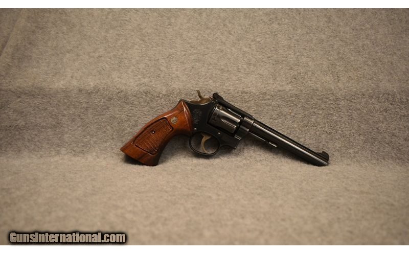 Description: This Smith & Wesson .22LR CTG is in good condition overall. It has some mild rust and wear on the barrel. Grips in good shape with minimal wear. It has an adjustable rear sight. .22 Long Rifle SOLD Chambers: .22 with 6 round cylinder Metal Condition: Good Wood Condition: Good Bore Condition: Clean Barrels: 6 Inch Weight: 4lbs Sights: Adjustable rear sight Item Location: Kansas City, KS |