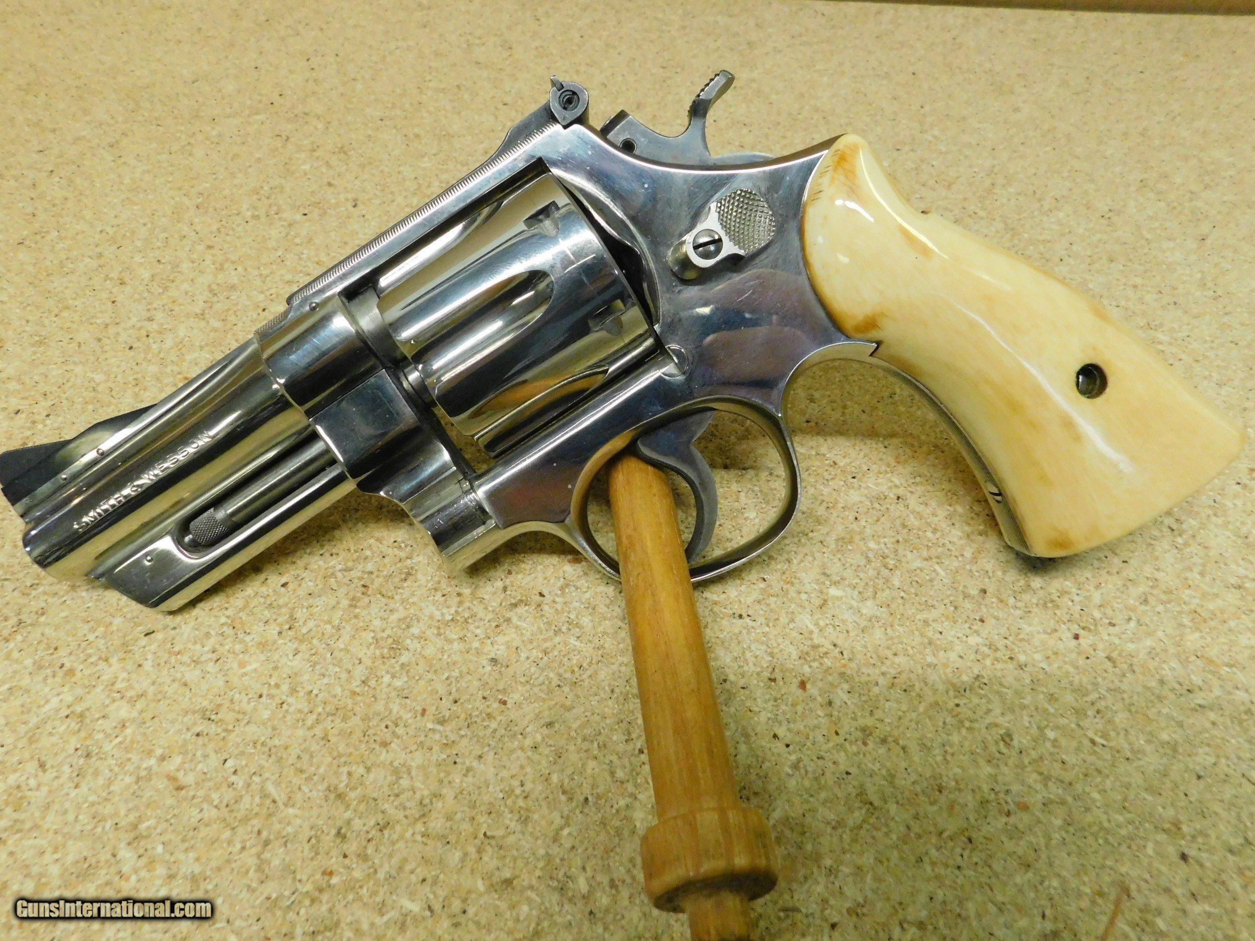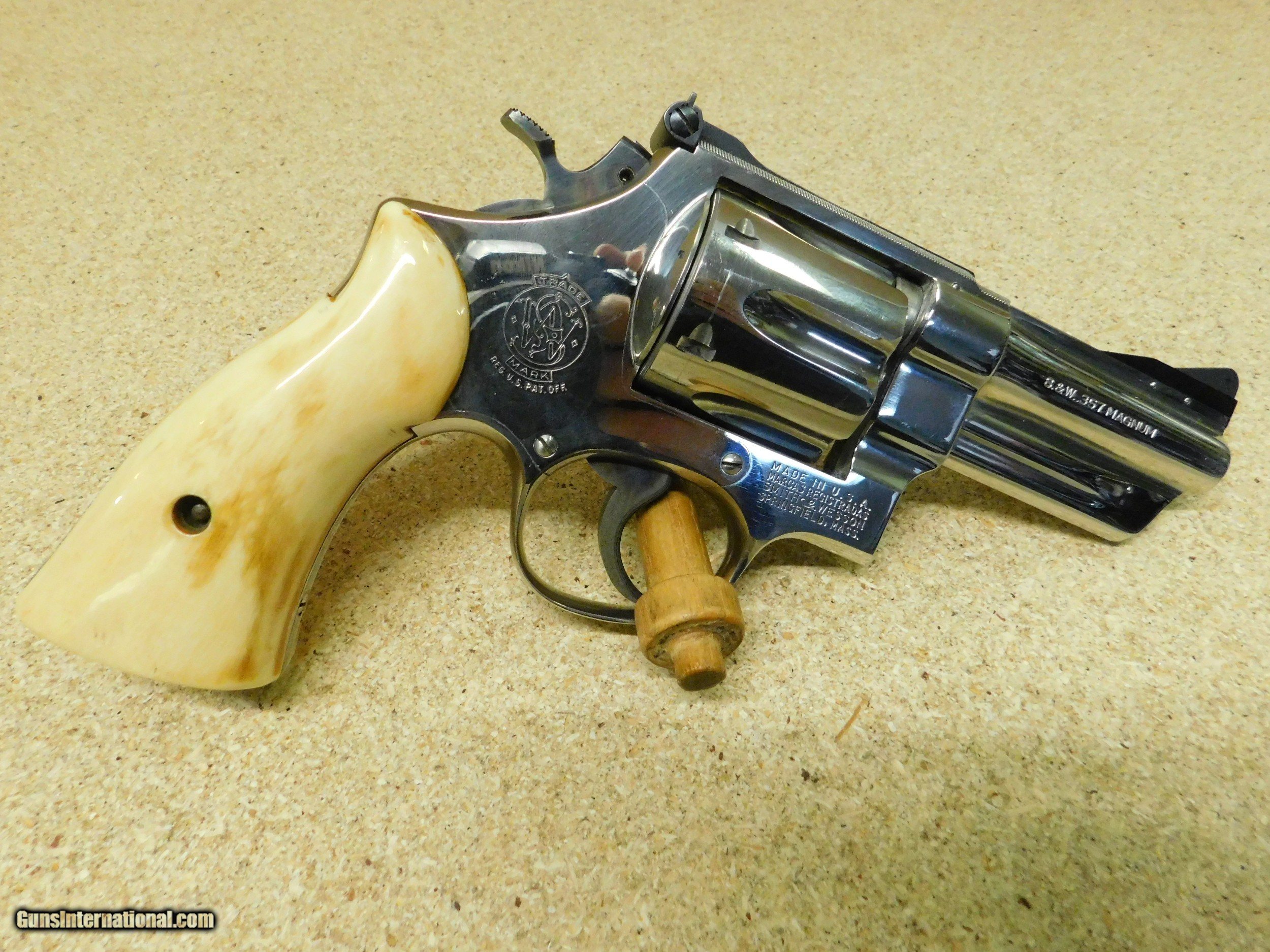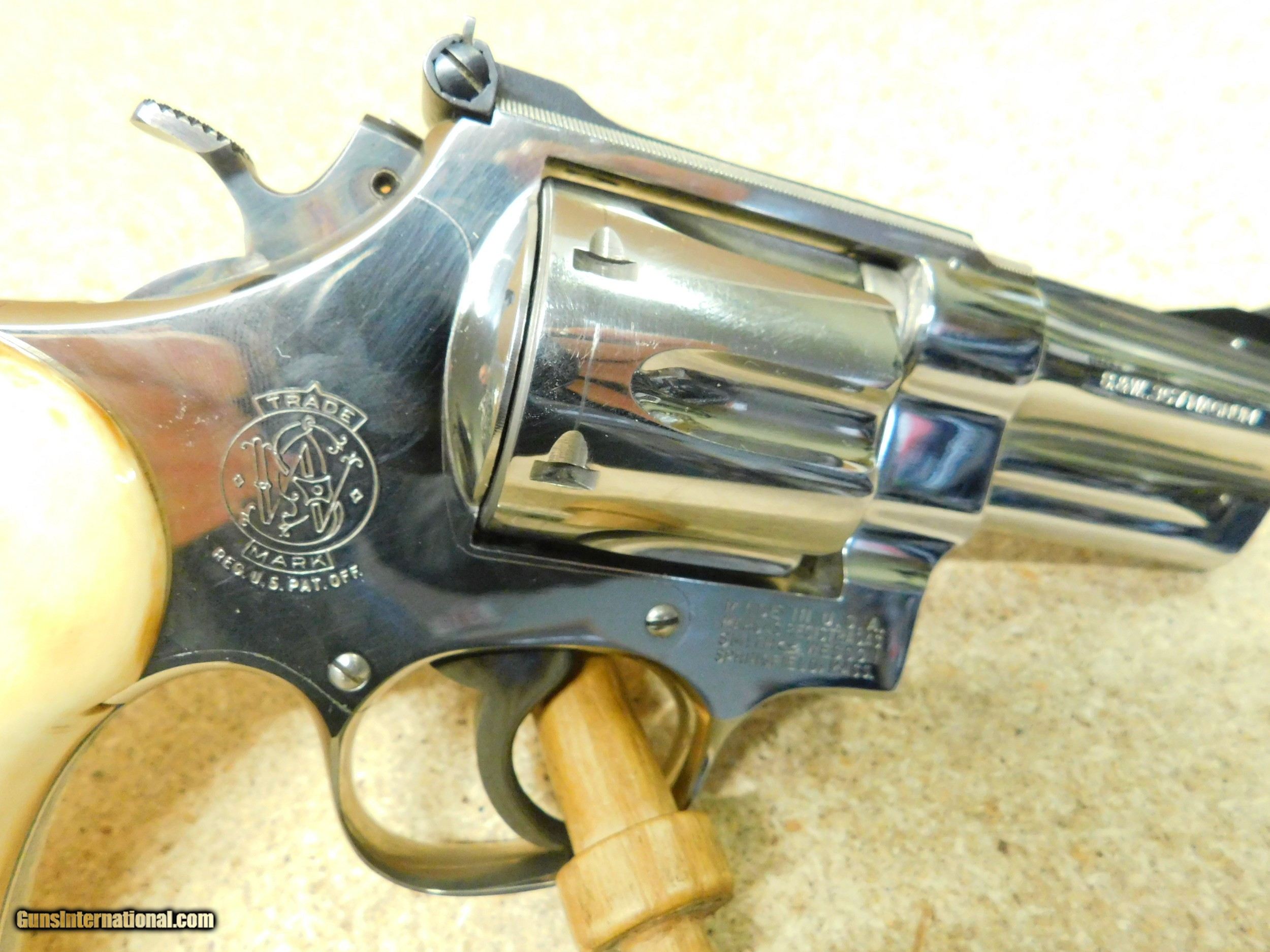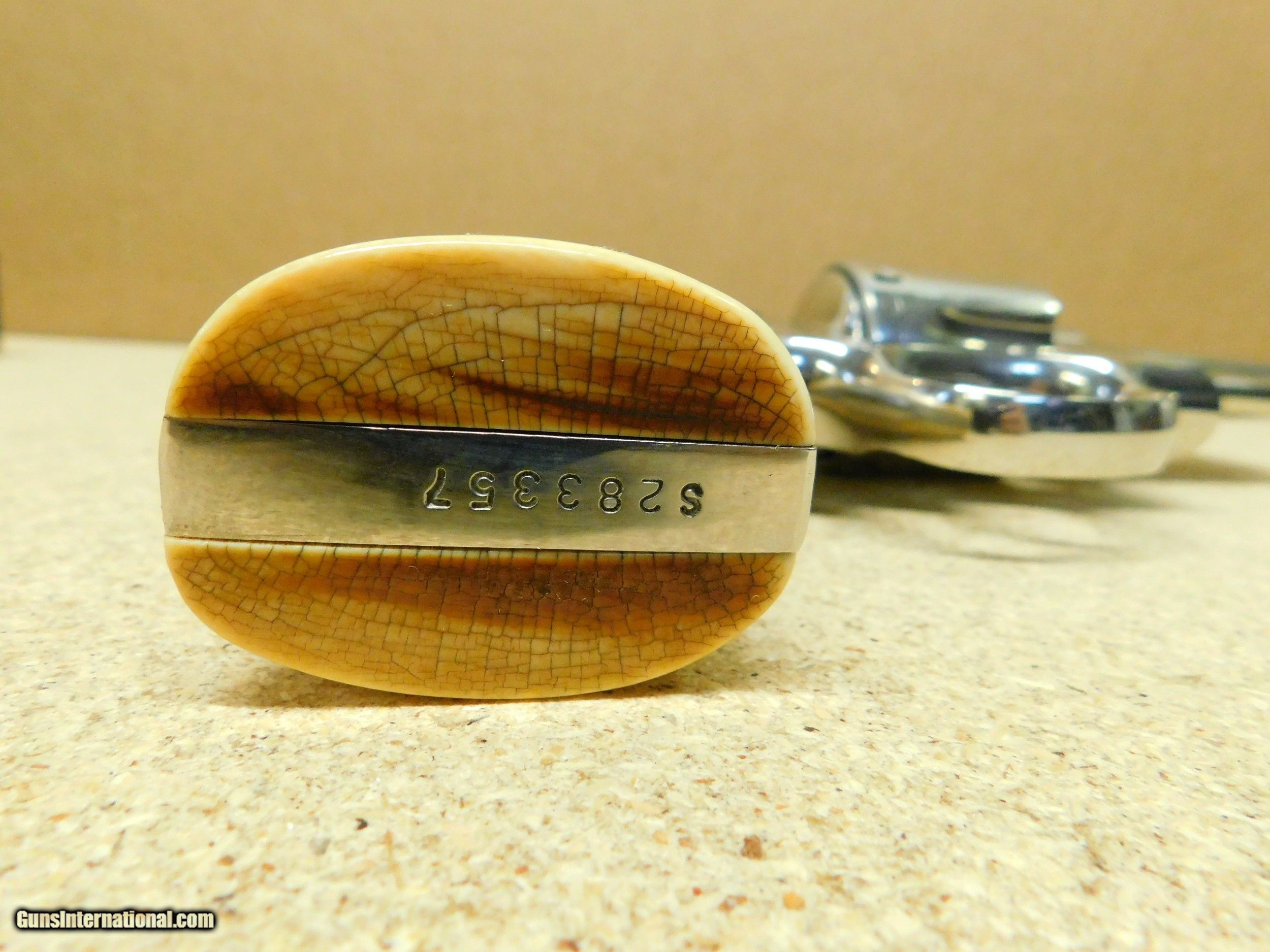 Description: This is a used Smith & Wesson 27-2, 357 Mag revolver Has Lew Horton Ivory grips, with original box It is 6 shot with a 3 1/2" nickel barrel SN-S283357 SOLD Handgun Caliber: .357 Magnum Manufacturer: Smith & Wesson Model: 27-2 Serial Number: S283357 Barrel Length: 3 1/2 Condition: Used Metal Condition: Very Good Bore Condition: Very good Barrels: Nickel Action: Double Finish: Nickle Extras: Lew Horton Ivory Grips, Original Box |