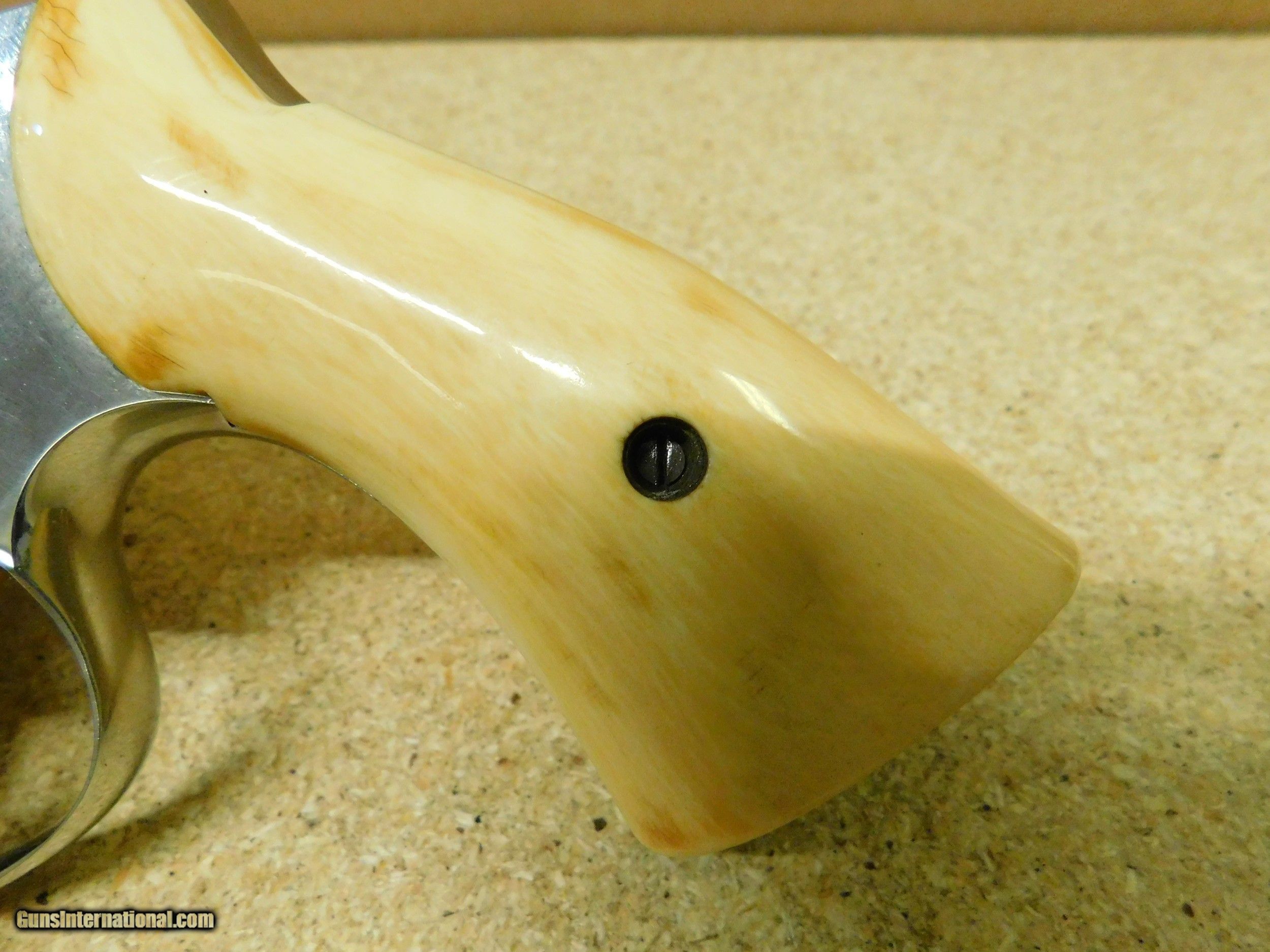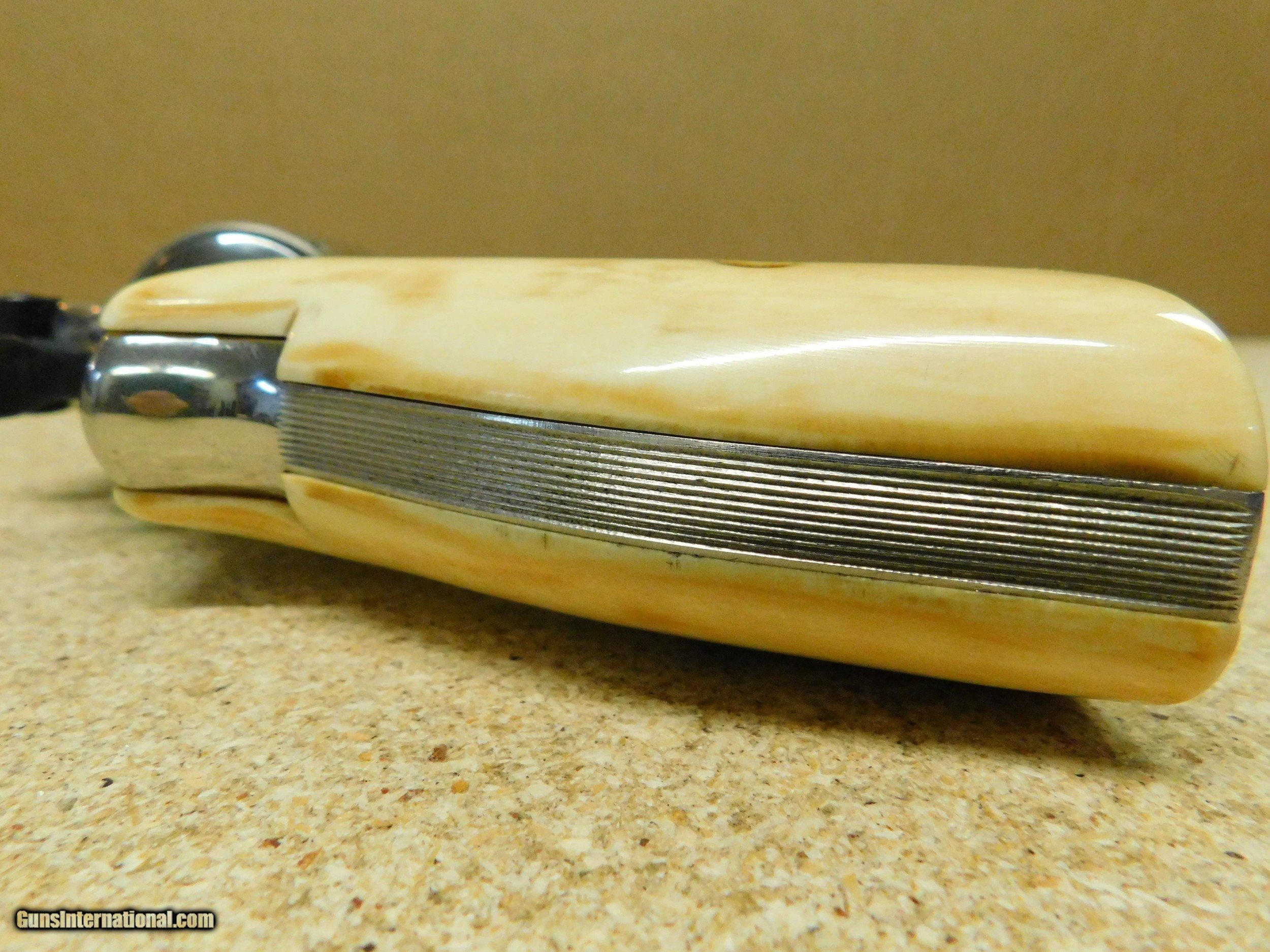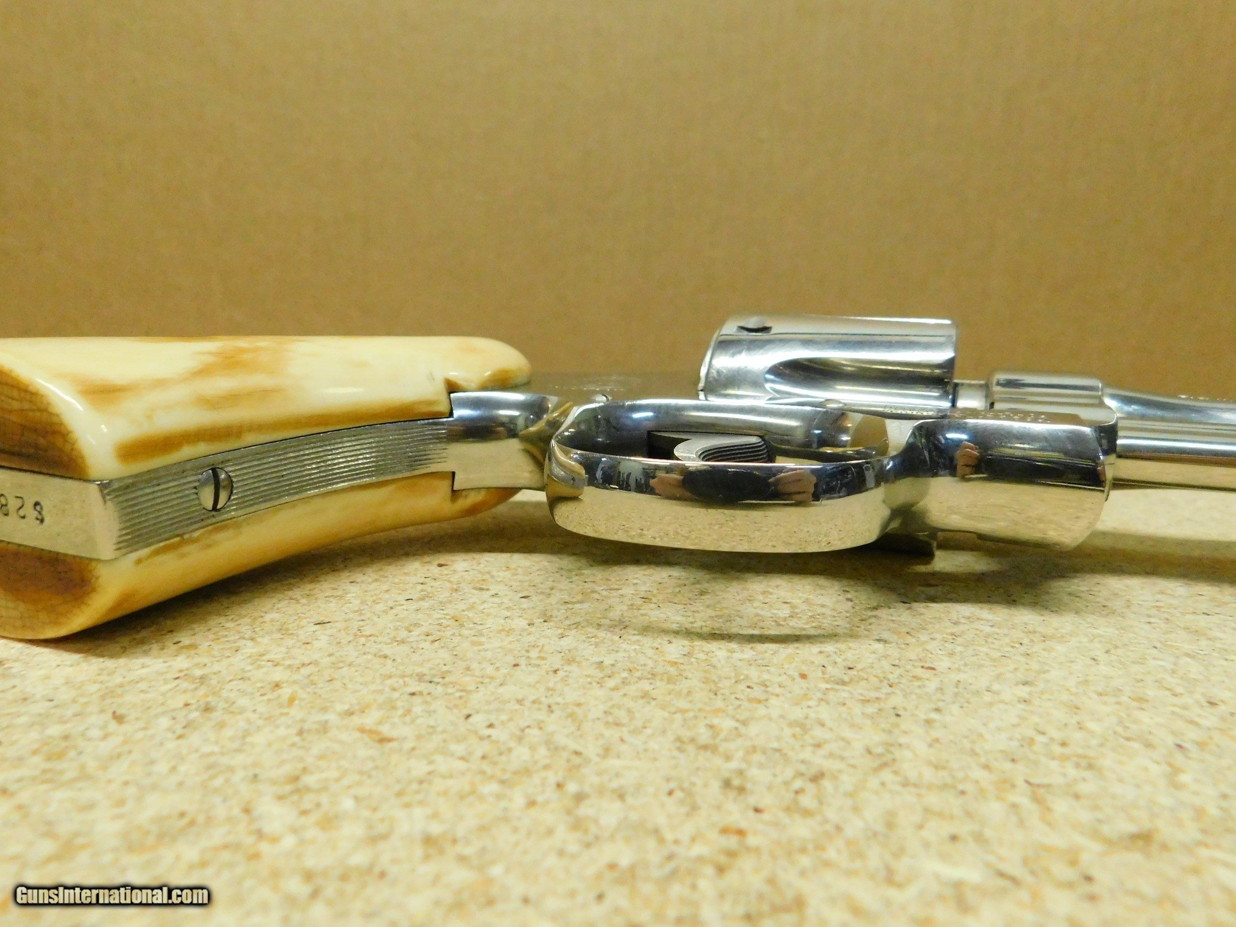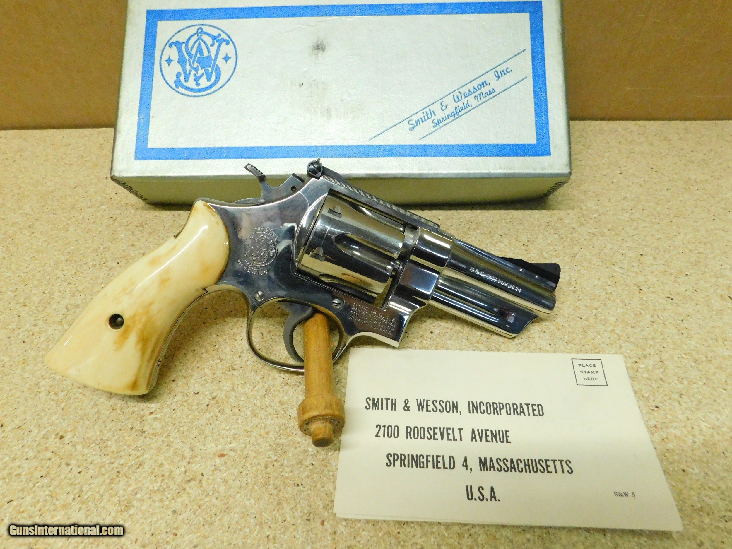 Description: This is a used Smith & Wesson 27-2, 357 Mag revolver Has Lew Horton Ivory grips, with original box It is 6 shot with a 3 1/2" nickel barrel SN-S283357 SOLD Handgun Caliber: .357 Magnum Manufacturer: Smith & Wesson Model: 27-2 Serial Number: S283357 Barrel Length: 3 1/2 Condition: Used Metal Condition: Very Good Bore Condition: Very good Barrels: Nickel Action: Double Finish: Nickle Extras: Lew Horton Ivory Grips, Original Box |