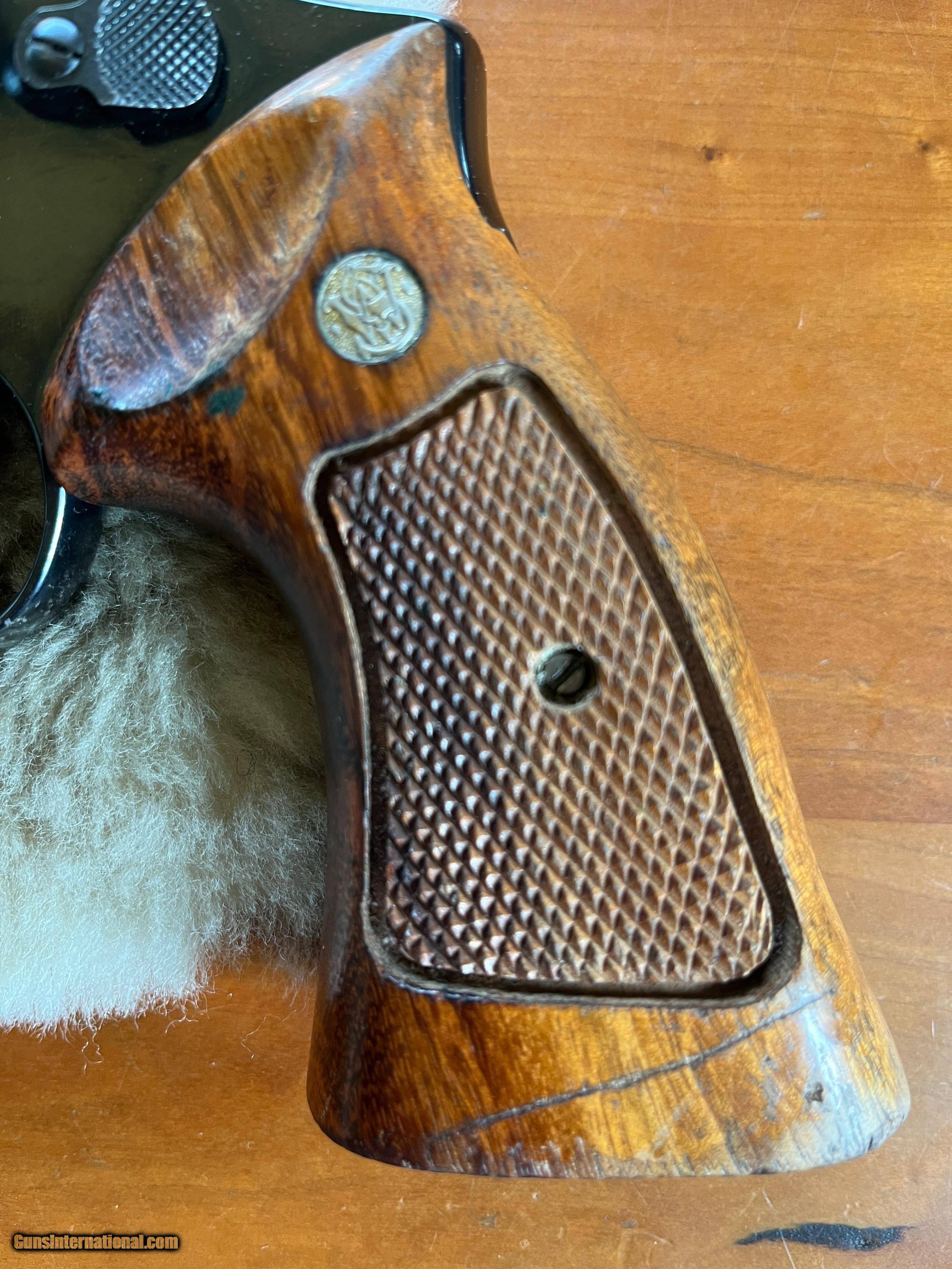 Description: Smith & Wesson, S&W, Early pinned and recessed 27-2. Target sights, Target Trigger, Target Hammer, checkered Target Grips. 6" Barrel. Condtion: Very good as used. Gun shows high gloss blue with hoslter wear on the muzzle, and cylinder. Drag line on the cylinder. Sights have paint added for visibility. Grip are solid with no cracks or repairs, but are scratched and darkened from oil. This is a prefect gun for someone whom wants a collectible Smith & Wesson but also wants to shoot it as well. Credit Cards Accepted (+3.49%) Seven Days and Sold, Inc. $55 Shipping and tracking in CONUS. Insurance extra. AK & HI are extra. THE PRICE REFLECTED IS FOR CASH/CHECK/MONEY ORDERS. FULL payment is to be received within 10 days of the sale, otherwise, the item will be relisted, and appropriate feedback will be left. Most items purchased will have sales tax applied. Please note: We place a 14-business day HOLD on shipment, for all non-certified payments. We make no warranties or guarantees as to the function, fire-ability or safety of doing so on any of these items. Firearms are not test fired, however we do test the action to see if it functions properly for a dry fire. We do not put any ammo in it or disassemble it to check internal parts. We will sometimes disassemble the firearm to prevent damage in shipping. We only sell used guns and have no way of knowing the extent of their previous use. WE DO NOT SHIP INTERNATIONALLY. All firearms, regardless of Federally defined antique status being shipped into New York State must be shipped to a dealer for transfer within NY. We do NOT offer local pick-up, locally purchased items will be delivered (free of charge) to a local FFL offering 4473 transfers for a fee. 7 Days and Sold also reserves the right to cancel any sales. SOLD Handgun Caliber: .38 Special, .357 Magnum Manufacturer: Smith & Wesson Model: 27-2 Serial Number: N394999 Barrel Length: 6 Condition: Good Bore Condition: bright |