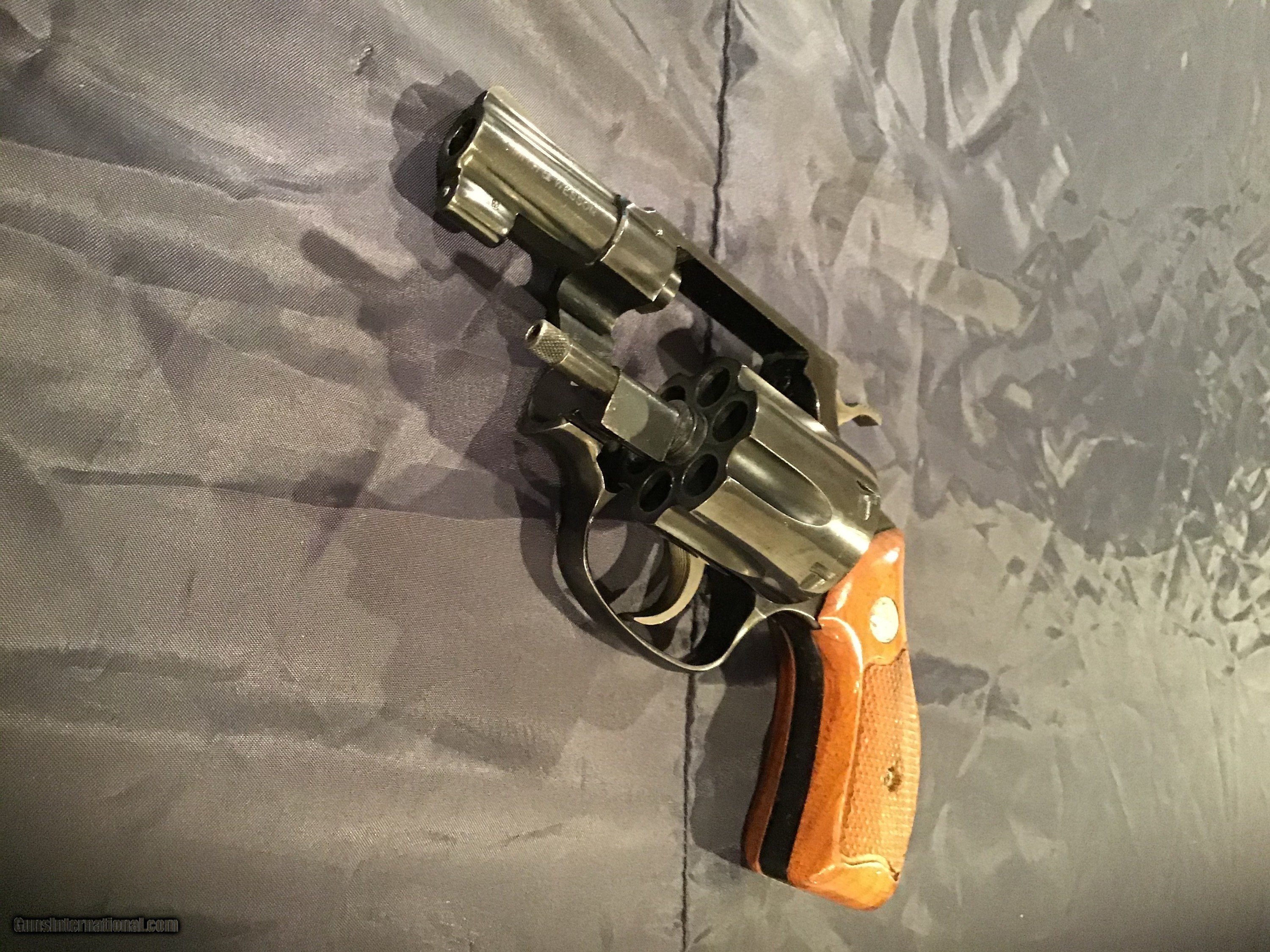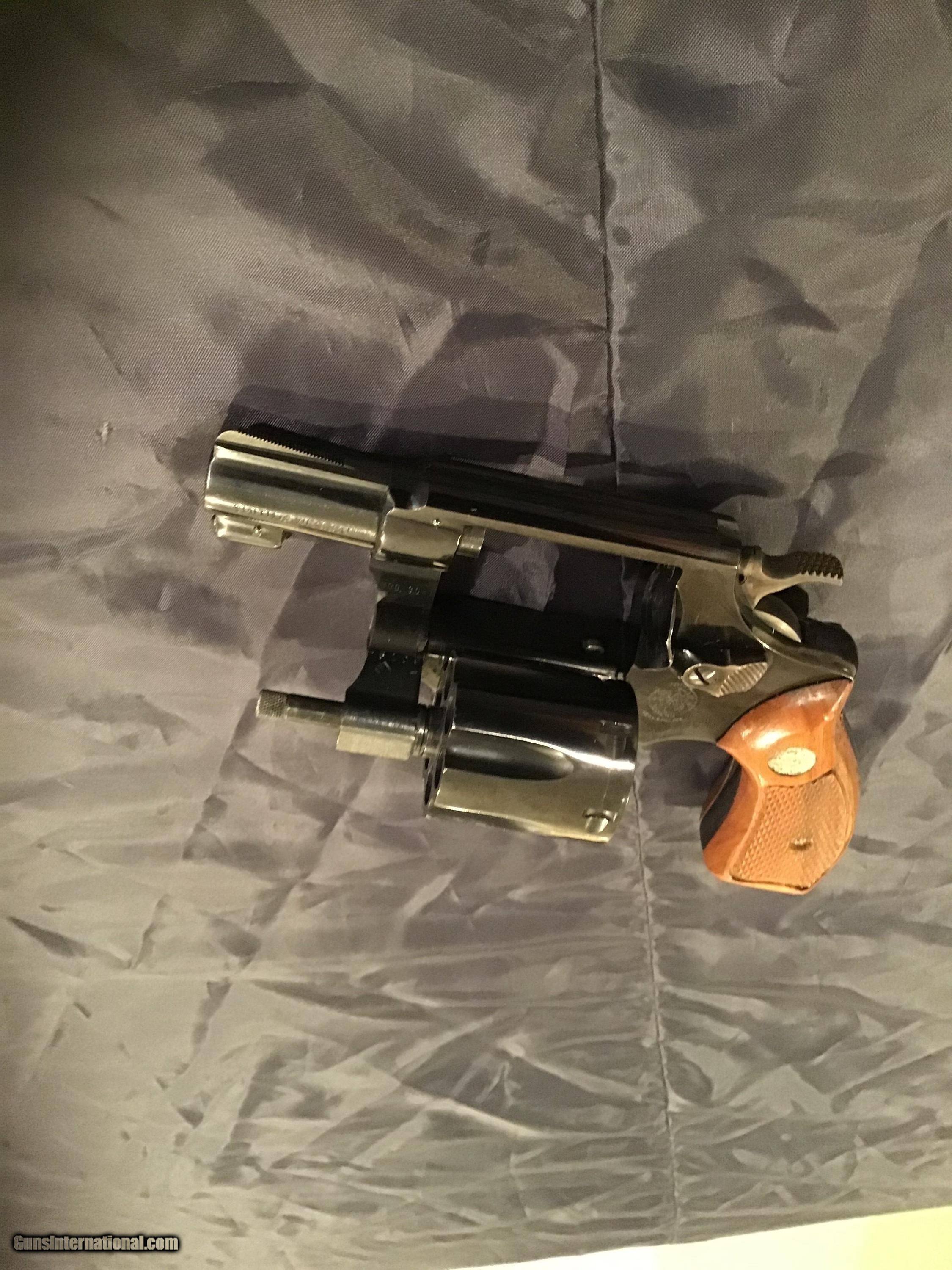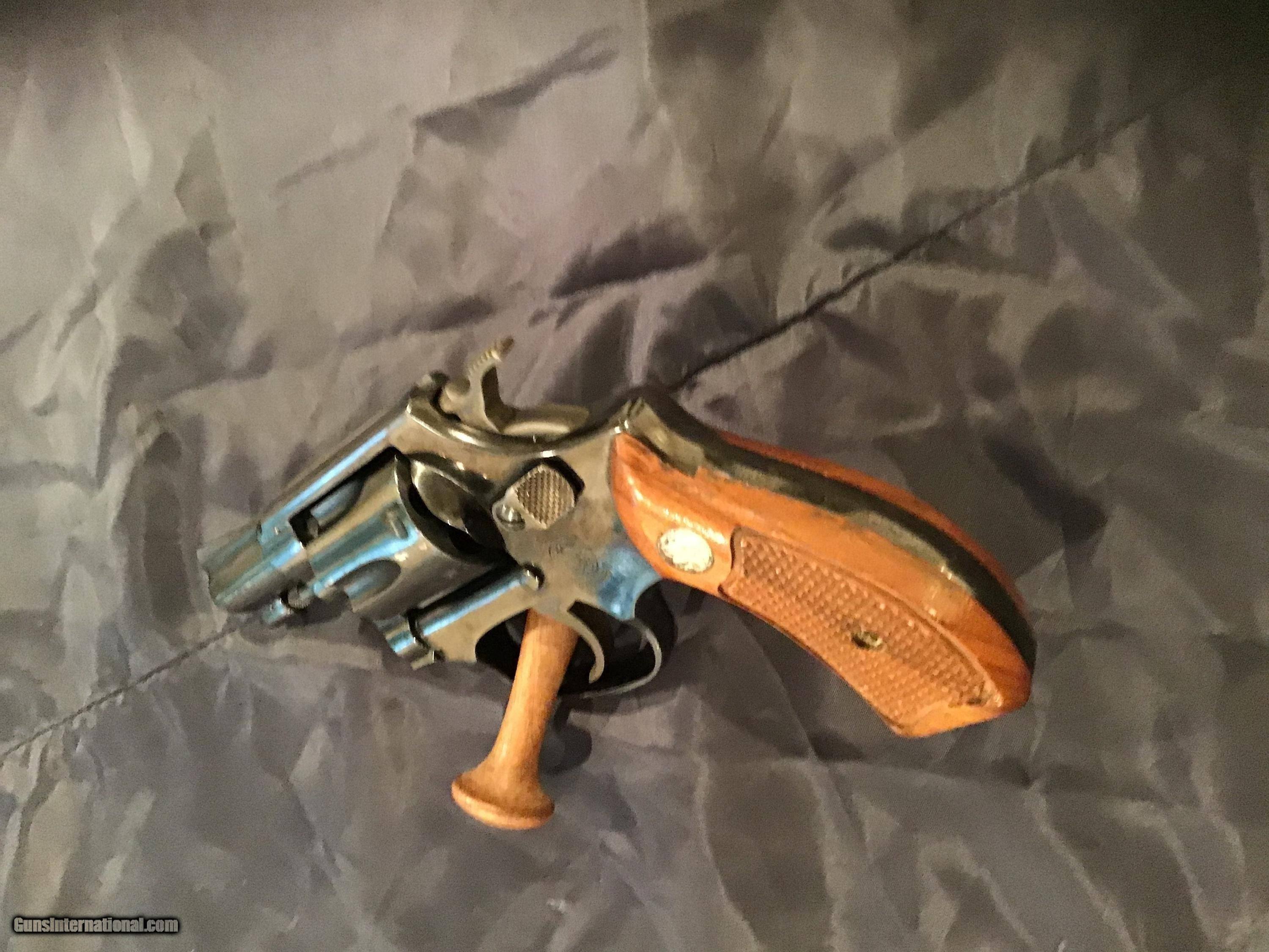 Description: This Smith & Wesson is chambered in .32 S & W long. The grip has very minor pitting that is hard to spot under normal light conditions. There is also some small spots of bluing wear on the cylinder. Mechanical functioning is very good along with the condition of the original grips. This gun was manufactured in the late !960's. SOLD |