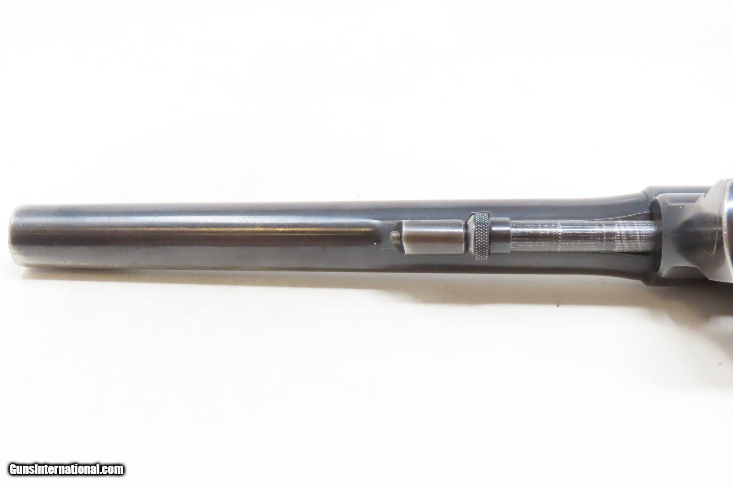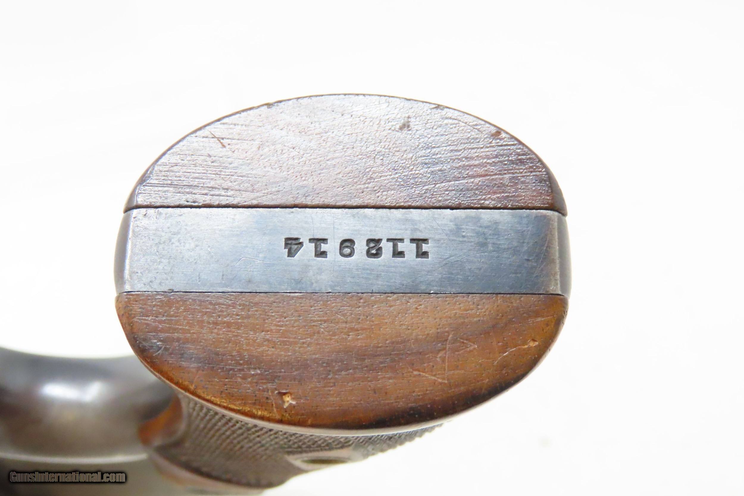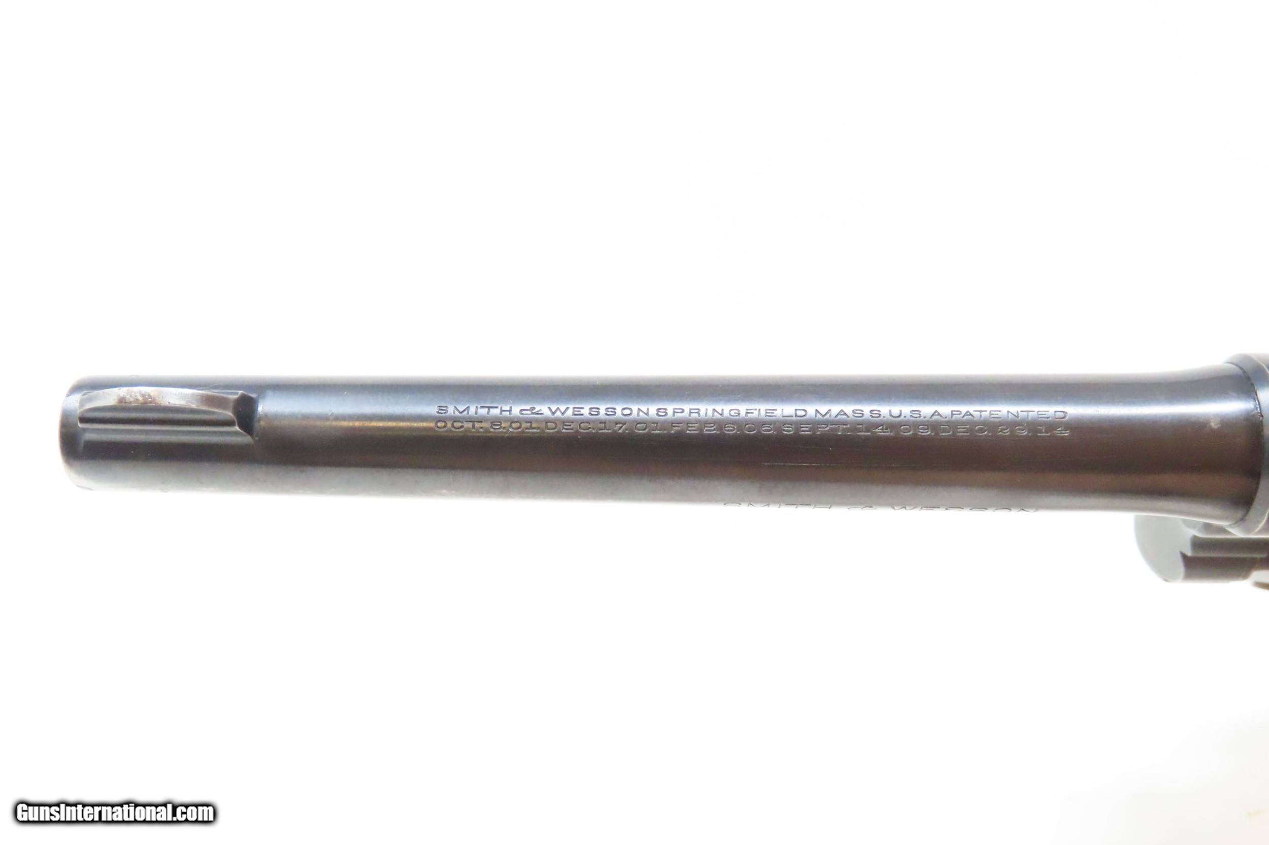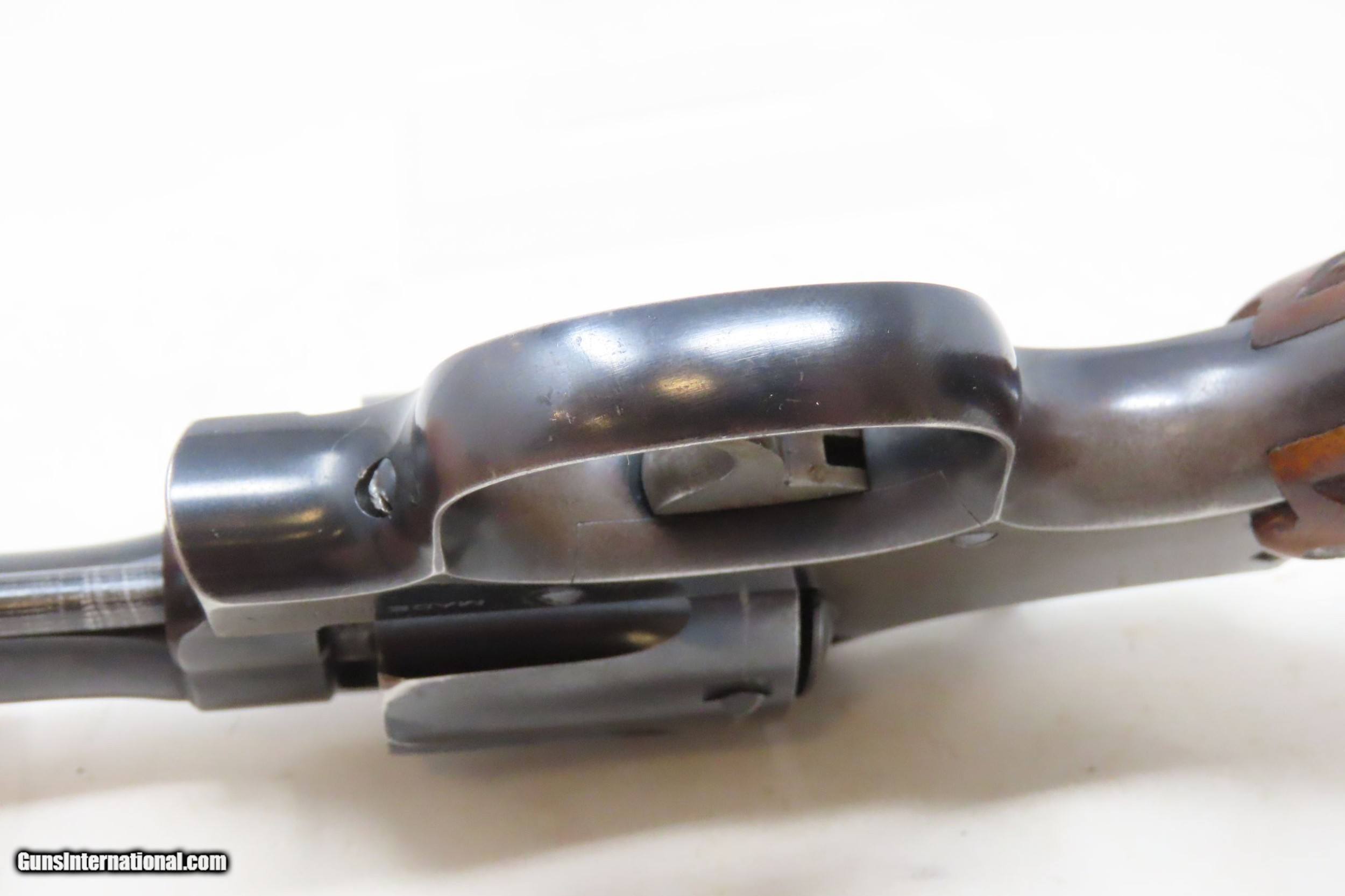 Description: SMITH & WESSON .32-20 “Hand Ejector” Model 1905 SELF DEFENSE Revolver C&R EXCELLENT Fourth Change CONCEAL & CARRY Revolver Here we present a C&R Smith & Wesson .32-20 WCF Hand Ejector Model 1905 Fourth Change Revolver manufactured circa the Roaring Twenties with a production run between 1915 and 1940 in Springfield, Massachusetts. The serial number range of these ran from 67,701 to 144,684 before production was stopped in 1940. The “Hand Ejector” models were the first time S&W made a revolver with a swing-out cylinder. Interestingly, there is no cylinder latch, but the action opens by pulling forward on the exposed portion of the cylinder pin. This frees the spring tension and allows the cylinder to swing free. Another novel feature of this model is the cylinder stop location, which is located in the top of the frame over the cylinder. This revolver is chambered for .32-20 Winchester Centerfire cartridges, has a 6-shot fluted cylinder and was offered with 3.25", 4.25" and 6" long barrels. Available with a round or square butt, it also came with checkered hard rubber grips and was either blued or nickel-plated. Factory installed target sights were available by special order. Determining this exact date of production on these revolvers is a bit sketchy. They seem to have produced a large number in the late 1920s and then stored them instead of shipping them. It is also known that Smith & Wesson didn’t ship in serial number sequence. The overall condition is excellent. Original finish. Tight, strong action. Bright bore. Clear, legible markings throughout. Serial numbers match. The part number on the crane, does not match the part number on the frame. Fine grips, sharp checkering, less than expected handling. This firearm is classified as a Curio & Relic. Barrel is 6 inches. Caliber: .32-20 Winchester Center Fire Overall condition as seen in photos. Very Fast. Very Safe. FREE SHIPPING. Will need to be sent to your local FFL or C&R licensee. This firearm is classified as a Curio & Relic. Guaranteed AUTHENTIC & Includes CERTIFICATE OF AUTHENTICITY. ancestryguns $1350 #226825 SOLD Curio/Relic: Yes |