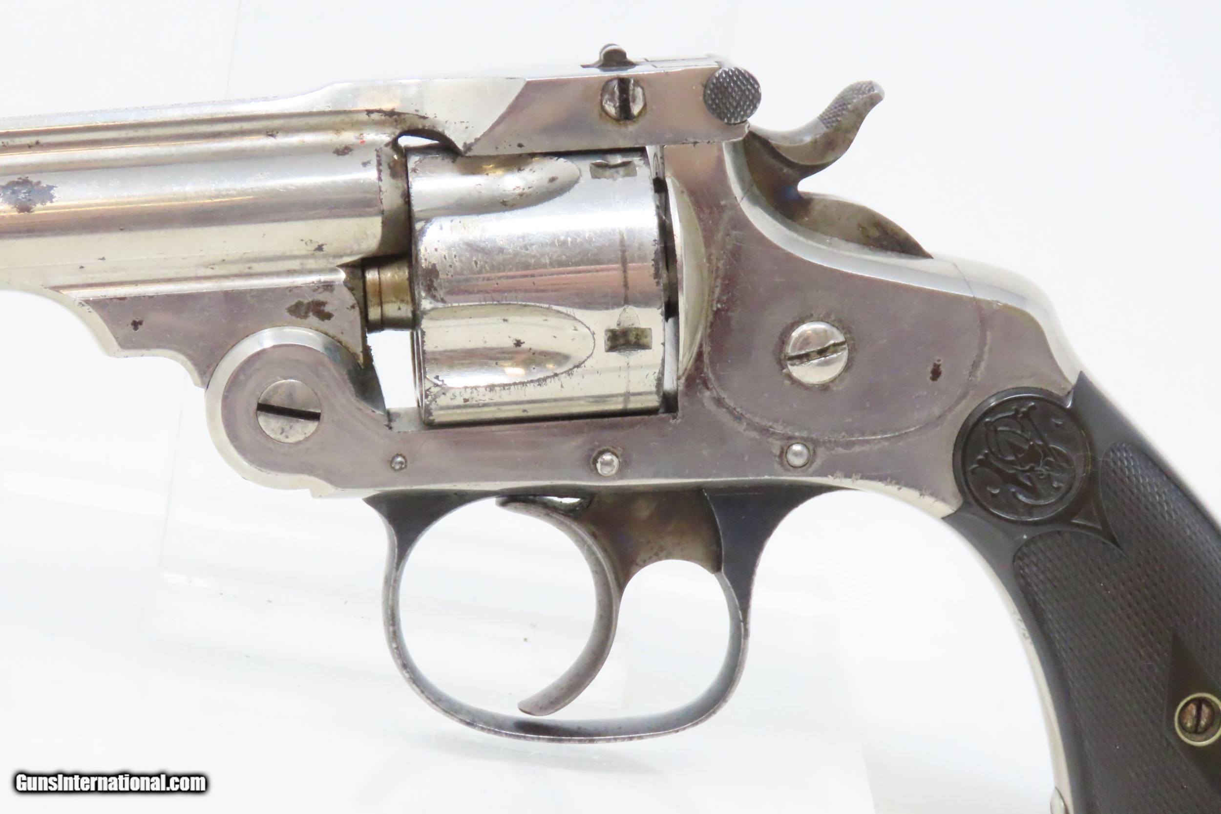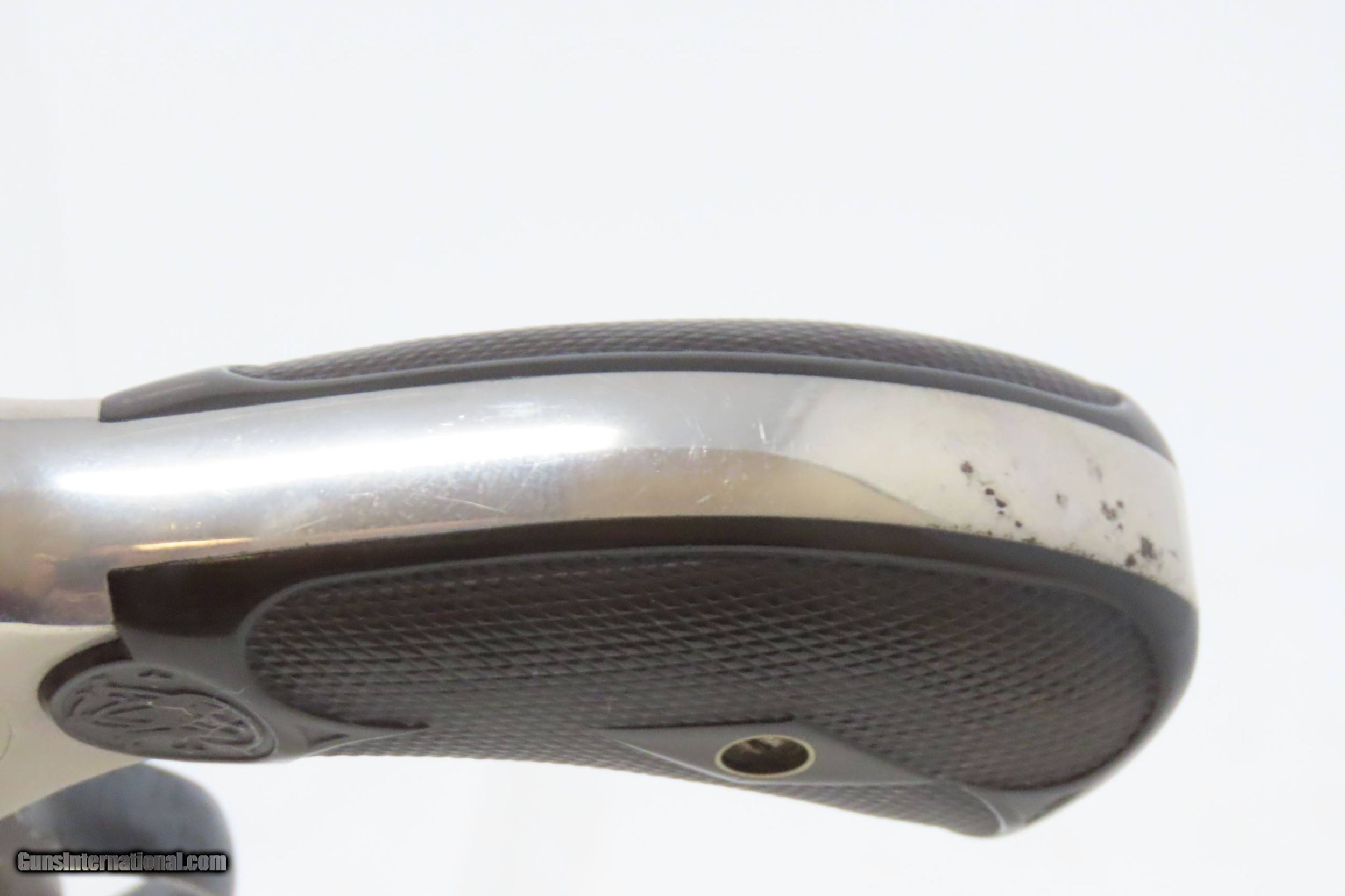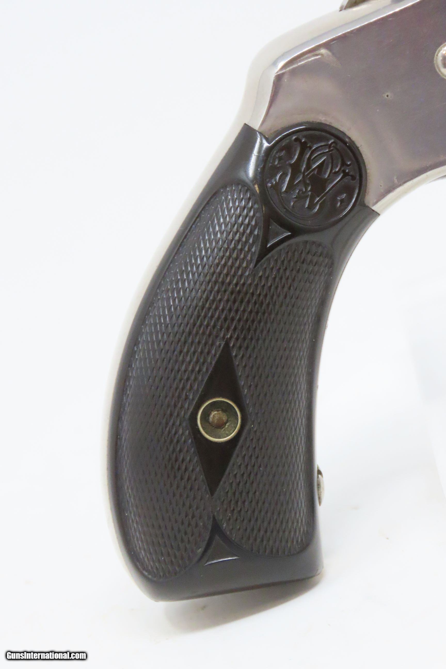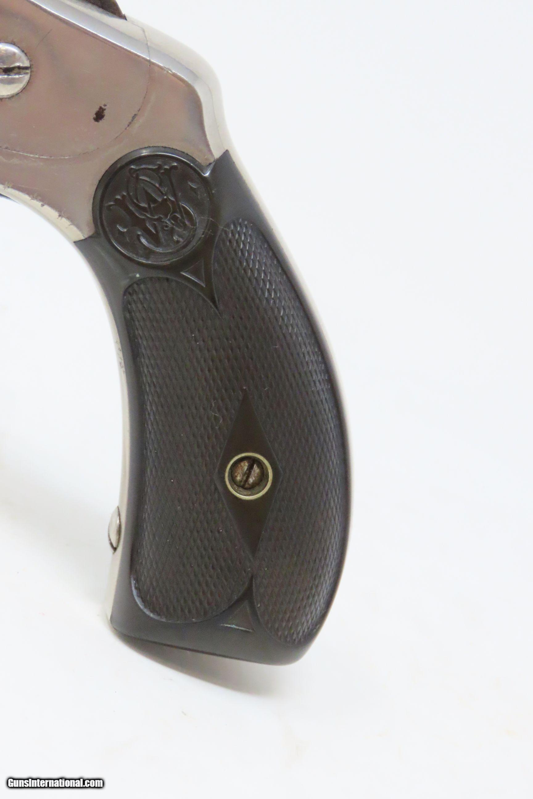 Description: SMITH & WESSON .32 Caliber 4th Model DOUBLE ACTION Top Break C&R REVOLVER Turn of the Century .32 S&W Conceal & Carry Revolver Here we present a C&R Smith & Wesson Double Action Top Break Revolver in .32 S&W, made circa the turn of the Century in Springfield, Massachusetts. The 4th model was made between 1883 and 1909 with a total of roughly 240,000 revolvers made. The fourth model ran from serial number 43,406 and continued to about 282,999. Improvements in the 4th model were in the trigger guard, and internal changes in the shape of the sear and the cylinder stop. At the end of the 4th model production about 10,000 guns of the 5th model used some parts from both. Additional barrel lengths of 8″ and 10″ were offered and sold. This would have been a nice gun to wear in a small belt holster or slip into a pocket for self-defense. Smith & Wesson, then as now, were known for their high quality revolvers. The overall condition is fine. Original finish. Excellent action. Semi-bright bore with light spots of pitting. Legible markings. Numbers match. Both grips are in fine shape with less than average wear from handling. This firearm is classified as a Curio & Relic. Barrel is 3 inches. Caliber: .32 S&W Overall condition as seen in photos. Very Fast. Very Safe. FREE SHIPPING. Will need to be sent to your local FFL or C&R licensee. This firearm is classified as a Curio & Relic. Guaranteed AUTHENTIC & Includes CERTIFICATE OF AUTHENTICITY. ancestryguns $1050 #220500 SOLD Curio/Relic: Yes |