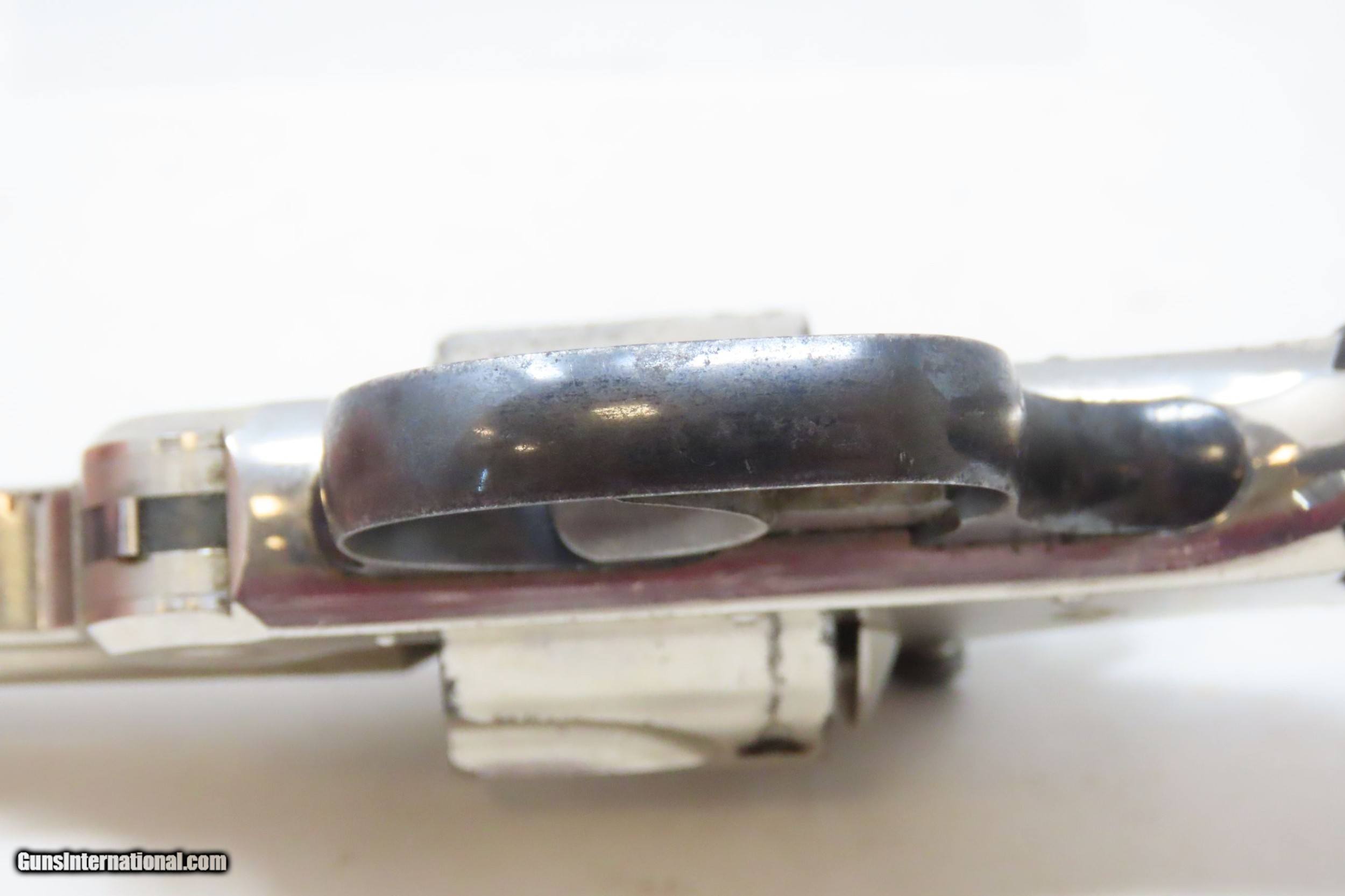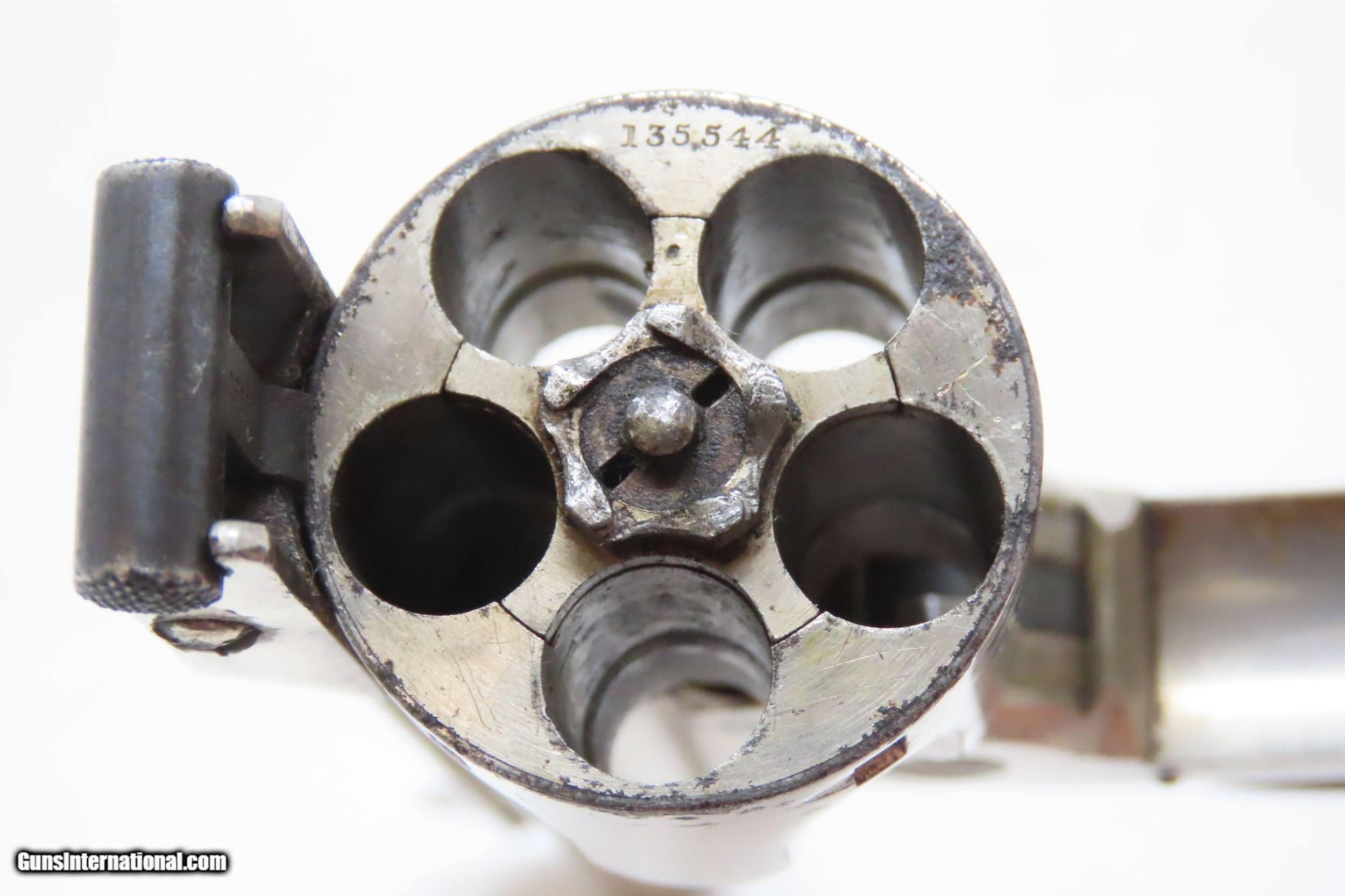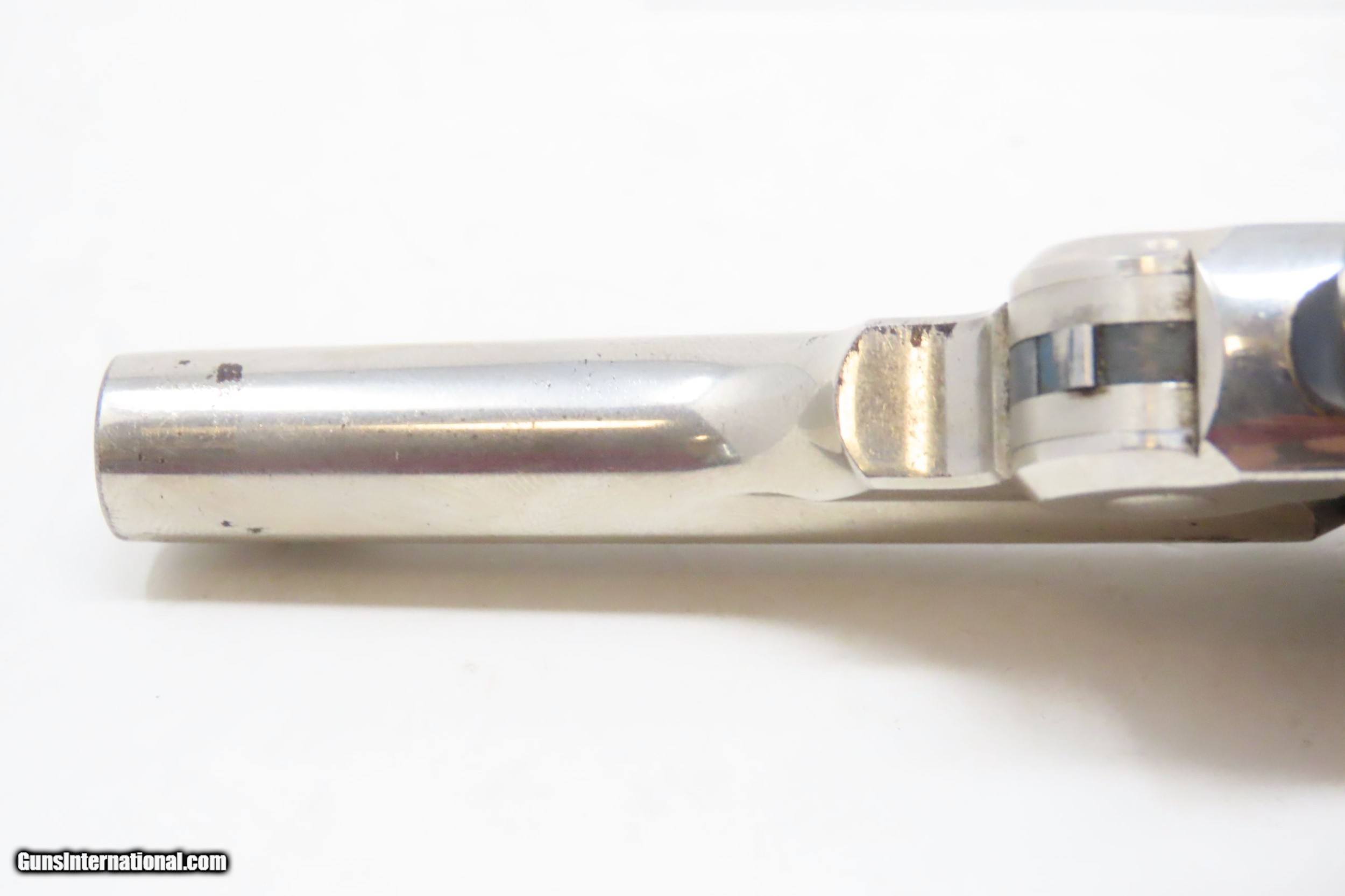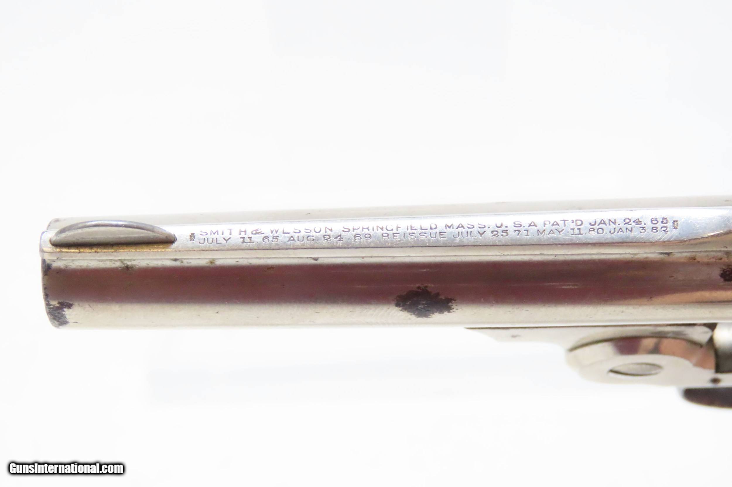 Description: SMITH & WESSON .32 Caliber 4th Model DOUBLE ACTION Top Break C&R REVOLVER Turn of the Century .32 S&W Conceal & Carry Revolver Here we present a C&R Smith & Wesson Double Action Top Break Revolver in .32 S&W, made circa the turn of the Century in Springfield, Massachusetts. The 4th model was made between 1883 and 1909 with a total of roughly 240,000 revolvers made. The fourth model ran from serial number 43,406 and continued to about 282,999. Improvements in the 4th model were in the trigger guard, and internal changes in the shape of the sear and the cylinder stop. At the end of the 4th model production about 10,000 guns of the 5th model used some parts from both. Additional barrel lengths of 8″ and 10″ were offered and sold. This would have been a nice gun to wear in a small belt holster or slip into a pocket for self-defense. Smith & Wesson, then as now, were known for their high quality revolvers. The overall condition is fine. Original finish. Excellent action. Semi-bright bore with light spots of pitting. Legible markings. Numbers match. Both grips are in fine shape with less than average wear from handling. This firearm is classified as a Curio & Relic. Barrel is 3 inches. Caliber: .32 S&W Overall condition as seen in photos. Very Fast. Very Safe. FREE SHIPPING. Will need to be sent to your local FFL or C&R licensee. This firearm is classified as a Curio & Relic. Guaranteed AUTHENTIC & Includes CERTIFICATE OF AUTHENTICITY. ancestryguns $1050 #220500 SOLD Curio/Relic: Yes |