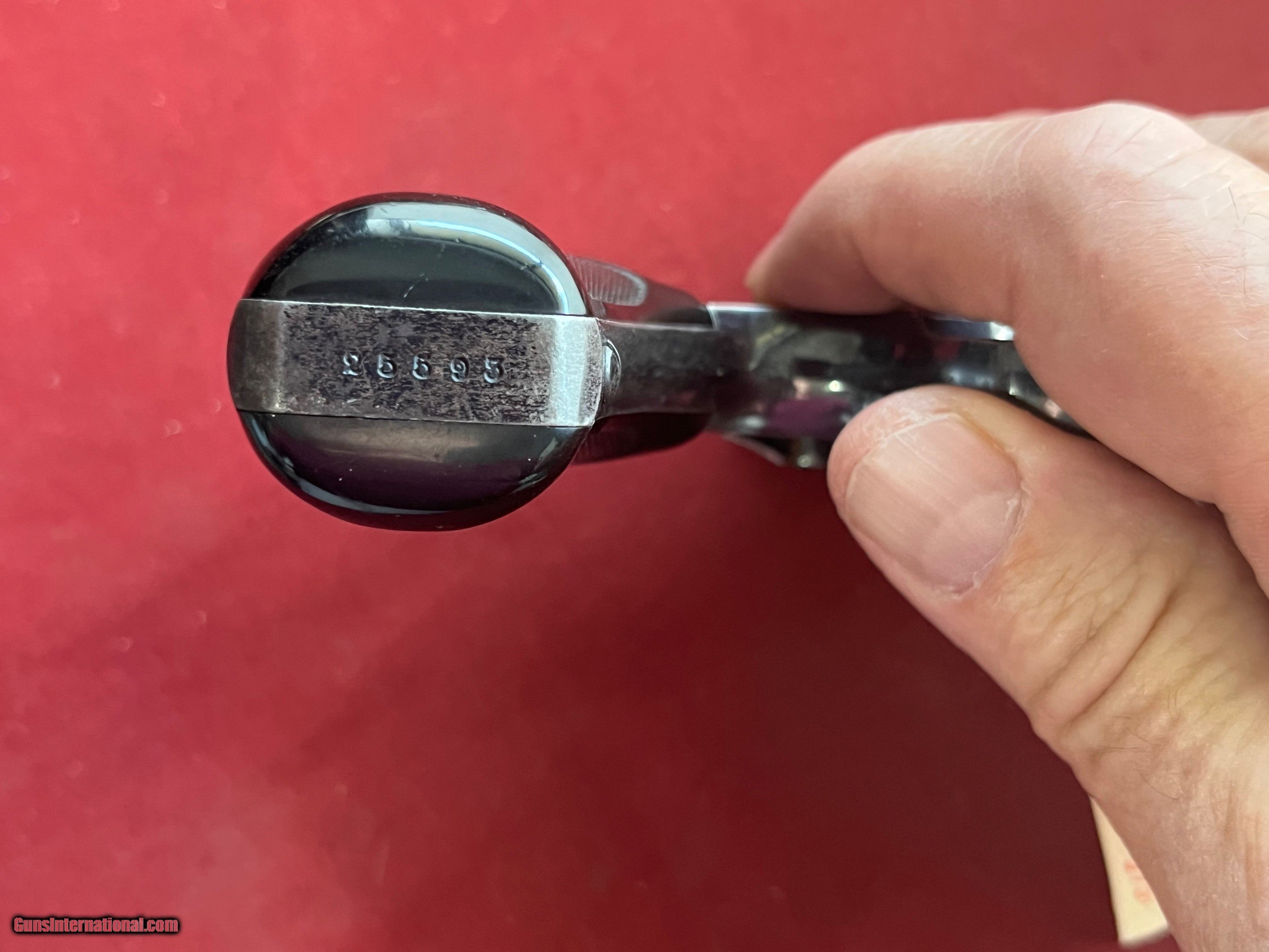 Description: SMITH & WESSON 32 HAND EJECTOR MODEL 1903 ,CALIBER 32 LONG , SER# 25593. 4 INCH BARREL WITH A VERY GOOD BRIGHT BORE. GOOD ORIGINAL BLUE FINISH WITH MORE WEAR ON ONE SIDE OF THE CYLINDER. CORRECT SOLID GRIPS. TIGHT ACTION THAT WORKS AND FUNCTIONS FINE. SMITH & WESSON 32 HAND EJECTOR MODEL 1903 CALIBER 32 LONG EASTERN BRANCH FIREARMS ADD 40.00 SHIPPING – NEXT DAY AIR SHIPPING ADD 50.00 SHIPPING – LONG GUNS GROUND OPTIONAL INSURANCE IS AVAILABLE AT 1.25 PER 100.00 Questions e-mail or call Glen at Eastern Branch Firearms 207-215-5021 TERMS – PLEASE READ BEFORE I DO NOT HAVE A LAYAWAY OPTION ( WE ACCEPT CREDIT CARDS ) -- I GET ALOT OF REQUEST FOR TRADES, I WOULD PERFER NOT TO DO TRADES ON MY INTERNET LISTINGS PAYMENT OPTIONS- We accept money orders, cashier’s checks , bank checks. sorry no personal checks. We accept all major credit cards please add 3% to the ’s cash discount price.(Shipping within the state of Florida - Florida Residents must pay sales tax) .Handguns and long guns do need to be shipped separate. PLEASE do not send payment via FED EX . USPS & UPS are fine. Thank you. We include a signed copy of our FFL with each firearm shipped. SAFTY NOTICE- Buyer is solely responsible for determining that a used gun is safe to shoot. The firearms offered have not been test fired but have been given a visual inspection only for purposes. It is a requirement that every used firearm is inspected by a qualified gunsmith before firing. By , the buyer agrees to hold seller harmless against damages, injury, or death caused by defective merchandise. RETURN POLICY- All firearms come with a 3-day non firing , non messing with ( turning srews ,taking apart,removing parts, scoping. firing, cleaning or messing with in anyway) inspection/return privilege.Inspection is based on a visual review of the gun to confirm the gun is in the condition stated. In the case of a return, buyer pays all shipping charges & if paid for with a credit card buyer absorbs the 3% credit card charges . So please ask questions BEFORE you bid. Thanks for Looking and Good Luck!! U.S. sales only, no exports…this includes antiques. I will ship to third party for exporting SOLD Curio/Relic: Yes |