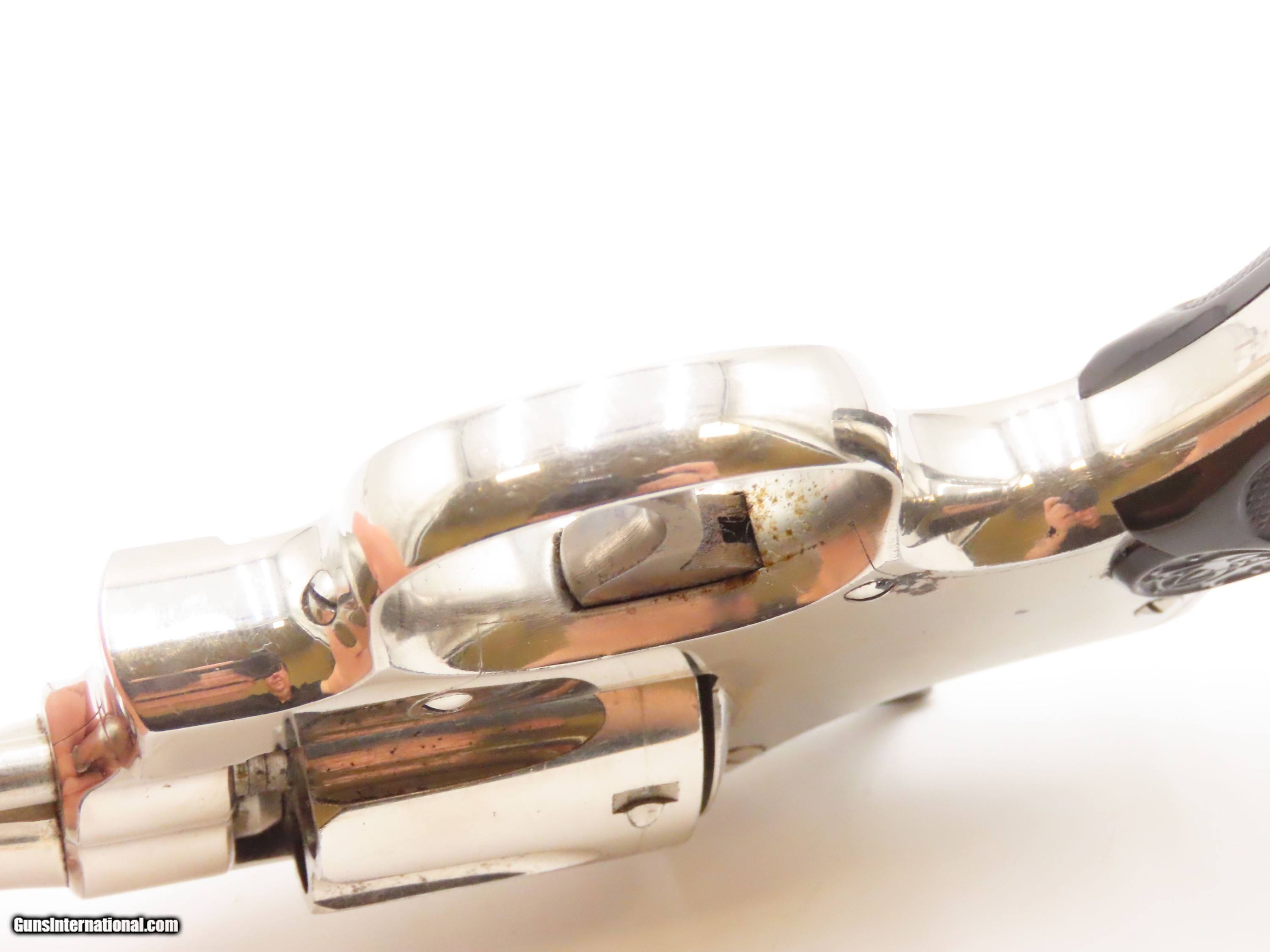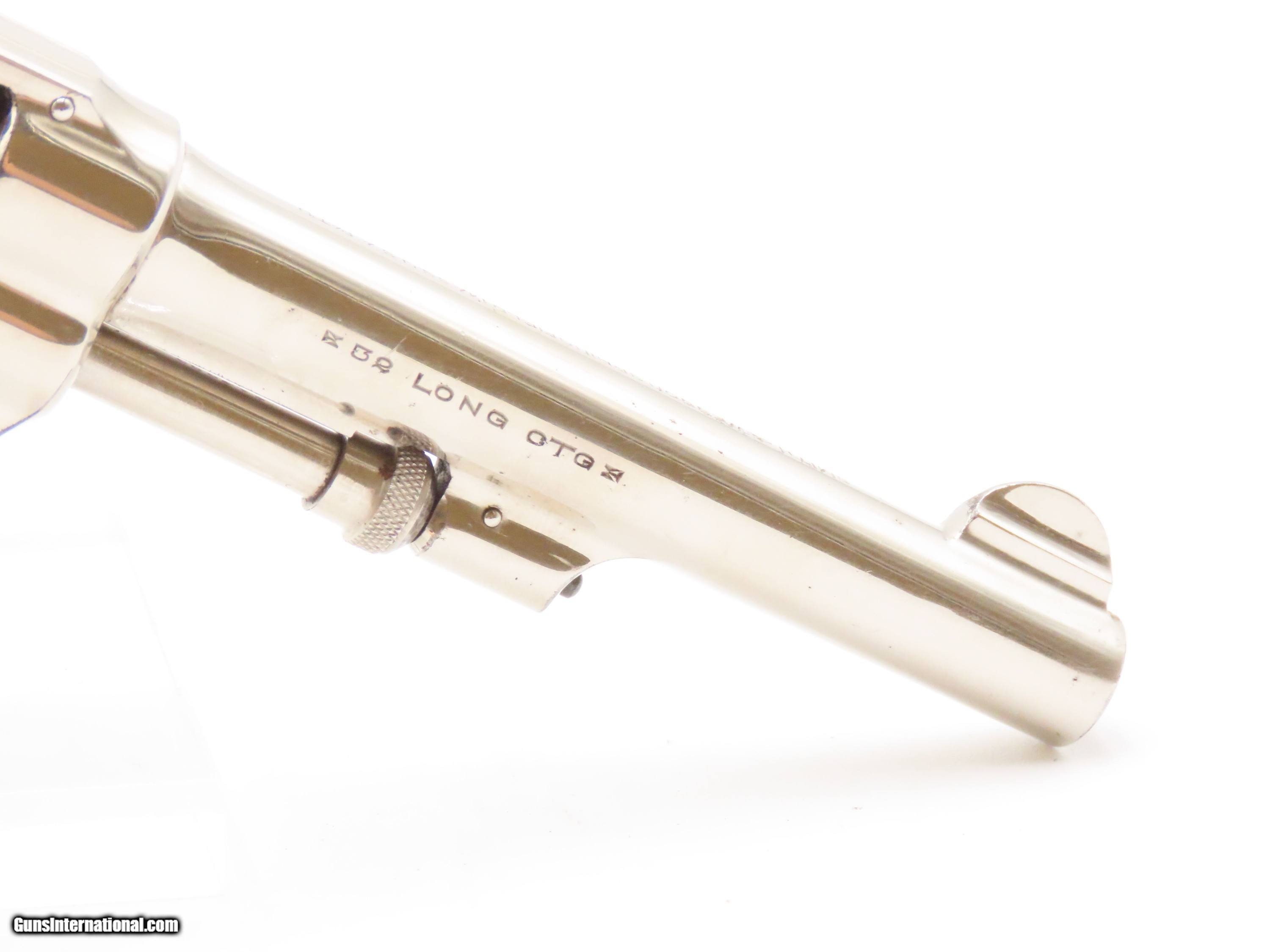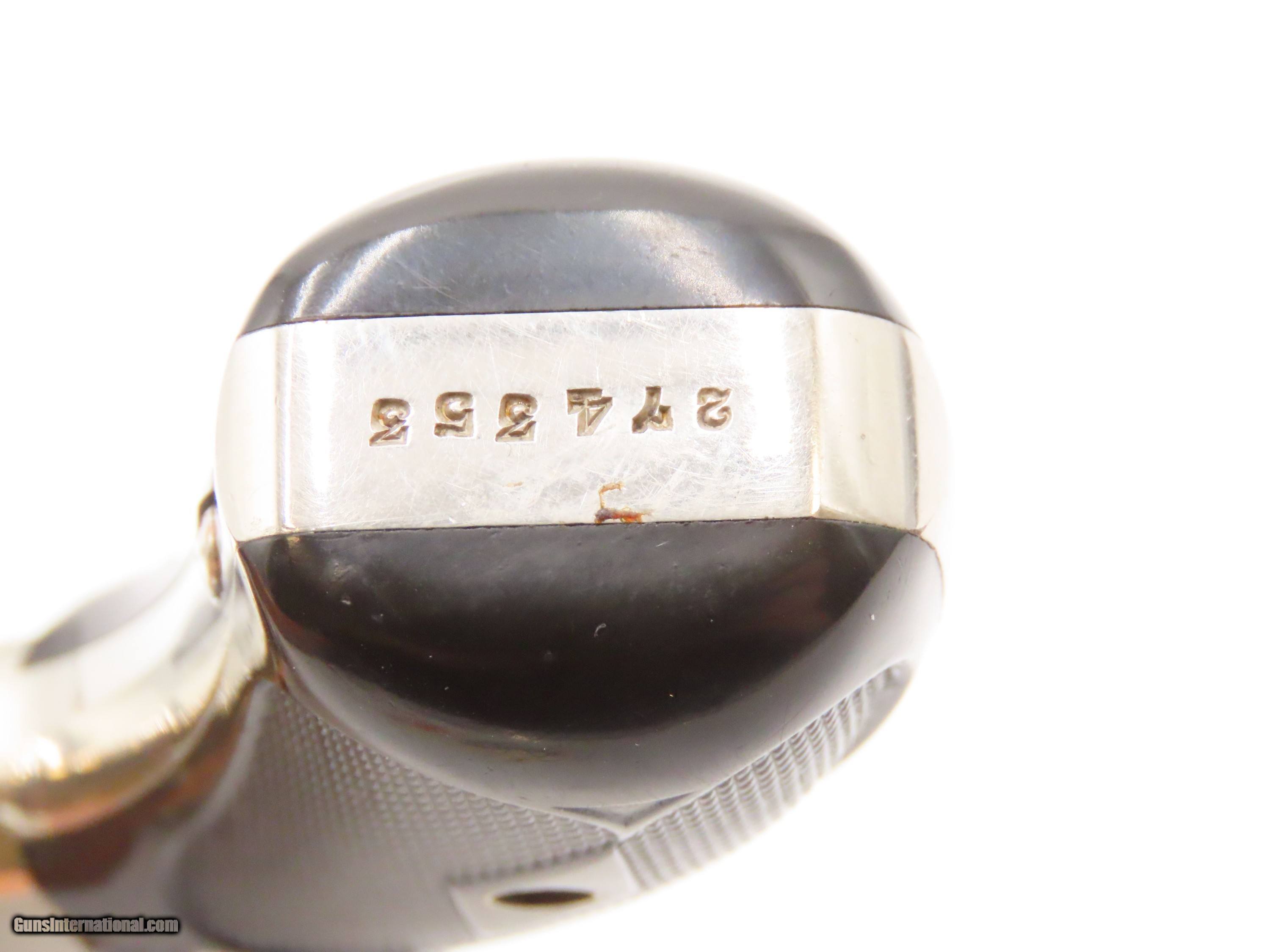 Description: SMITH & WESSON .32 Hand Ejector SELF DEFENSE Revolver C&R ROARING TWENTIES Smith & Wesson’s First “Swing Out” Cylinder Revolvers Here we present a C&R Smith & Wesson Hand Ejector 3rd Model Revolver made circa the late 1910s into the Roaring Twenties era with a production run between 1917 and 1942 in Springfield, Massachusetts. The serial number range of these ran from approximately 263,001 to 536,684. The Regulation Police model was manufactured during this same production run with serial numbers running concurrently with those of the .32 Hand Ejector model. The “Hand Ejector” models were the first time S&W made a revolver with a swing-out cylinder. Interestingly, there is no cylinder latch, but the action opens by pulling forward on the exposed portion of the cylinder pin. This frees the spring tension and allows the cylinder to swing free. Another novel feature of this model is the cylinder stop location, which is located in the top of the frame over the cylinder. This revolver is chambered for .32 Long cartridges, has a 6-shot fluted cylinder and was offered with 3.25", 4.25" and 6" long barrels. Available with a round or square butt, it also came with checkered hard rubber grips and was either blued or nickel-plated. Factory installed target sights were available by special order. The overall condition is fine. Bright, original nickel finish. Excellent, tight action. The bore is shiny bright with strong rifling. Markings are legible. Both grips are fine. Numbers match. Own the original! This firearm is classified as a Curio & Relic. Barrel is 4-1/4 inches. Caliber: .32 Long Overall condition as seen in photos. Very Fast. Very Safe. FREE SHIPPING. Will need to be sent to your local FFL or C&R licensee. This firearm is classified as a Curio & Relic. Guaranteed AUTHENTIC & Includes CERTIFICATE OF AUTHENTICITY. ancestryguns $1200 #255124 SOLD Curio/Relic: Yes |