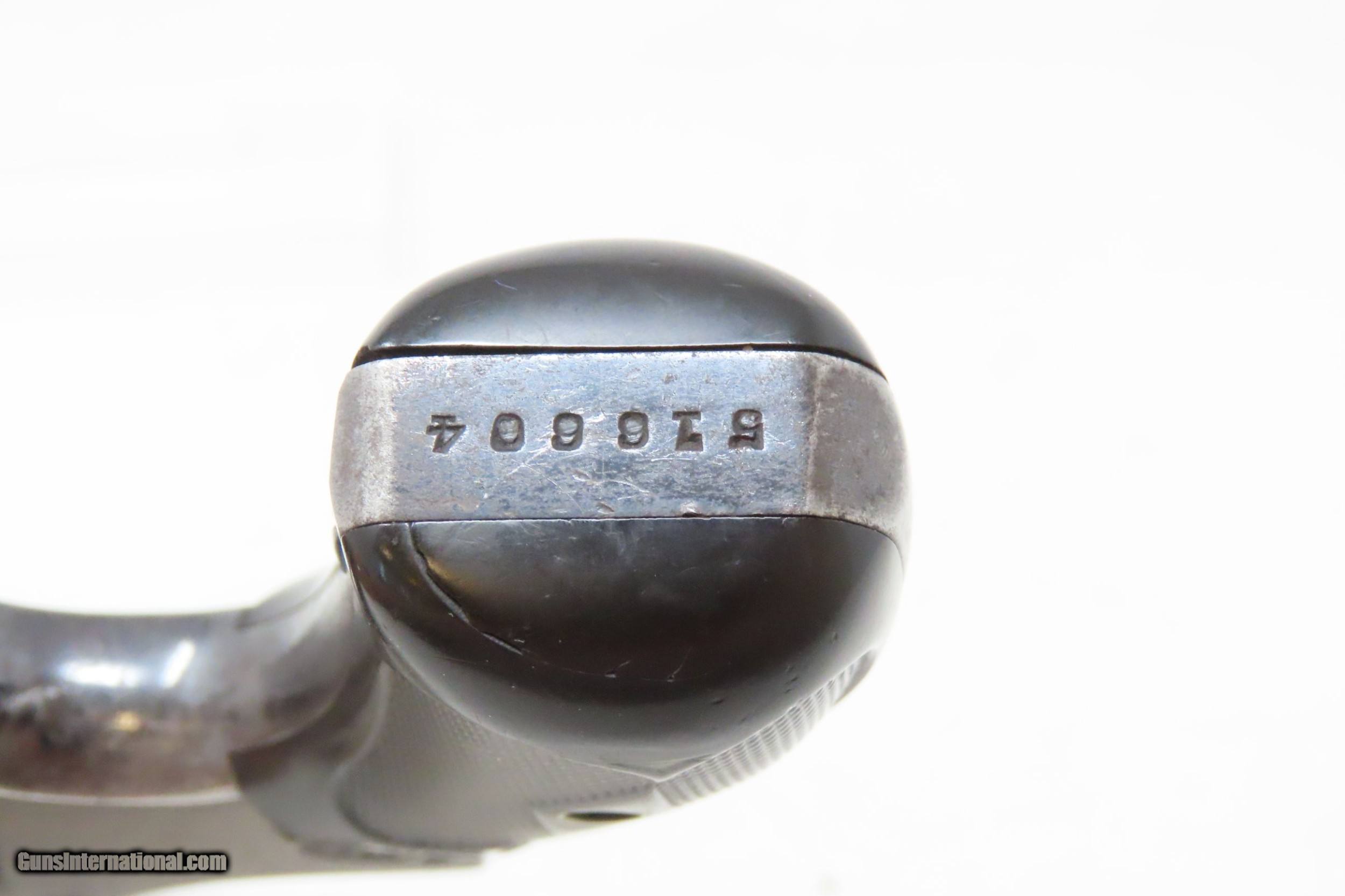 Description: SMITH & WESSON .32 Long Caliber “Hand Ejector” SELF DEFENSE Revolver C&R Smith & Wesson’s First “Swing Out” Cylinder Revolvers Here we present a C&R Smith & Wesson .32 S&W Hand Ejector 3rd Model Revolver manufactured between 1917 and 1942 in Springfield, Massachusetts. The serial number range of these ran from approximately 263,001 to 536,684. The Regulation Police model was manufactured during this same production run with serial numbers running concurrently with those of the .32 Hand Ejector model. The “Hand Ejector” models were the first time S&W made a revolver with a swing-out cylinder. Interestingly, there is no cylinder latch, but the action opens by pulling forward on the exposed portion of the cylinder pin. This frees the spring tension and allows the cylinder to swing free. Another novel feature of this model is the cylinder stop location, which is located in the top of the frame over the cylinder. Chambered for .32 S&W Long cartridge, has a 6-shot fluted cylinder and offered with 3.25", 4.25" and 6" long barrels. Available with a round or square butt, it also came with checkered hard rubber grips and was either blued or nickel-plated. Factory installed target sights were available by special order. The overall condition is near fine. Original finish. Excellent action. Bright bore. Both grips show less than average handling wear and remain firmly seated. Sharp markings. Numbers match. This firearm is classified as a Curio & Relic. Barrel is 6 inches. Caliber: .32 Long Overall condition as seen in photos. Very Fast. Very Safe. FREE SHIPPING. Will need to be sent to your local FFL or C&R licensee. This firearm is classified as a Curio & Relic. Guaranteed AUTHENTIC & Includes CERTIFICATE OF AUTHENTICITY. ancestryguns $1350 #220757 SOLD Curio/Relic: Yes |