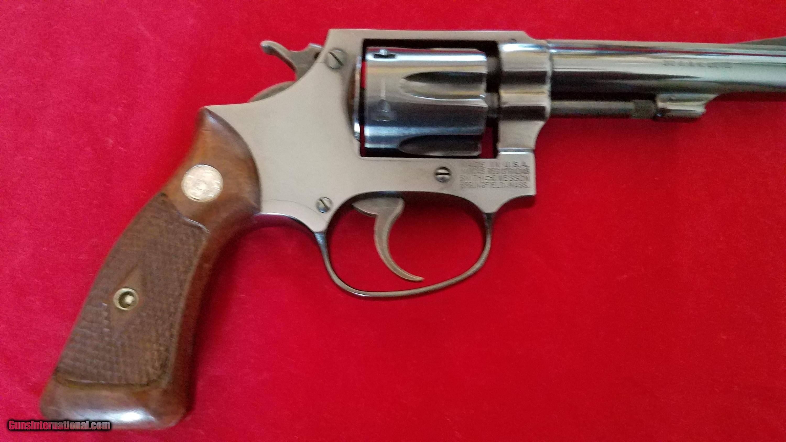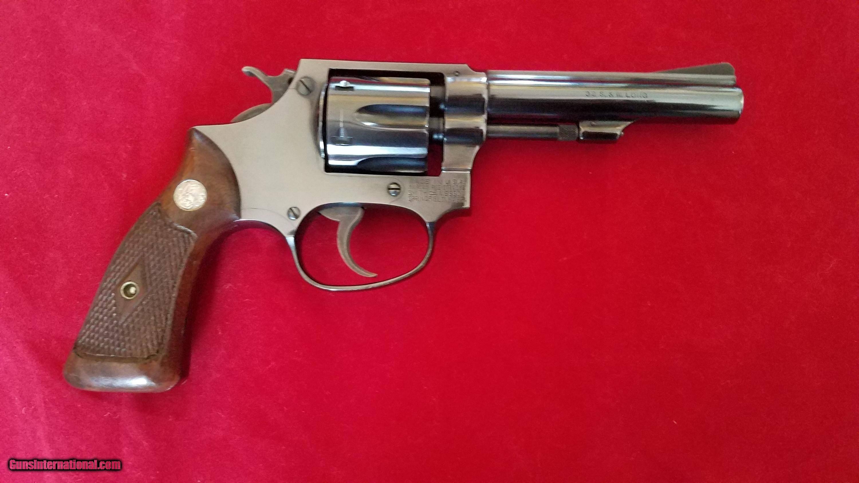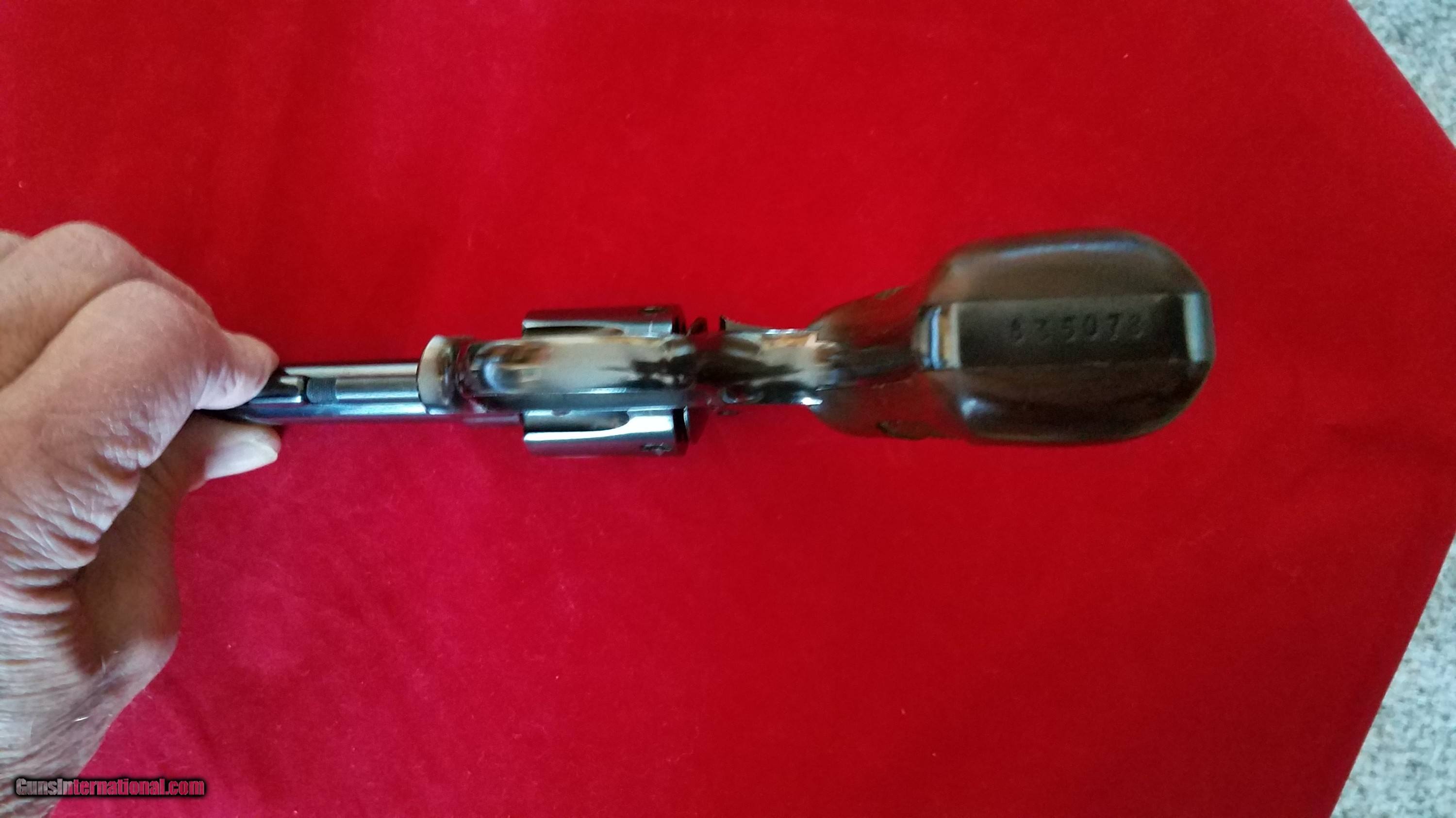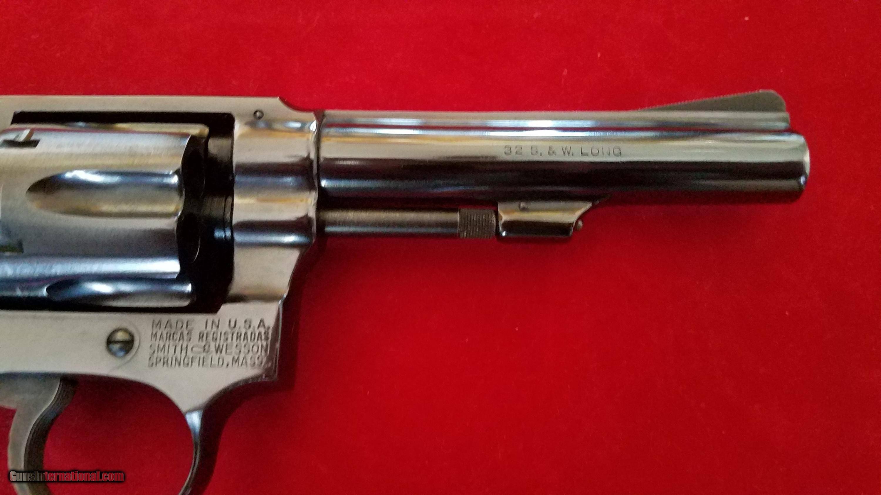 Description: Smith & Wesson .32 Regulation Police pre model 31. .32 S&W Long. 4in checkered walnut grips. Like new with a few hadling marks and light cylinder drag. 97% finish. Matching numbered grips. Original box. With letter. Shipped 1956 to Stoeger Arms. Appears to be unfired. Has warranty card in box dated April 15, 1956 Shipping $50. Cashiers check, USPSMO, Personal check with 10 day hold. SOLD Handgun Caliber: .32 S&W Long (.32 Colt New Police) Manufacturer: Smith & Wesson Model: .32 Regulation Police Barrel Length: 4in Condition: Excellent Metal Condition: Excellent Wood Condition: Excellent Bore Condition: Excellent |