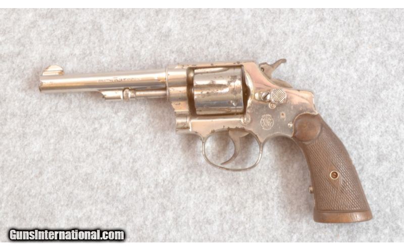 Description: Nice older firearm. SOLD Curio/Relic: Yes Caliber Info: .32 S & W Long. Chambers: Six shot cylinder. Metal Condition: Good but with wear and some chrome has worn off. Wood Condition: Good but worn. Bore Condition: Clear, but could use a cleaning. Barrels: 4 inches. Triggers: Factory. Stock: Wood with checkered grips. Weight: 1 lbs. 4 oz. Sights: Groove rear and blade front. Item Location: Lone Tree, CO |