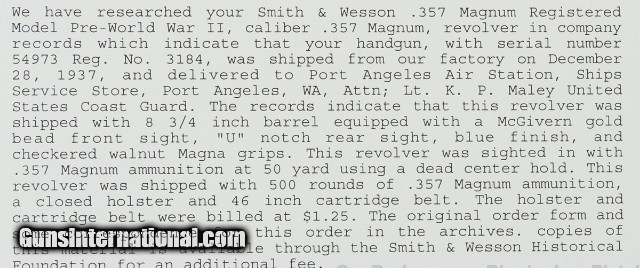 Description: Smith & Wesson .357 Registered Magnum 99% 8 3/4" - Used SOLD |