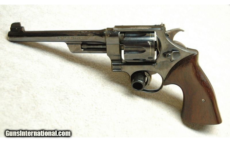Description: Smith & Wesson .38/44 Outdoorsman Revolver. Good condition, some finish wear, few areas of light corrosion. Pre-war revolver has humpback hammer and smooth wood grips. A good choice for collectors. .38 Special SOLD Chambers: Revolver Metal Condition: Good Wood Condition: Very good Bore Condition: Bright Barrels: 6 1/2 Triggers: Double and single action Butt Pad: Wood grips Sights: Iron sights Item Location: La Vista, NE |