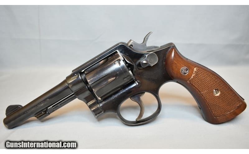 Description: This Smith & Wesson .38 S&W Special is in very good condition for its age. This four screw gun was made after 1955 and has SN C387155. It has some bluing loss around the muzzle and frame. Grips show some wear, primarily around the edge of the checkering. Nice looking gun at a good price. .38 S&W Special SOLD Chambers: .38 with 6 round cylinder Metal Condition: Very Good Wood Condition: Very Good Bore Condition: Very Good Barrels: 4 Weight: 2 Sights: Fixed Item Location: Kansas City, KS |