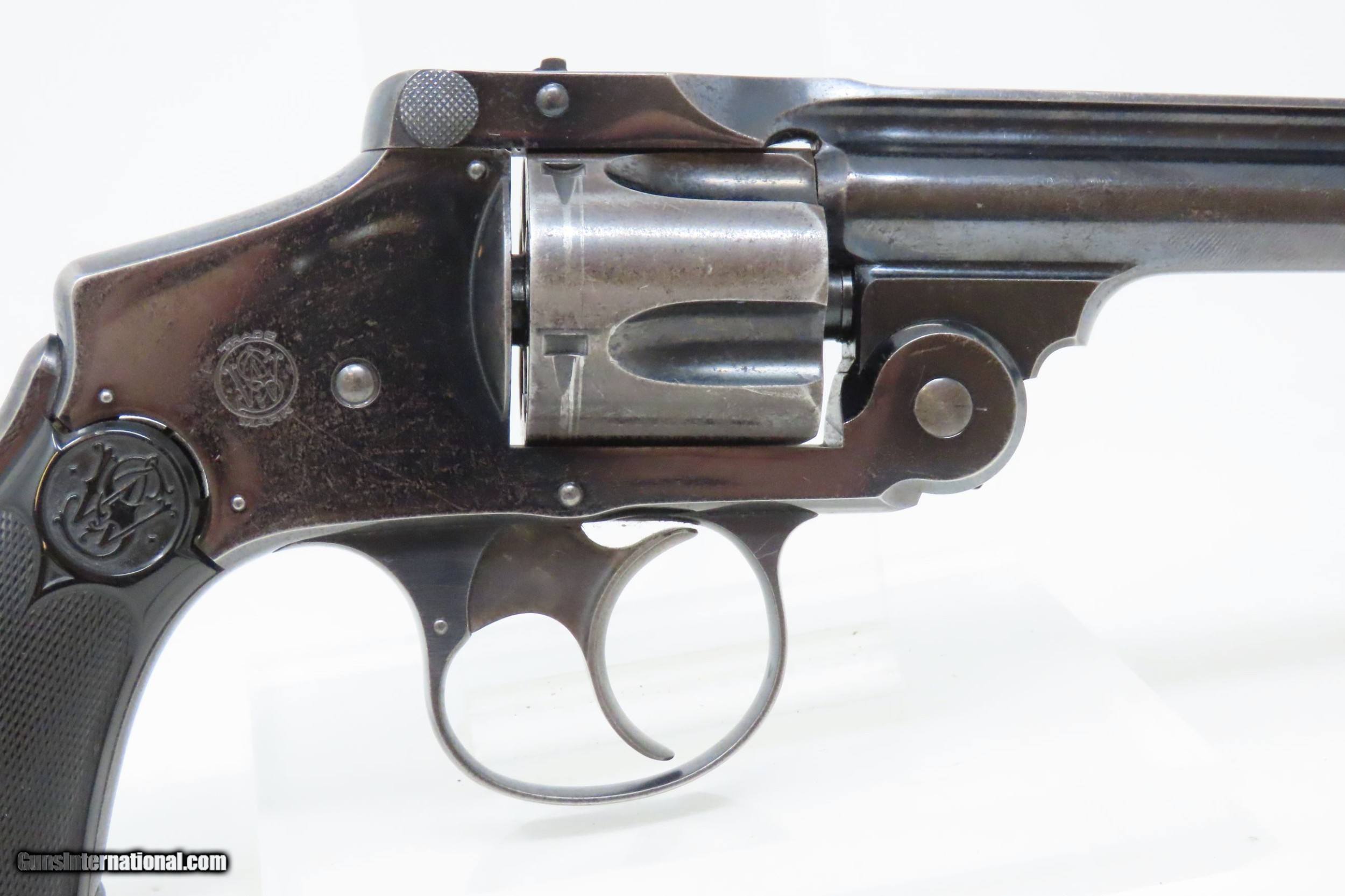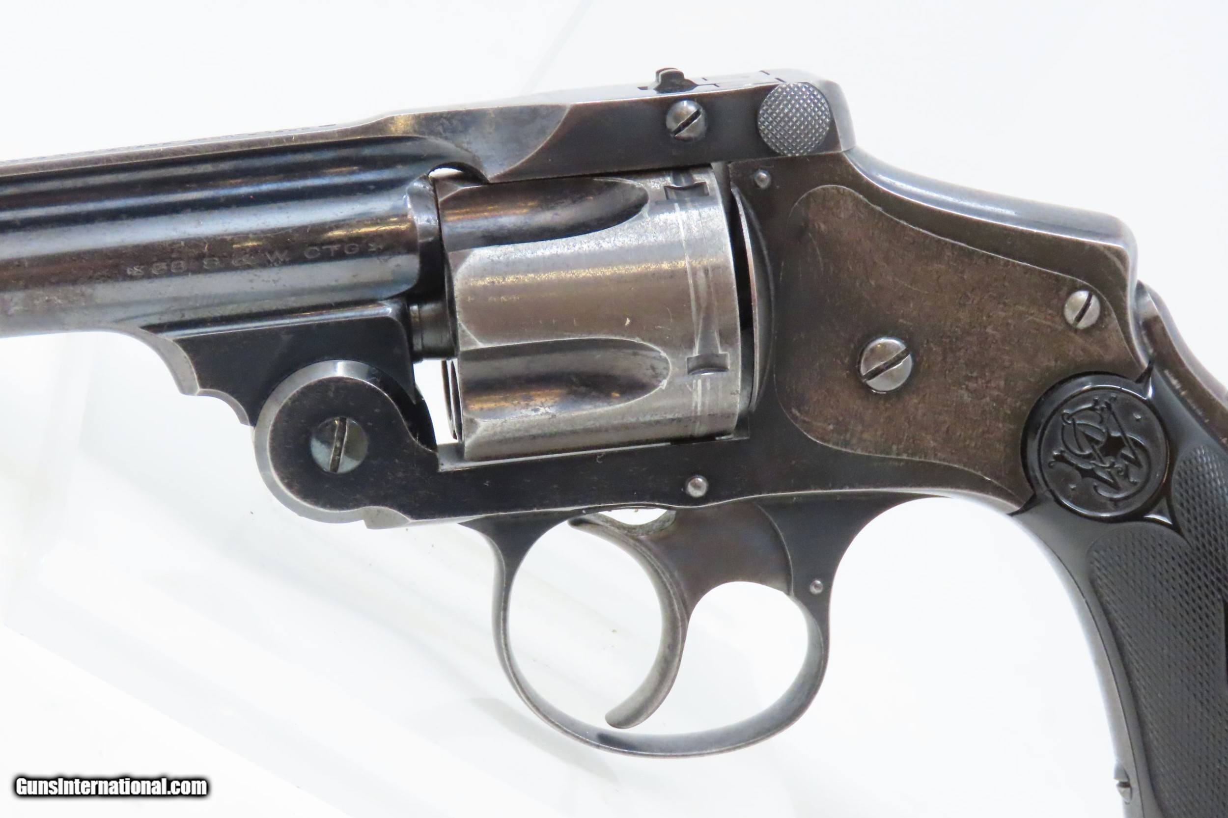 Description: SMITH & WESSON .38 SAFETY HAMMERLESS 4th Model C&R Double Action REVOLVER Turn of the Century TOP BREAK Revolver! Here we present a C&R 4th Model Smith & Wesson .38 S&W Top Break Double Action Safety Hammerless C&R Revolver, made circa 1898-1907 in Springfield, Massachusetts with a serial number range of 116003 through 220000. The Smith & Wesson Safety Hammerless models were produced from 1887 (1888 for the 32) to just before World War II. They were chambered in either .32 S&W with a six shot cylinder or .38 S&W with a five-shot cylinder. They were most often produced with a 2-inch, 3-inch, 3.5-inch, or 4-inch barrel. But some 4-1/2”, 5” and 6" barreled versions are known to exist. This revolver was made to be a simple, compact and reliable firearm that one could carry in a pocket or a holster around the turn of the 20th Century. This revolver features an internal hammer design to remove risk of snagging or stopping the action. There is a grip safety built into the back of the grip frame. The frame is a top-break design that activates the automatic ejector. These are very nice features from the turn of the 20th Century! They were known as "The New Departure" to reflect the company's new approach to designing revolvers. With gangsters, and career criminals running rampant, this example would have been the “pocket advantage” a person needed. The overall condition is fine. Bright bore. Excellent action. This example has preserved its original finish. Both grips are in good shape (the left grip has a small repaired crack at the top). Numbers match and the markings are sharp. This firearm is classified as a Curio & Relic. Barrel is 3-1/4 inches. Caliber: .38 S&W Overall condition as seen in photos. Very Fast. Very Safe. FREE SHIPPING. Will need to be sent to your local FFL or C&R licensee. This firearm is classified as a Curio & Relic. Guaranteed AUTHENTIC & Includes CERTIFICATE OF AUTHENTICITY. ancestryguns $ 1100 #217459 SOLD Curio/Relic: Yes |