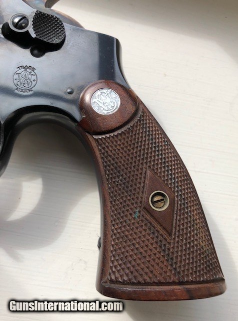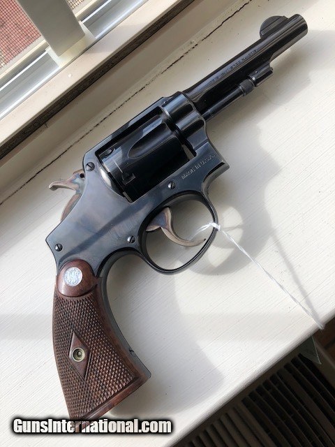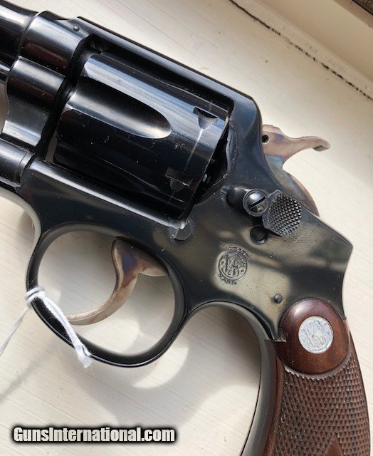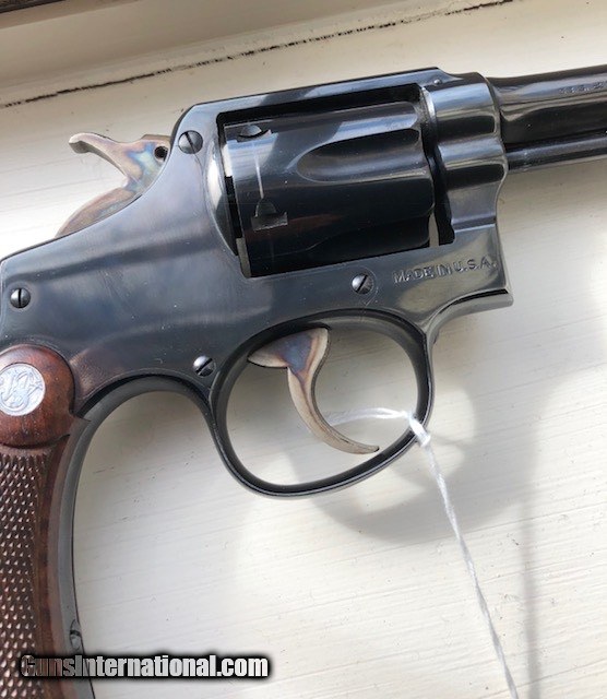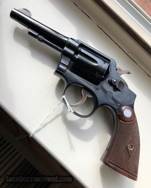 Description: 99.8% Orignal blue finish, 4" barrel, Manufactured 1935-40 time frame, Original matching grips, NICE! Perfect mechanics Would be hard to find a nicer condition example. $25.00 shipping VISA/MC Add 4% SOLD Curio/Relic: Yes Manufacturer: Smith & Wesson Model: M&P Caliber Info: 38 Special |
