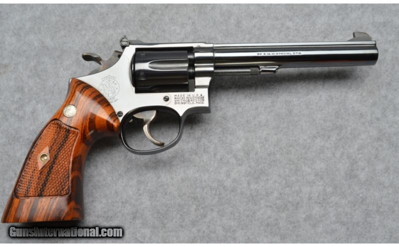Description: Pride and Joy in this Smith & wesson .38 spec.Crisp trigged, tight lock-up and flawless bluing and gripps don't wait on this one won't be here long. SOLD Caliber Info: .38 Special. Chambers: 6 Round cylinder. Metal Condition: Like New. Wood Condition: Like New Great color and wood grain pattern. Bore Condition: Like New Bright. Barrels: 6 Inch. Triggers: Single for double and single action. Wide ribbed target trigger. Stock: Factory target grips with diamond pattern and S&W medallion. Weight: 2 Pounds 6 Ounces. Sights: Factory adjustable rear dovetail ribbing to ramped front Extras: With Soft Case. Item Location: Noblesville, IN |