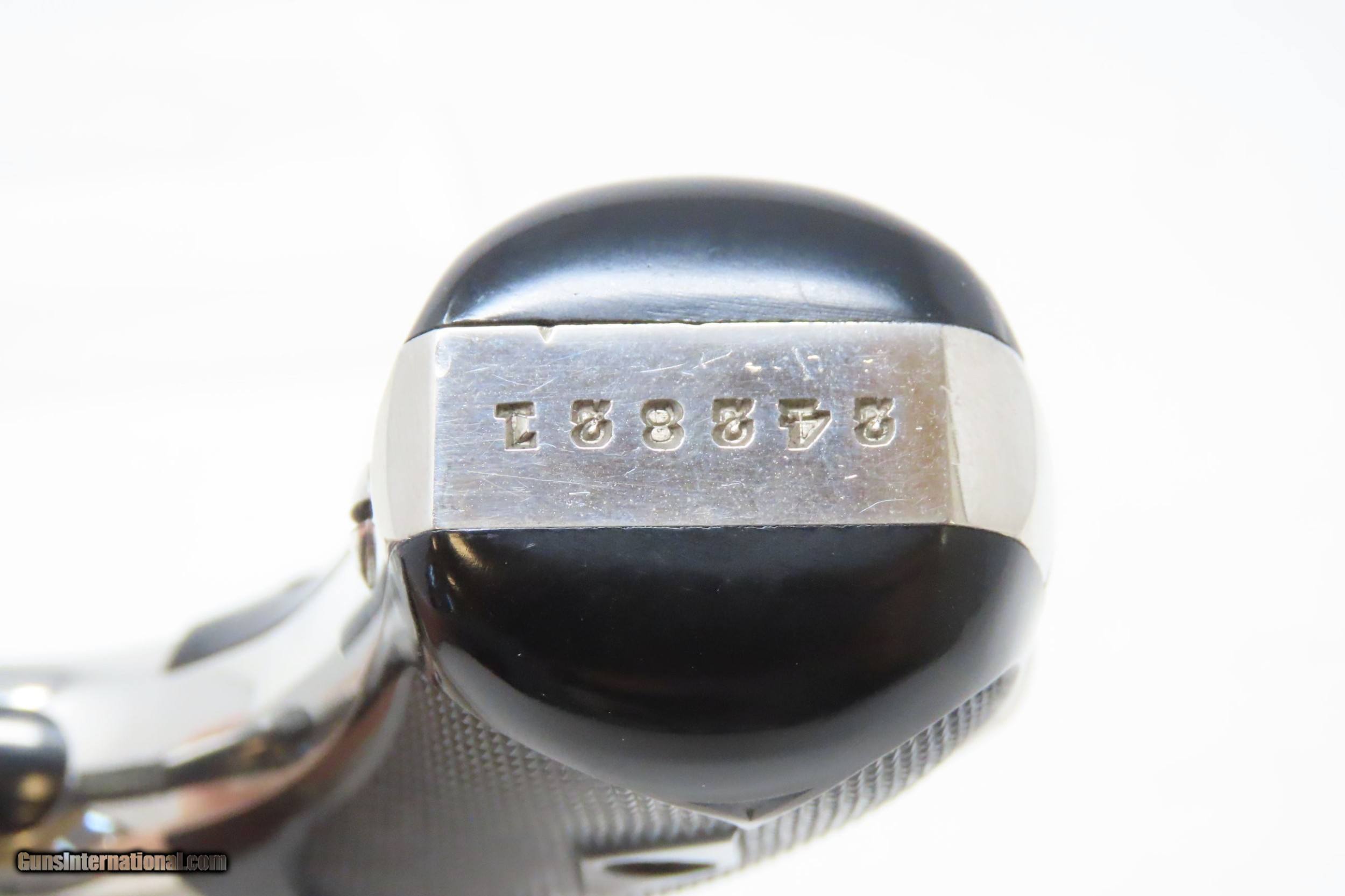 Description: SMITH & WESSON 3rd Model .32 S&W SAFETY HAMMERLESS Six-Shot C&R Revolver Smith & Wesson’s “NEW DEPARTURE” w/NICKEL FINISH Here we present a C&R 3rd Model Smith & Wesson .32 Caliber Safety Hammerless Revolver, made between 1909 and 1937 in Springfield, Massachusetts with a serial number range of 170000 through 242981. The Smith & Wesson Safety Hammerless models were produced from 1887 (1888 for the 32) to just before World War II. They were chambered in either .32 S&W with a six shot cylinder or .38 S&W with a five-shot cylinder. They were most often produced with a 2-inch, 3-inch, or 3.5-inch barrel. But some 6" barreled versions are known to exist. This revolver was made to be a simple, compact and reliable firearm that one could carry in a pocket or a holster around the turn of the 20th Century. This revolver features an internal hammer design to remove risk of snagging or stopping the action. There is a grip safety built into the back of the grip frame. The frame is a top-break design that activates the automatic ejector. These are very nice features from the turn of the 20th Century! They were known as "The New Departure" to reflect the company's new approach to designing revolvers. These were petite and handy little guns that chambered 5 cartridges, perfect for the pocket and enough to get out of most scrapes. With gangsters, and career criminals running rampant, this example would have been the “pocket advantage” a person needed. The overall condition is good. Original nickel finish preserved. Bright bore. The action does not function. Excellent grips. Sharp markings. The numbers match. This firearm is classified as a Curio & Relic. Barrel is 3 inches. Caliber: .32 S&W Overall condition as seen in photos. Very Fast. Very Safe. FREE SHIPPING. Will need to be sent to your local FFL or C&R licensee. This firearm is classified as a Curio & Relic. Guaranteed AUTHENTIC & Includes CERTIFICATE OF AUTHENTICITY. ancestryguns $1100 #217202 SOLD Curio/Relic: Yes |