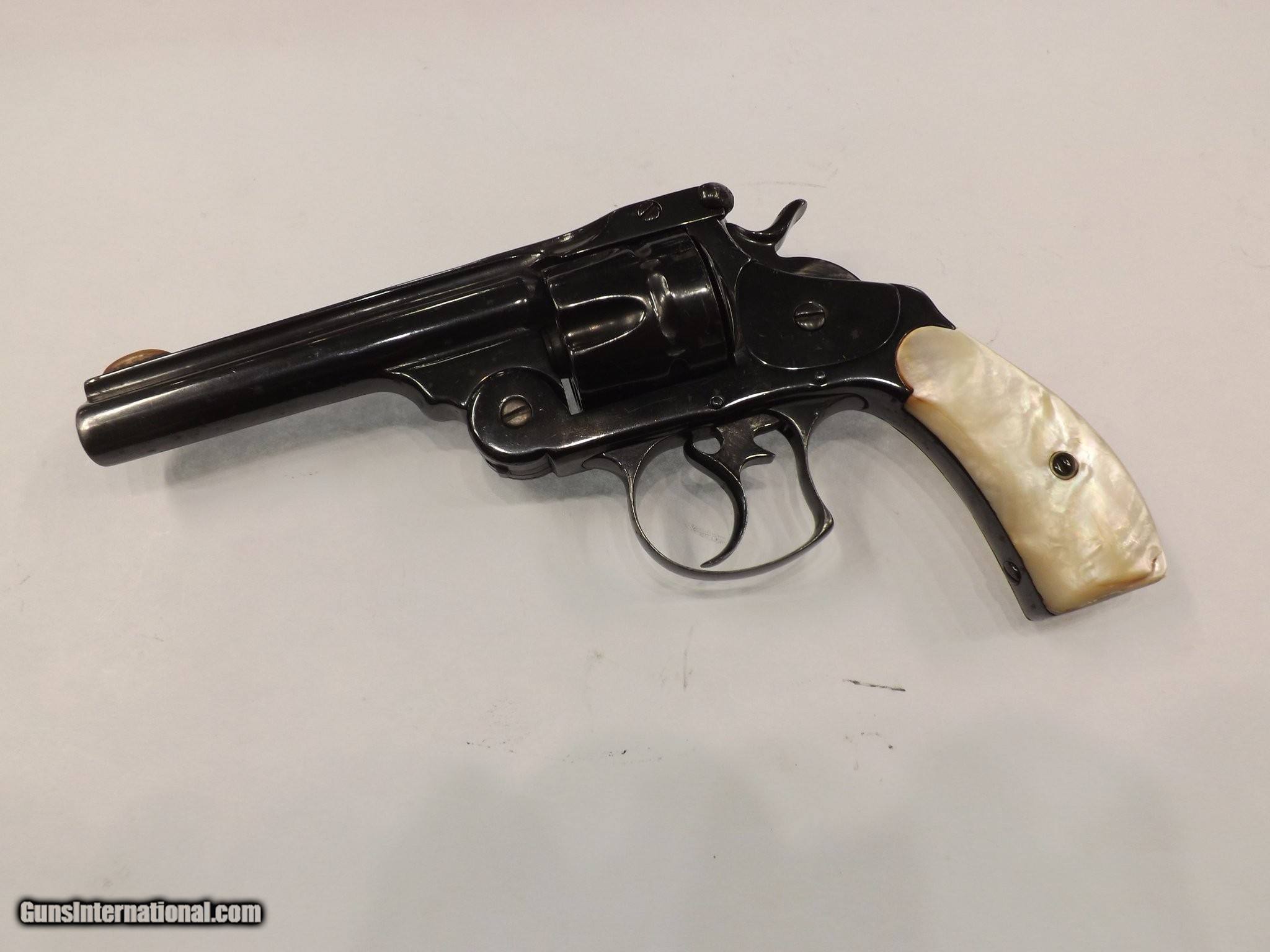 Description: Guns Listing ID: 594183 THIS IS A SMITH & WESSON 44 DOUBLE ACTION FIRST MODEL REVOLVER CHAMBERED IN RUSSIAN. IT FEATURES 4.625 IN BARREL THATS HAS LIKELY BEEN SHORTENED AND A NEW BRASS FRONT SIGHT ADDED. IT HAS BEEN REBLUED AND HAS PEARL GRIPS. THE ACTION IS VERY TIGHT AND TIMES UP VERY WELL. THIS IS VERY CLEAN EXAMPLE OF A REFINISHED 130 YEAR OLD GUN. Manufacturer: SMITH & WESSON Model: 44 DOUBLE ACTION FRONTIER FIRST MODEL Caliber Info: .44 RUSSIAN Condition: Used - Non-Certified Barrels: 4.625" BARREL Action: REVOLVER Price: $1,249.99 Contact Seller |