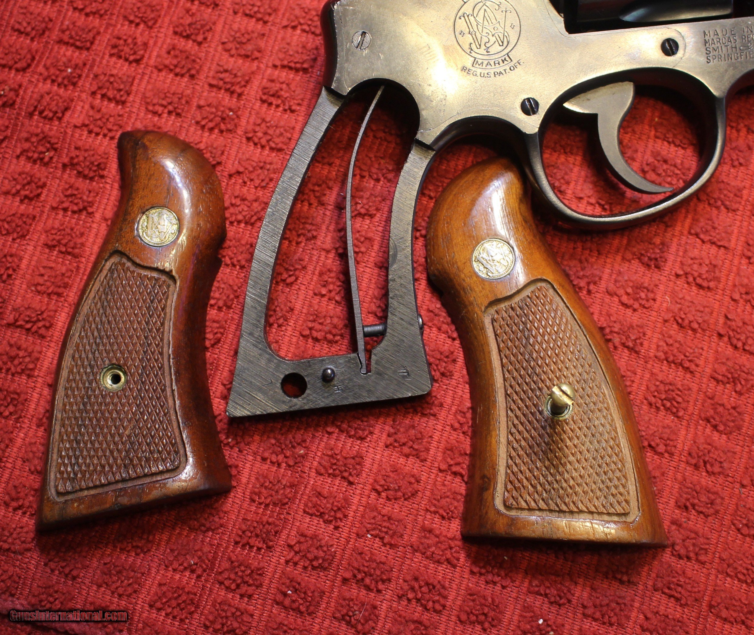 Description: On Hold for Me to make a decision on Custom or Not Got a SMITH & WESSON .45 TARGET MODEL OF 1950 (PRE-MODEL 26, FIVE SCREW VARIATION - 45 ACP CALIBERS 6 1/2" Revolver with NO box or anything other than the gun. This is a "shooter grade" and no way collector grade. The grips are S&W but not the ones that were on the gun. We took the rubber grips off and replaced them. The grips are NOT period correct. There is frosting in the last 1" to 1 1/2" of the barrel. There is everything you see in the pictures with the gun. Meaning the Gun Only. There are some full moon clips. Four of them Look closely at the pictures as what you see in what you get. Listed as USED as this came from a store out of business and is or was inventory. You are welcome to ask questions and ask for additional pictures Please check our other listings for the items As is means AS IS. There is no refund You are welcome to check out our webpage or facebook page at P&T Partners Shipping is included NOT FREE Just included for UPS Next Dayy Air shipping and full insurance Price is for Certified Funds meaning Certified Check or USPS Money Orders Credit or Plastic in any form, shape or manner add 3.5% For those in Texas you ARE subject to Texas Sales Tax for this transaction. NOTE: Credit by PHONE only WE DO ACCEPT PERSONAL OR BUSINESS CHECKS, BUT THERE IS A GRACE PERIOD OF 10 BUSINESSS DAYS ON THEM. I post on many of the firearms forums as PT-Partners. This is an FFL to FFL Transaction, as PT-Partners is a retail/FFL Dealer. For those that are local, there is no Face To Face. On Line means On Line General Information: FFL (Federal Firearms License) is required. Be prepared to obtain a copy of your local FFL holders license. For all in states where the local laws restrict this type of firearms, DO NOT BUY. If your local laws restrict the magazine capacity, again do not buy. I have no idea if this is a California Qualified Handgun, but I do ship to CA if you check other listings and something fits CA DOJ. If you are CA and you can PROVE, and your RECEIVING FFL contacts me, I will ship this to CA SOLD Curio/Relic: Yes |