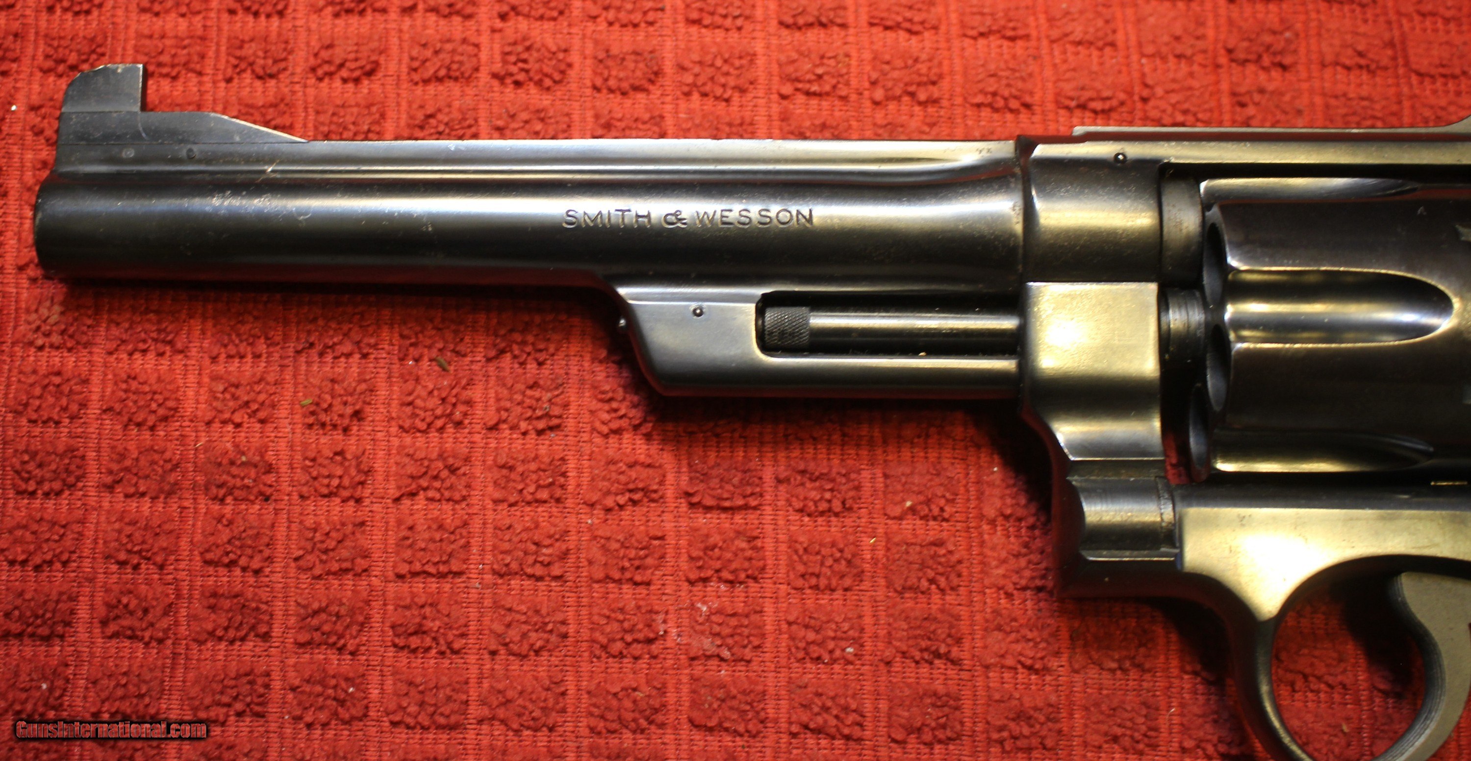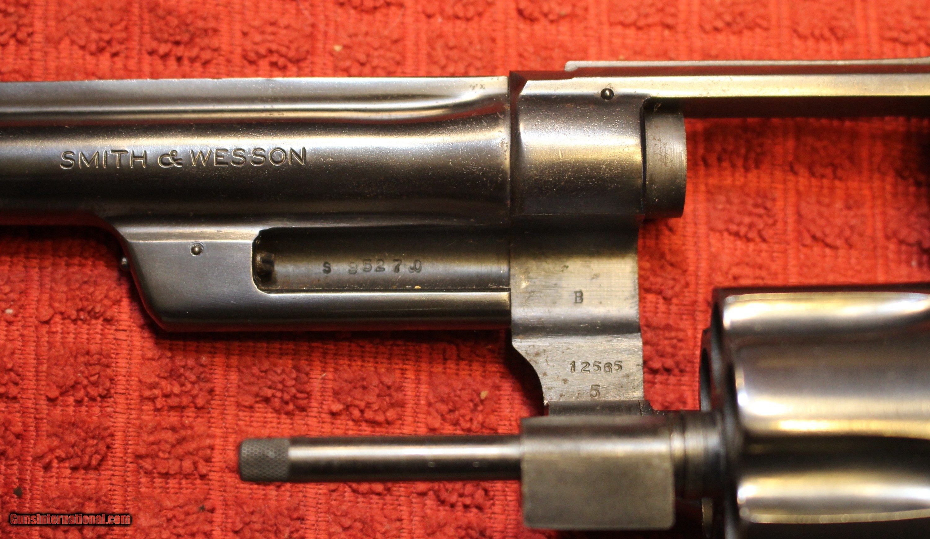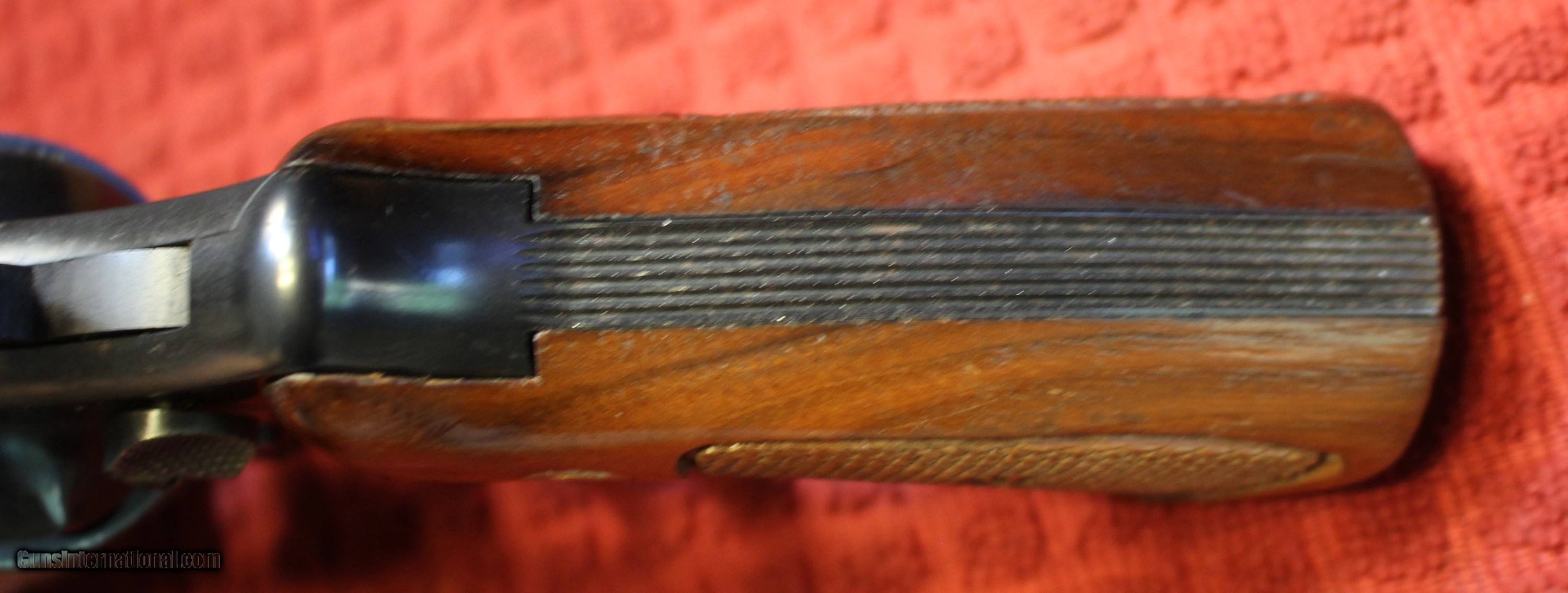 Description: Sent to Lock Stock and Barrel for ................................................................................................................. Got a SMITH & WESSON .45 TARGET MODEL OF 1950 (PRE-MODEL 26, FIVE SCREW VARIATION - 45 ACP CALIBERS 6 1/2" Revolver with NO box or anything other than the gun. This is a "shooter grade" and NO WAY collector grade. According to some "comments" from those asking questions this is or was called "pencil" barrel. The grips are S&W but not the ones that were on the gun. We took the rubber grips off and replaced them. The grips are NOT period correct. There is frosting in the last 1" to 1 1/2" of the barrel. The frosting does NOT affect accuracy or at least my accuracy shooting it. There is everything you see in the pictures with the gun. Meaning the Gun Only. There are some full moon clips. Four of them Look closely at the pictures as what you see in what you get. Listed as USED as this came from a store out of business and is or was inventory. You are welcome to ask questions and ask for additional pictures Please check our other listings for the items As is means AS IS. There is no refund You are welcome to check out our webpage or facebook page at P&T Partners Shipping is included. Shipping is NOT FREE Just included for USPS Priority Mail and full insurance with a signature at the receiving FFL Meaning the listed price is DELIVERED price. Price is for Certified Funds meaning Certified Check or USPS Money Orders Credit or Plastic in any form, shape or manner add 3.5% For those in Texas you ARE subject to Texas Sales Tax for this transaction. NOTE: Credit by PHONE only WE DO ACCEPT PERSONAL OR BUSINESS CHECKS, BUT THERE IS A GRACE PERIOD OF 10 BUSINESSS DAYS ON THEM. I post on many of the firearms forums as PT-Partners. This is an FFL to FFL Transaction, as PT-Partners is a retail/FFL Dealer. For those that are local, there is no Face To Face. On Line means On Line General Information: FFL (Federal Firearms License) is required. Be prepared to obtain a copy of your local FFL holders license. For all in states where the local laws restrict this type of firearms, DO NOT BUY. If your local laws restrict the magazine capacity, again do not buy. I have no idea if this is a California Qualified Handgun, but I do ship to CA if you check other listings and something fits CA DOJ. If you are CA and you can PROVE, and your RECEIVING FFL contacts me, I will ship this to CA SOLD Handgun Caliber: .45 ACP (.45 Auto) |
