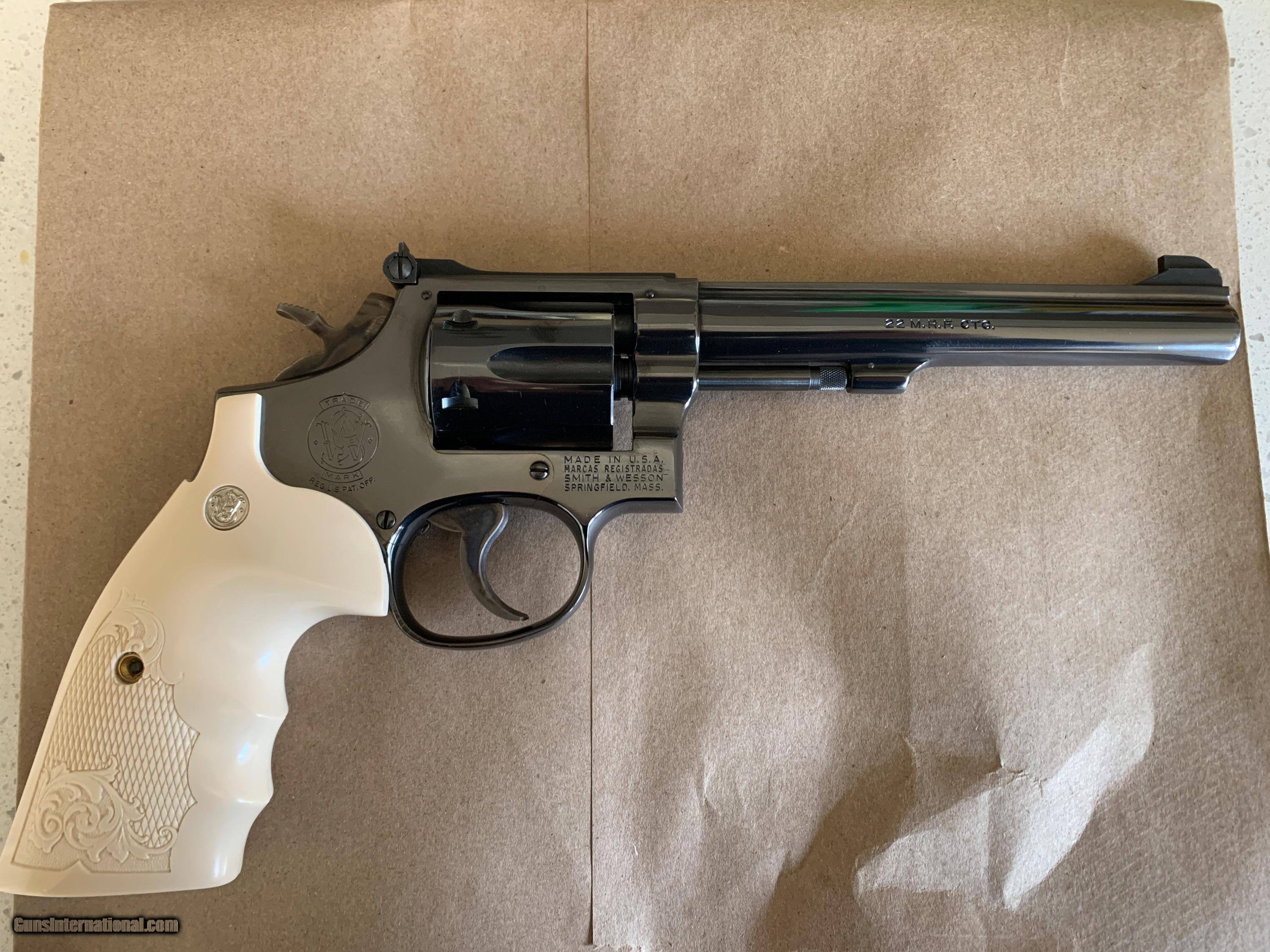 Description: Smith & Wesson 48-4 22 Mag - Very High Condition with faint cylinder line and no wear on the high edges or muzzle - Wearing a set of bonded faux ivory Altamonts - Bore is excellent - Revolver has been very well cared for - Beautiful case coloring on Hammer & Trigger - 6 inch Barrel $800 + $50 Shipping Money Order/Cashiers Check or your preferred payment Private Seller: FFL to FFL Three Day Inspection Please contact for any questions: Jerry 503-621-8352 SOLD Handgun Caliber: .22 WMR (.22 Magnum) |