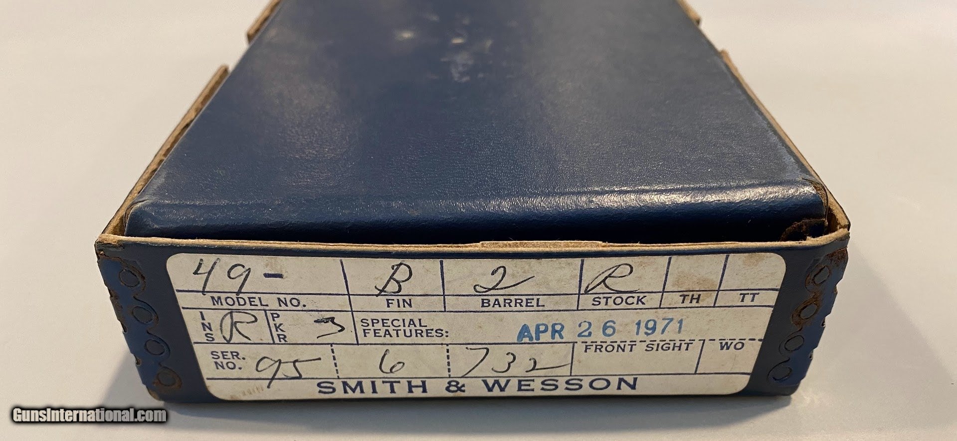 Description: Guns Listing ID: 453651 This Smith & Wesson Model 49 dates back to 1971 and comes with the original manual, cleaning tools, and leather box. It is in good condition and has been gone over by a gunsmith to ensure it is in proper working condition. It features the original wood grips and could be further restored to a very beautiful firearm. SOLD Manufacturer: SMITH & WESSON Model: 49 Caliber Info: 38 S&W SP Condition: Used - Non-Certified Barrels: 2 BARREL Finish: BLUED |