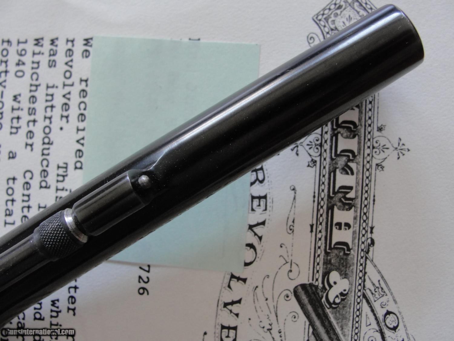 Description: Here's a great revolver with high level of original condition, scarce barrel length, cool caliber and provenance. Originally sent to the Police Chief of El Drado, Kansas in 1930, this 5" revolver has seen very little use. Matching numbers, Mechanically perfect with like-new bore and chambers and no rust even under the top strap and around the breech/forcing cone. Finish still intact on cylinder face, with machining marks crisp and visible. Factory finish, case colors and wood rate an EASY 95%, and some dealers would quickly rationalize this example up to 98%. Here are the visible flaws...mild finish worn thru both sides behind the muzzle (looks much worse in the close up pics than in real life!), small frosted spot on front of the crane, around where the axle is pressed in, has some dust in the crevaces that needs cleaning out. There are no papers or box beside the factory letter. $1450 and FREE SHIPPING to your FFL or C&R SOLD Curio/Relic: Yes Serial Number: 141840 |
